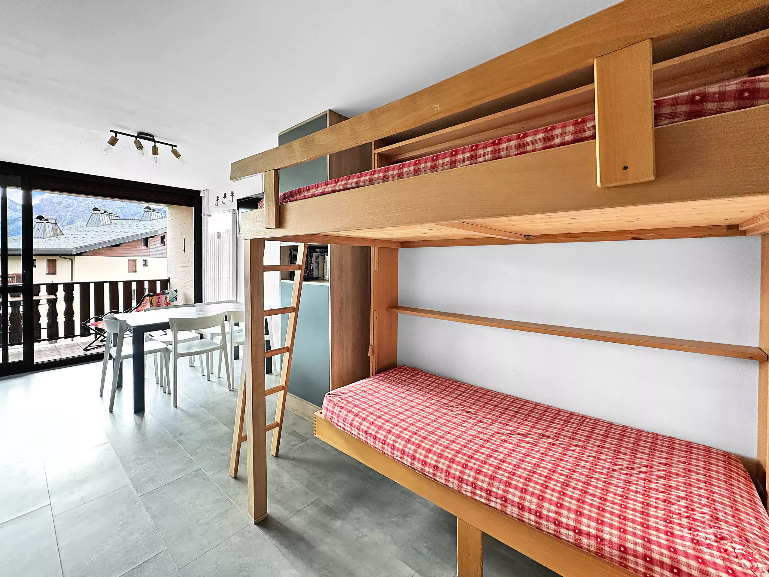 Living room: Rapido model sofa bed (real mattress) 160x200 and bunk beds 1x120 + 1x80. Television.