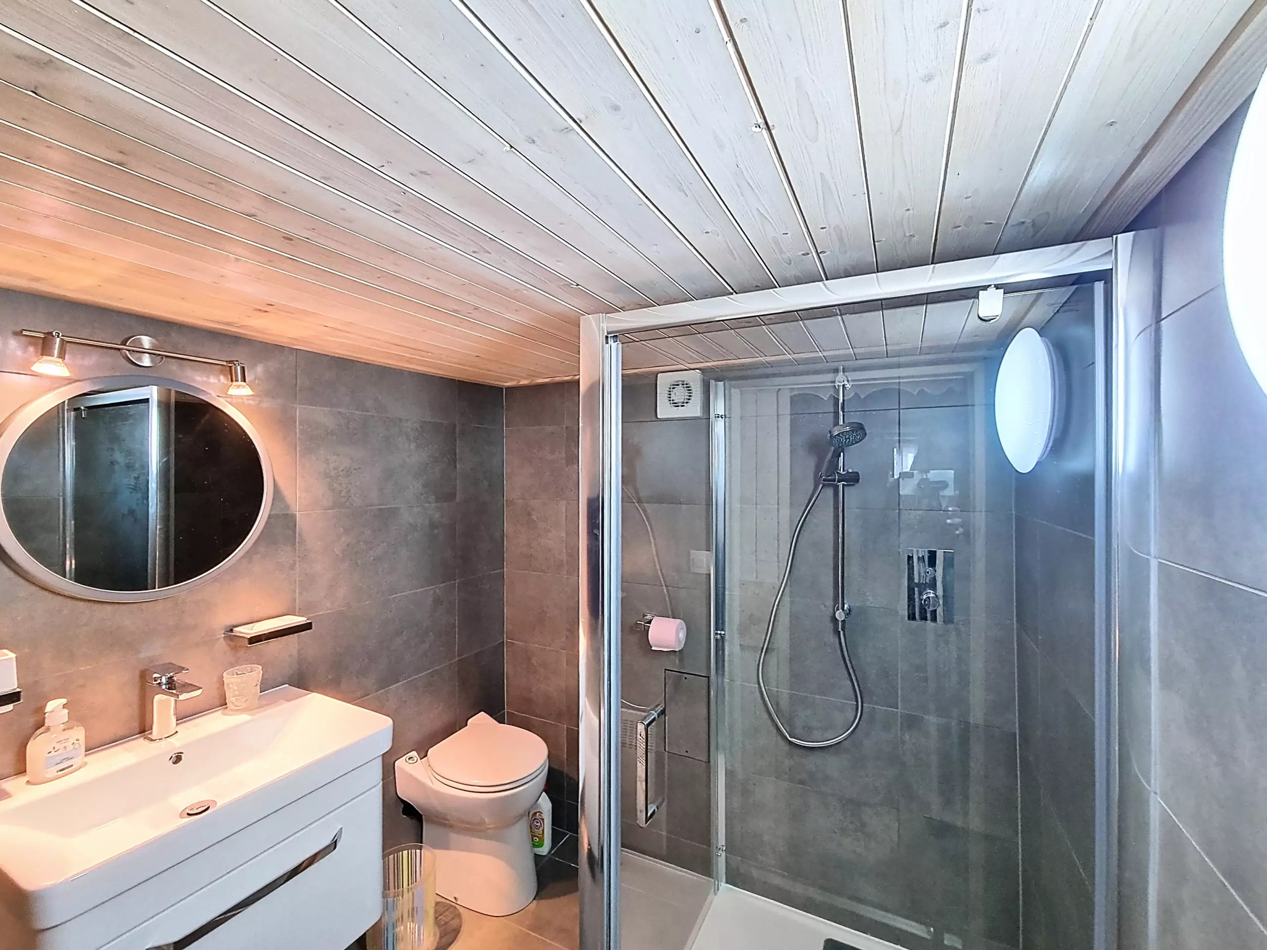 The chalet has four bedrooms—two double beds and four single beds—with configurations suitable for all groups. Two bathrooms with showers will allow everyone to recharge after a day on the slopes.