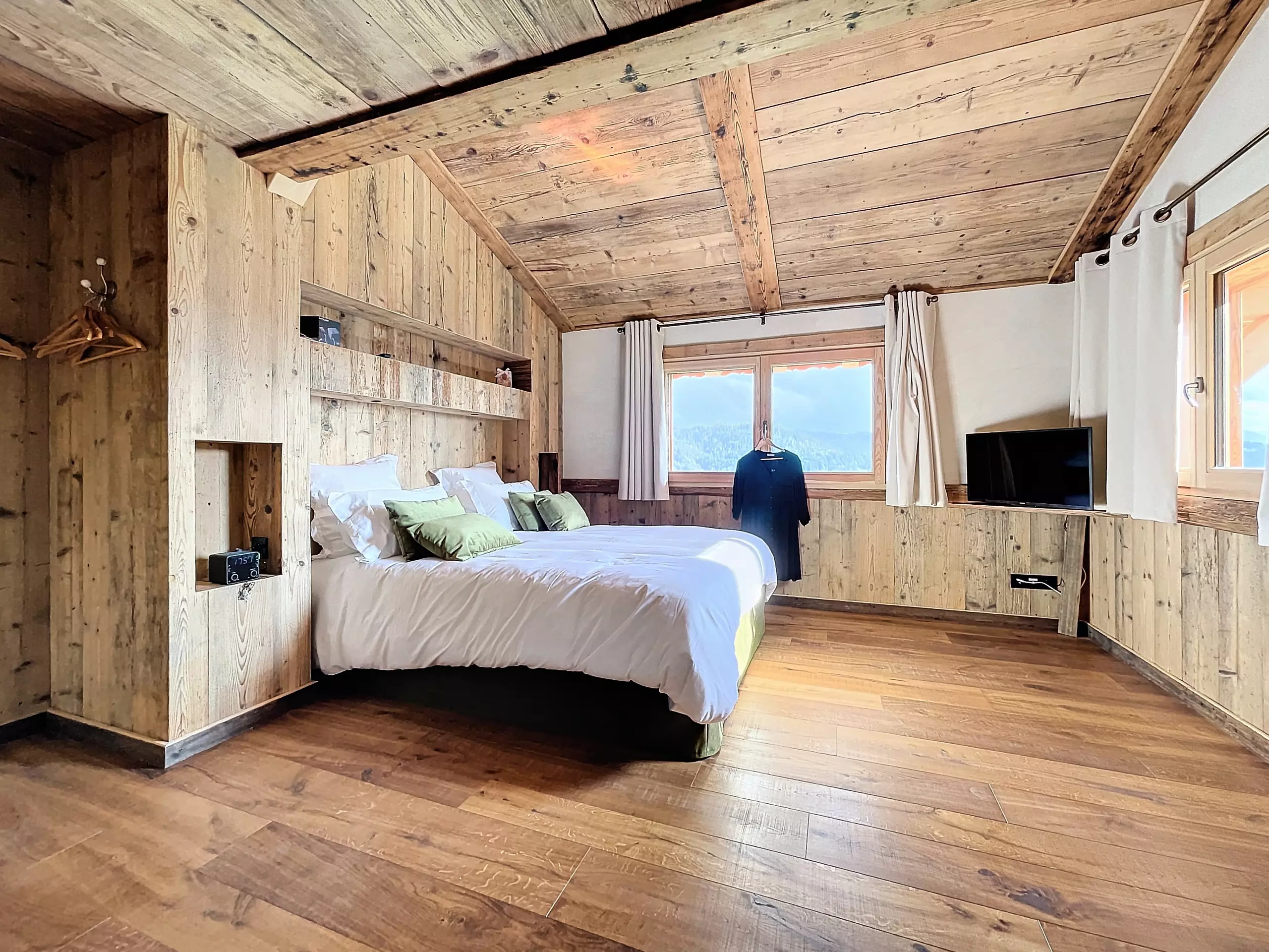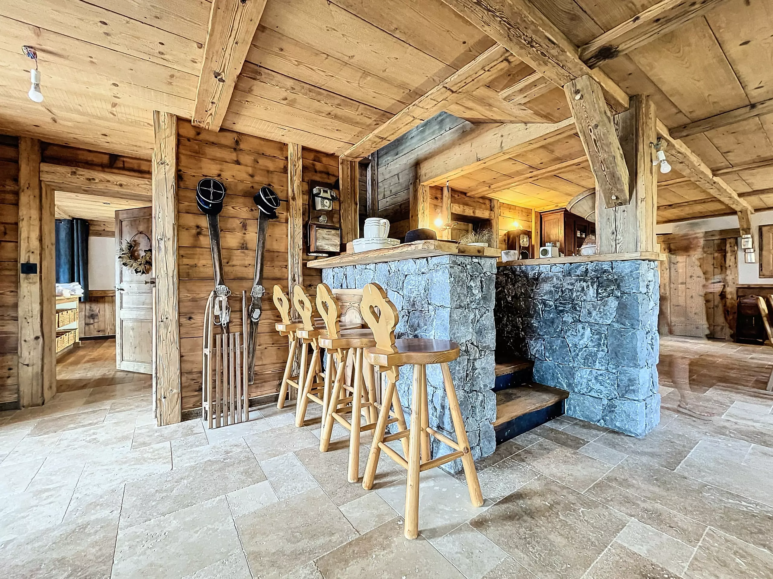 Built of wood and stone, the chalet offers a cozy, typically alpine atmosphere, perfect for gathering with family or friends after a day on the slopes. You can enjoy a calm and unspoiled environment, surrounded by nature, with breathtaking views of the snow-capped peaks.