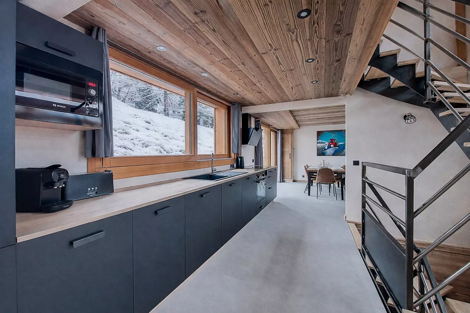 • A fully equipped modern kitchen (oven, microwave, dishwasher, espresso machine, raclette and fondue sets)