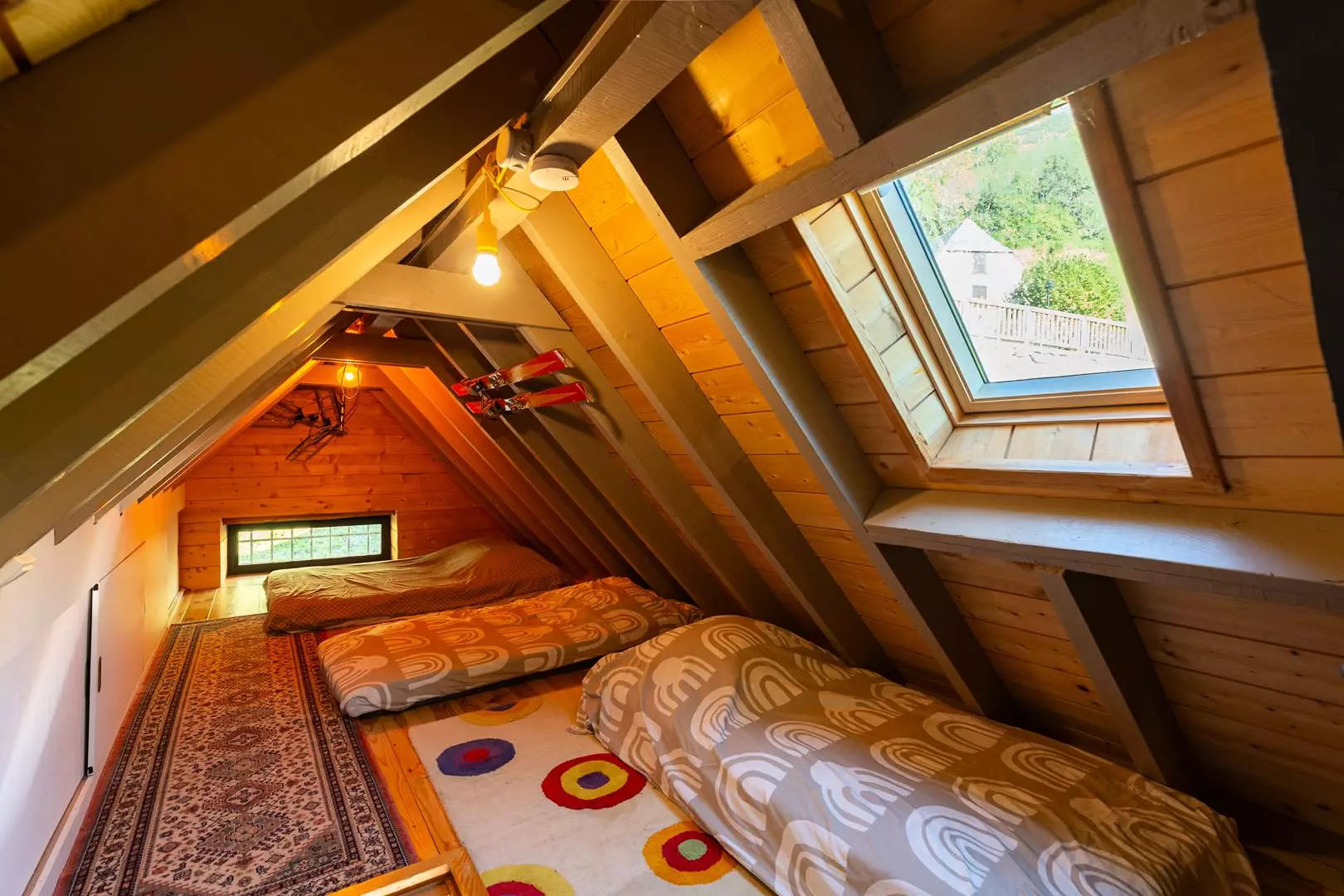 Spacious dormitory with 2 double beds and 2 single beds, perfect for children or a group of friends