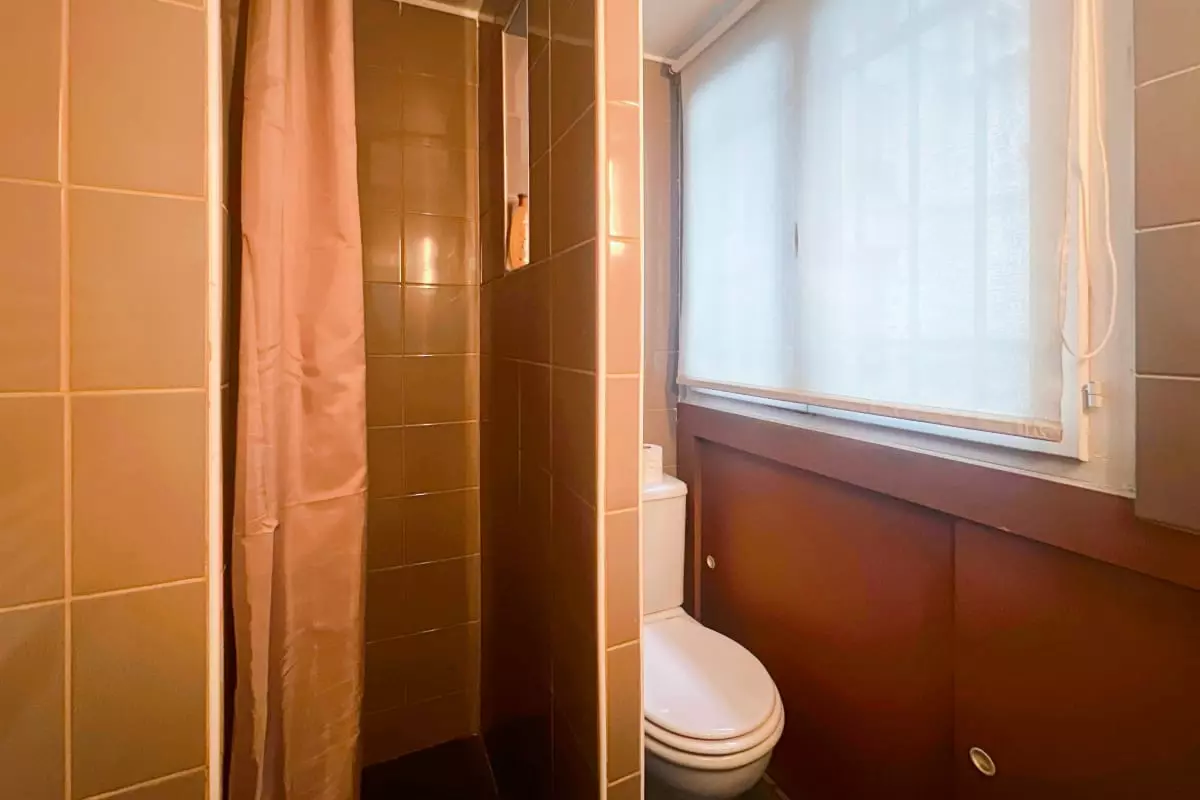 a practical bathroom with shower;