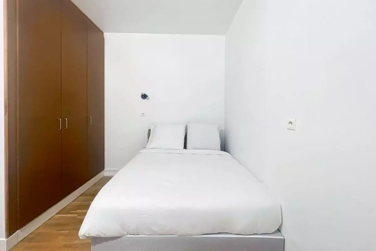 a sleeping area with double bed;