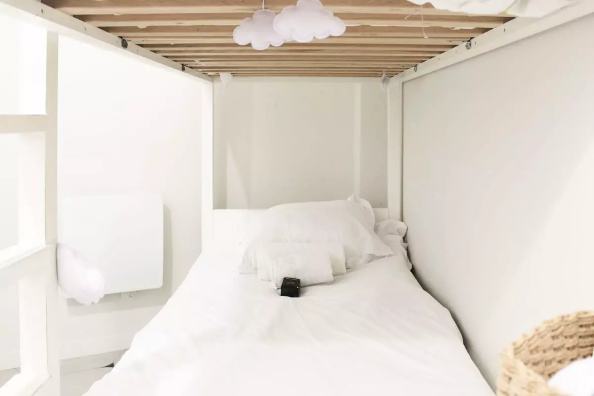 The Playful Room, designed for children, with bunk beds and hanging clouds for a magical touch.