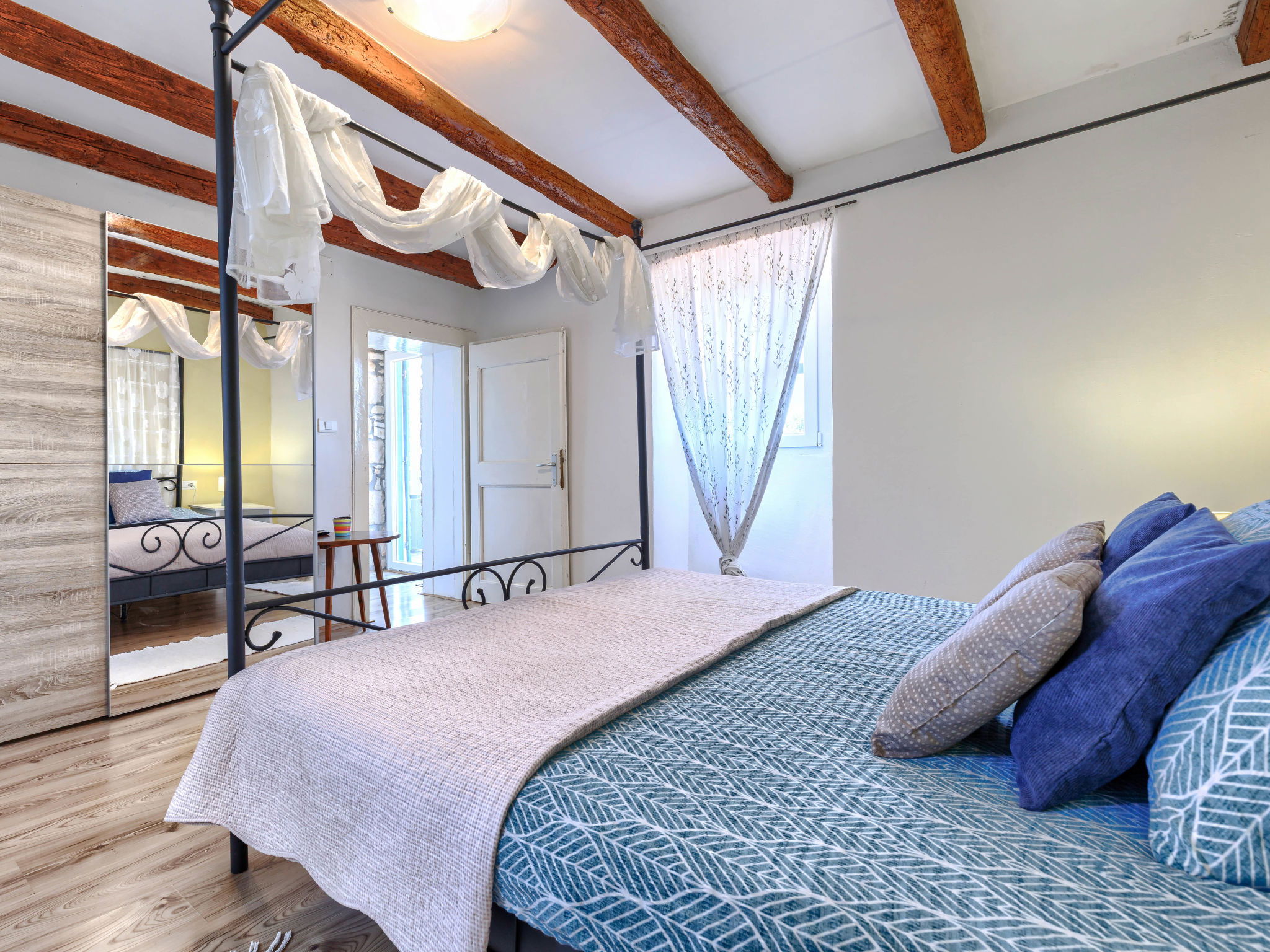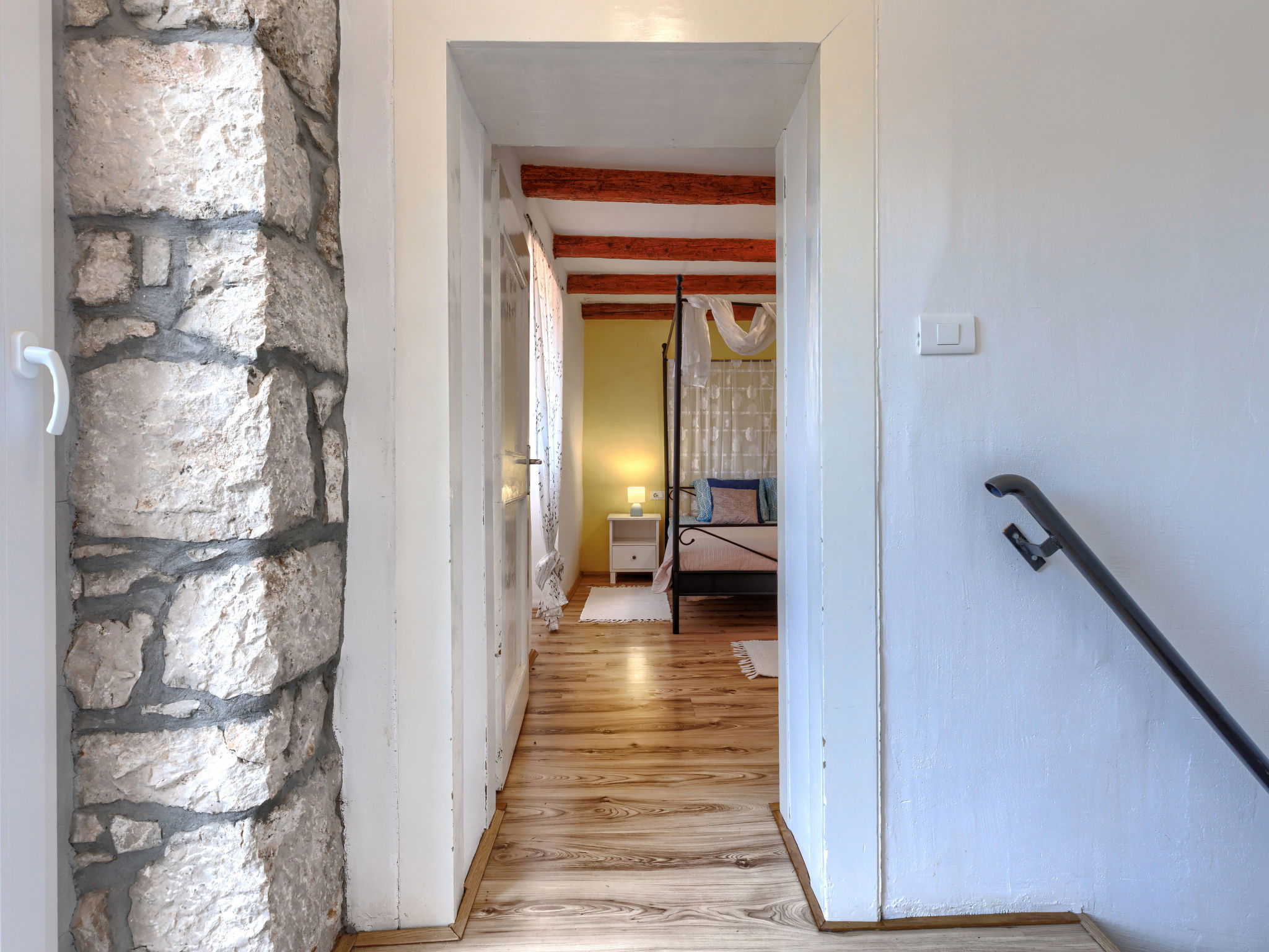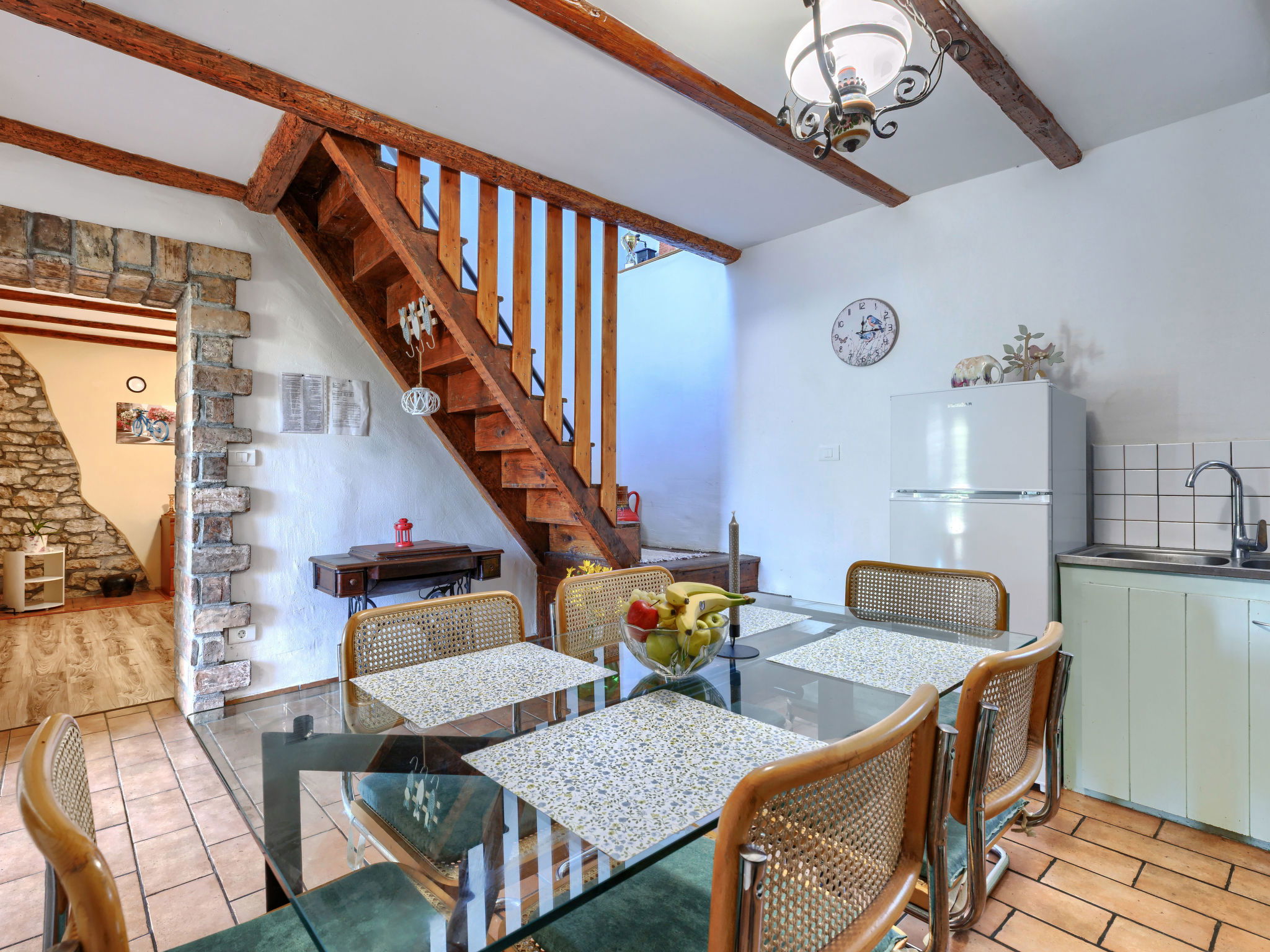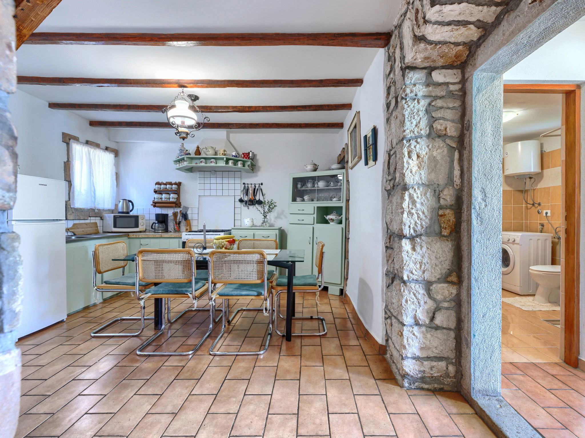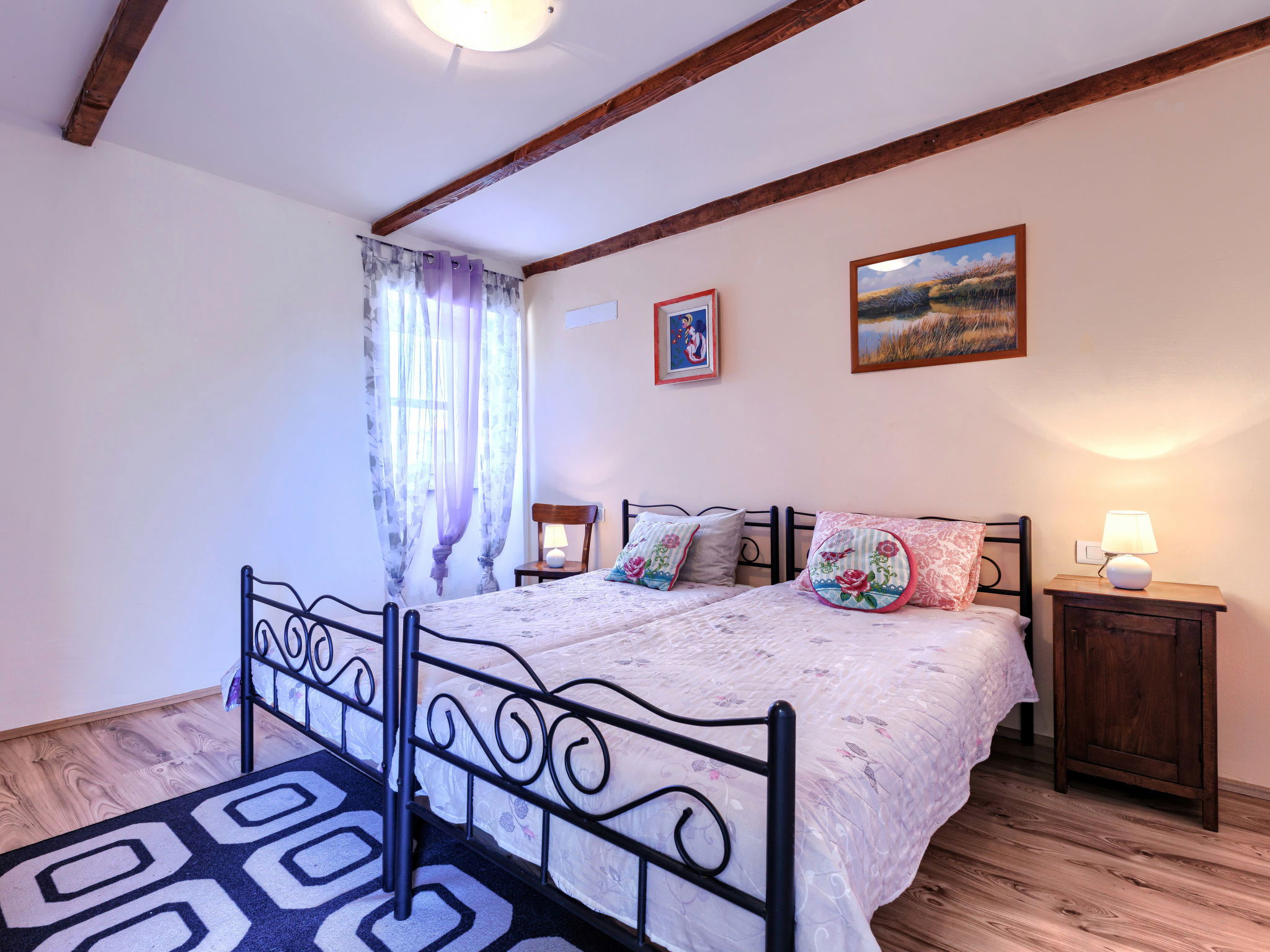 Rustic semi-detached house "Marija", 2 storeys. In the hamlet Markoci 7 km from the centre of Labin, 12 km from the centre of Rabac, 12 km from the sea, 12 km from the beach, in the countryside. Private: property 500 m2 (fenced), lawn and wildlife garden, swimming pool angular (7 x 4 m, depth 140 cm, seasonal availability: 01.Apr. - 30.Oct.) with internal staircase. Outdoor shower, terrace (20 m2), garden furniture, barbecue, pool maintenance by the owner/gardener. In the house: internet access, washing machine. Parking (for 2 cars) at the house on the premises. Shop 2 km, supermarket 7 km, restaurant 2 km, bus stop "Labin" 7 km, pebble beach 12 km. Please note: airfield 50 km from the property.