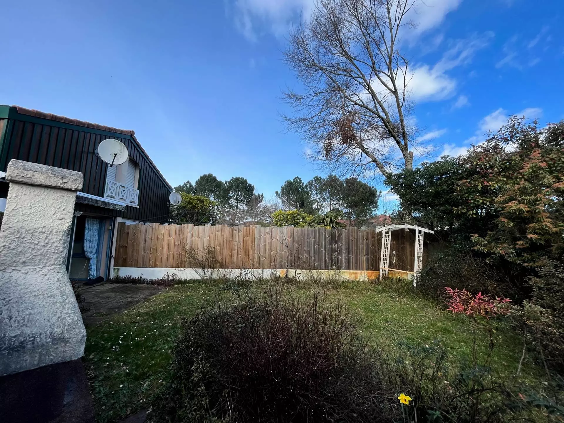 This 50m² semi-detached house sleeps 5 in a residential area near the lake, 7 km from the beach and 3 km from Biscarrosse. It features a terrace and a small fenced garden with garden furniture and a barbecue. Private parking is available. A cycle path and water sports facilities are nearby.