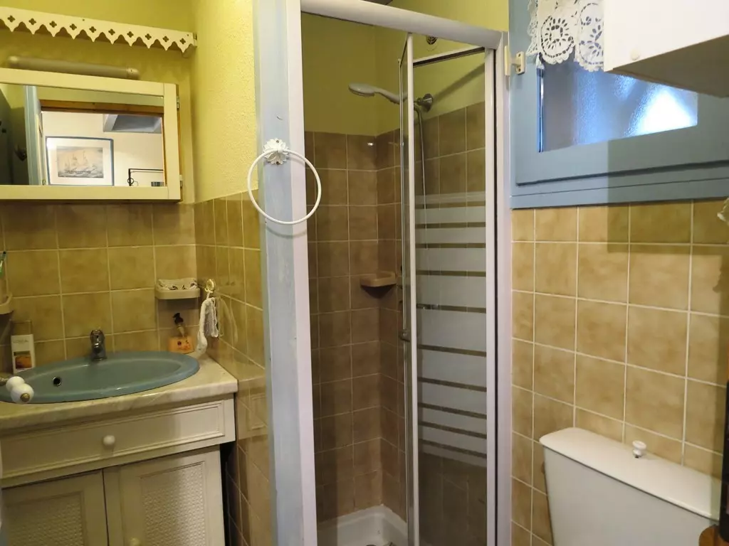 BATHROOM: shower, sink, toilet