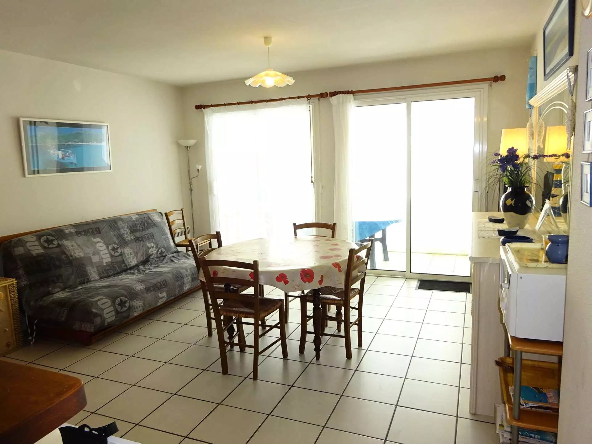 In a residence close to the beach and shops, pleasant apartment of 65m2, light and spacious, comfortable for 4 people, located on the ground floor, enclosed terrace with veranda with garden furniture.