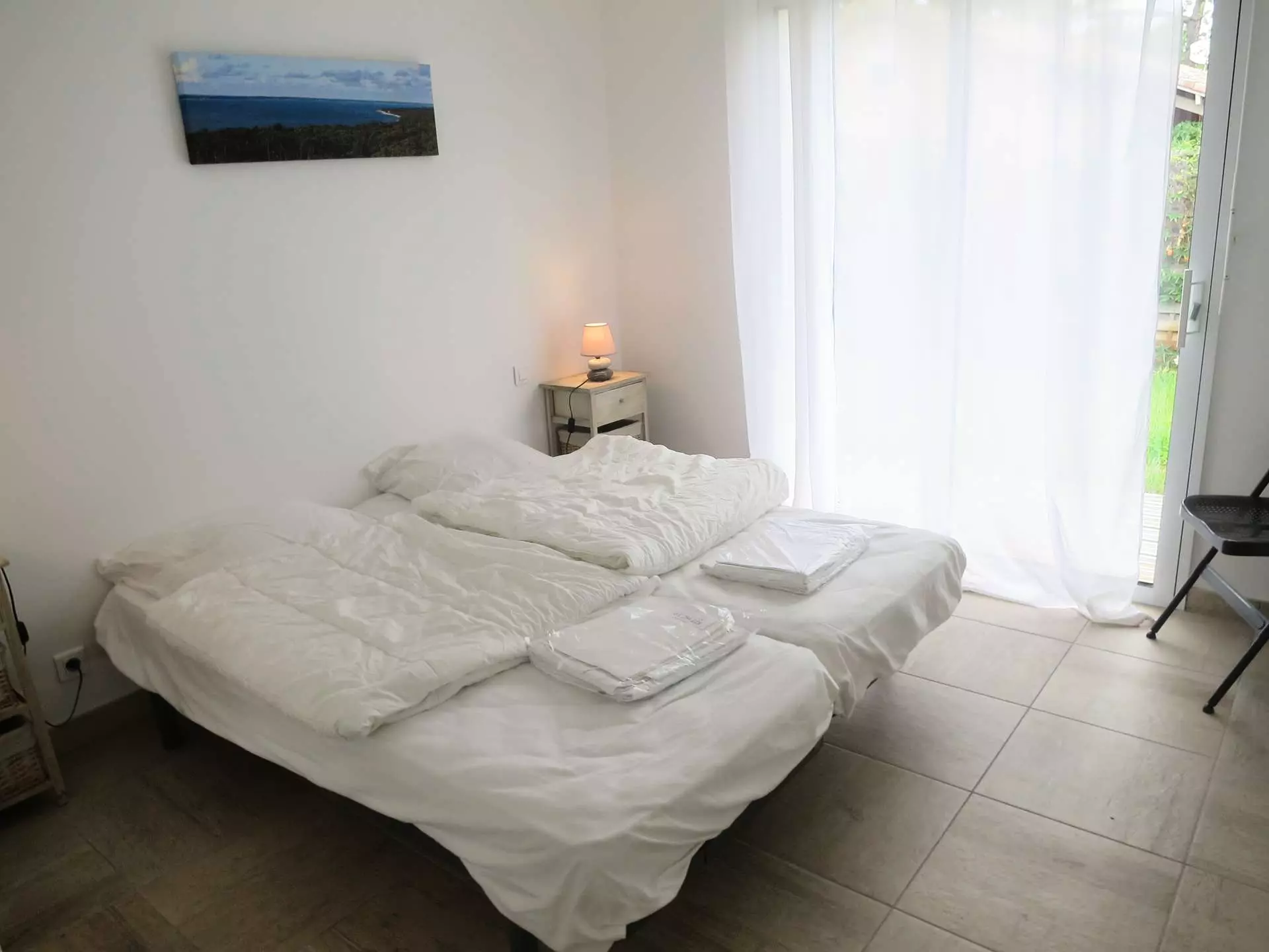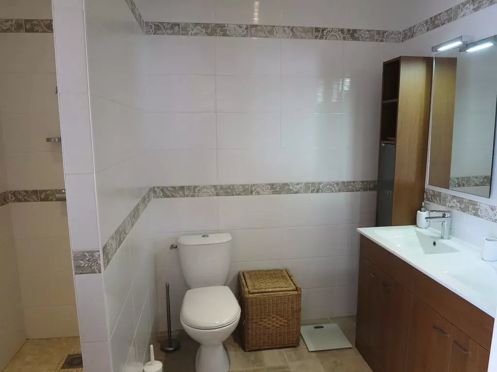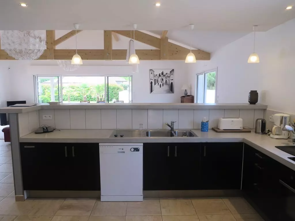 Located in a residential area, 1 km from the beach and shops, pleasant villa of 160m2 for 12 people, spacious and bright, on a fenced plot of 1000m2. Swimming pool of 50 m2, with a depth of 1.50m, secured by an alarm, with garden furniture, deckchairs and barbecue. Pets not allowed.