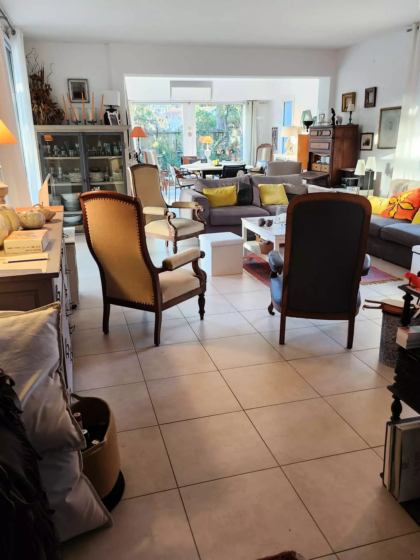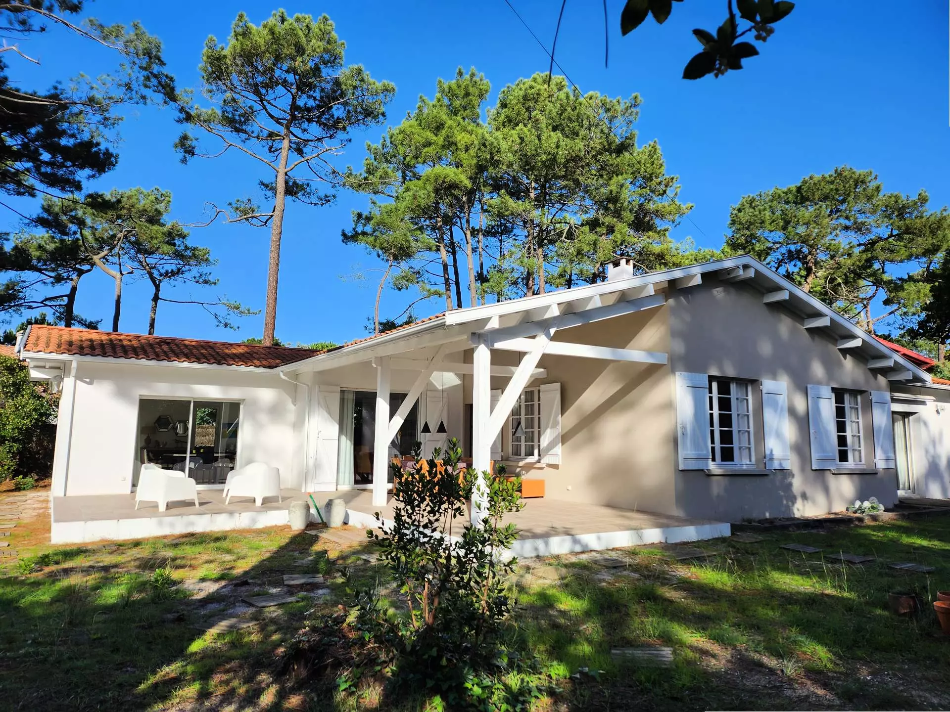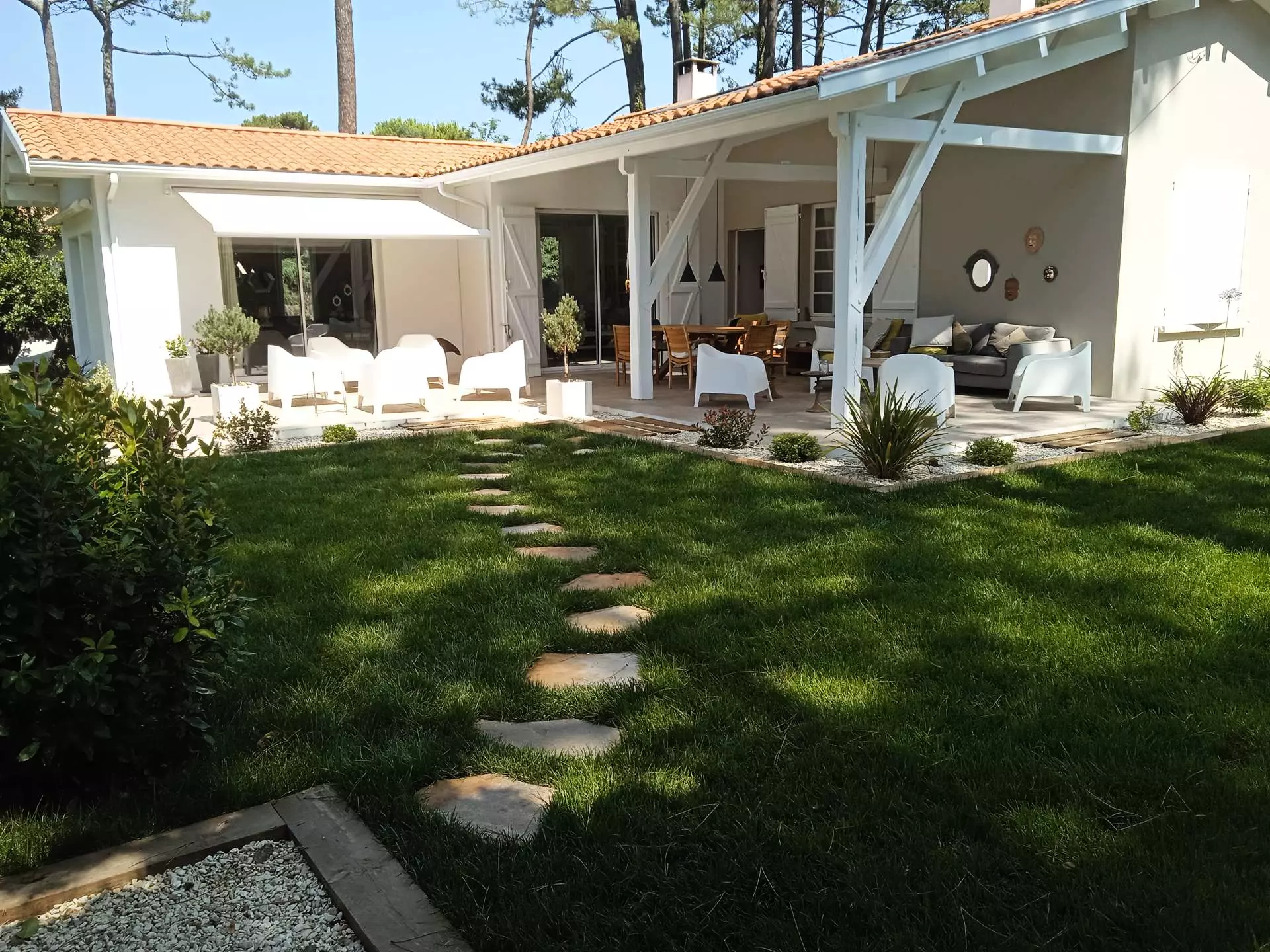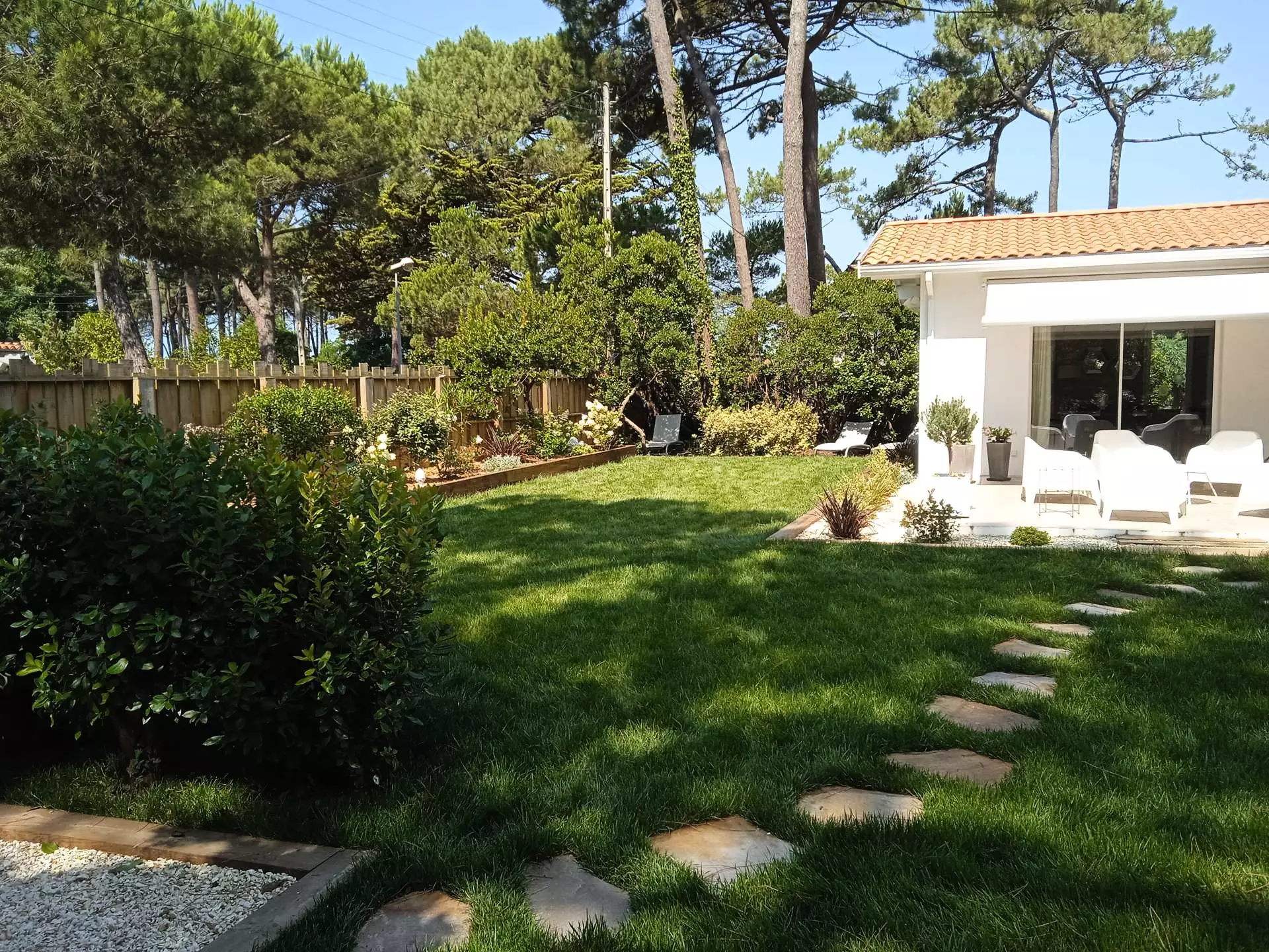 500m from the beach and shops, in a quiet environment, pleasant villa of 145m2 for 7 people, completely renovated with taste, on a fenced and wooded plot of 1000m2, covered terrace facing south with garden furniture and barbecue. Possibility of parking in the garden. As part of the rental, end-of-stay cleaning service is included.
