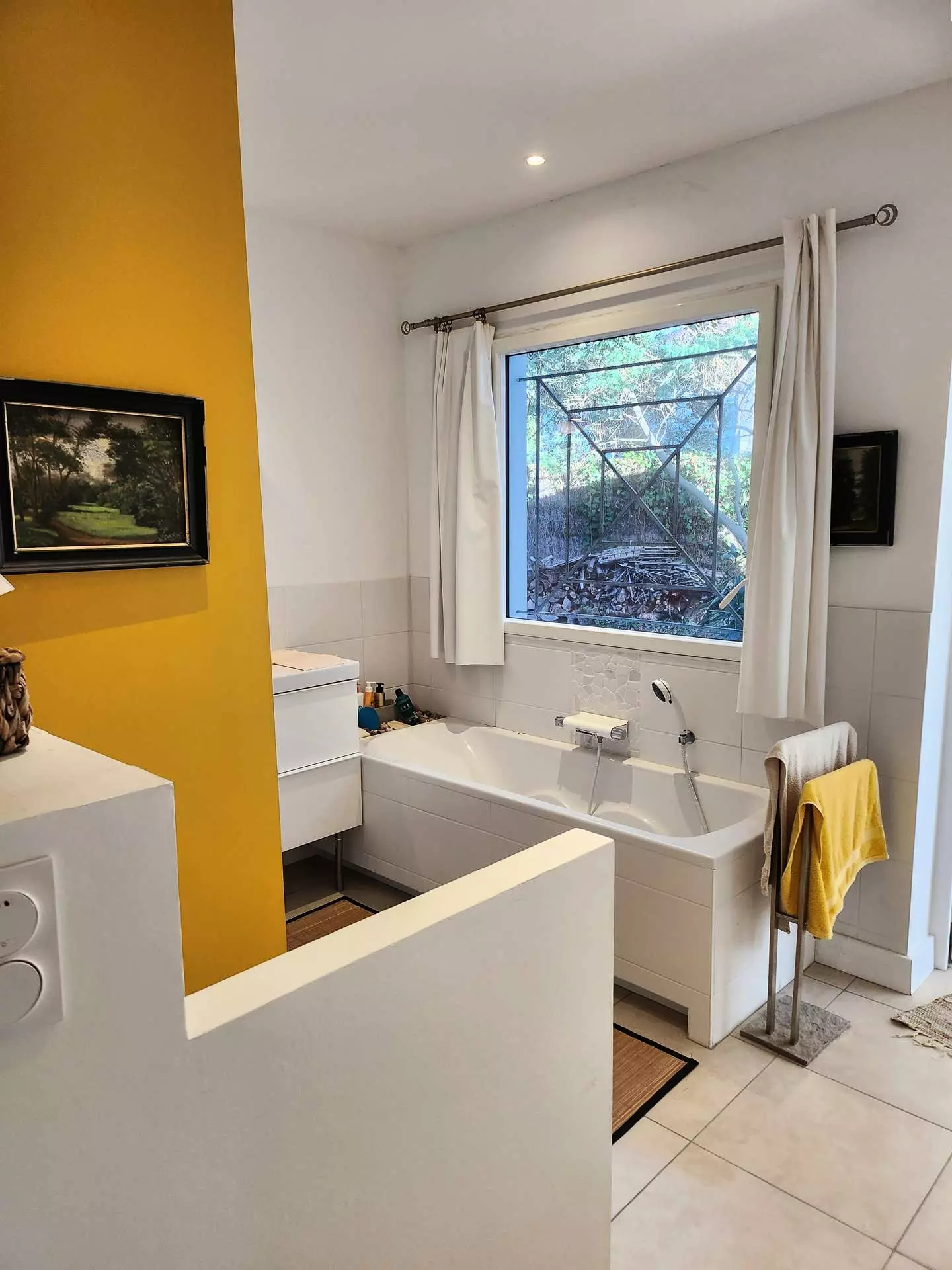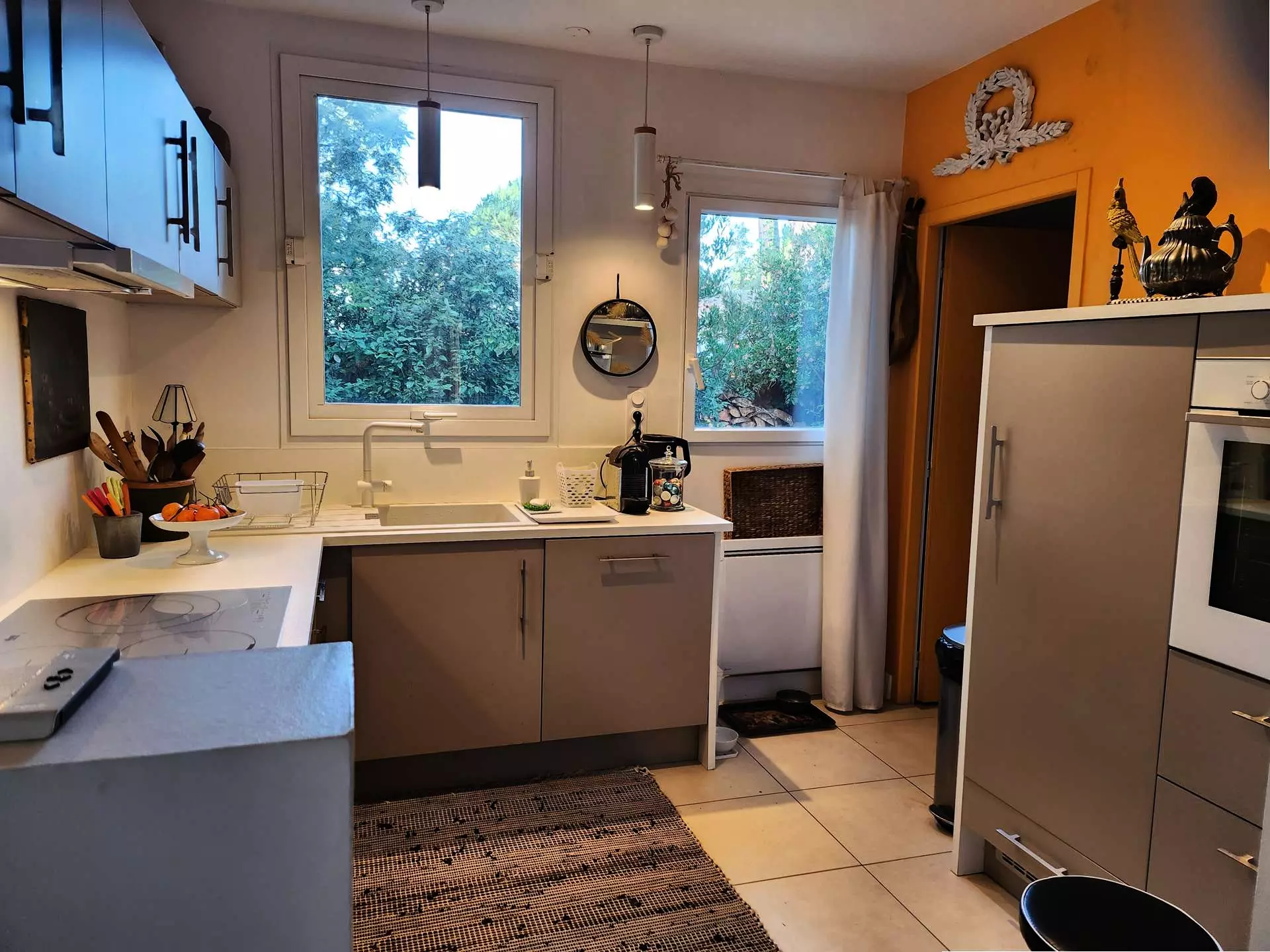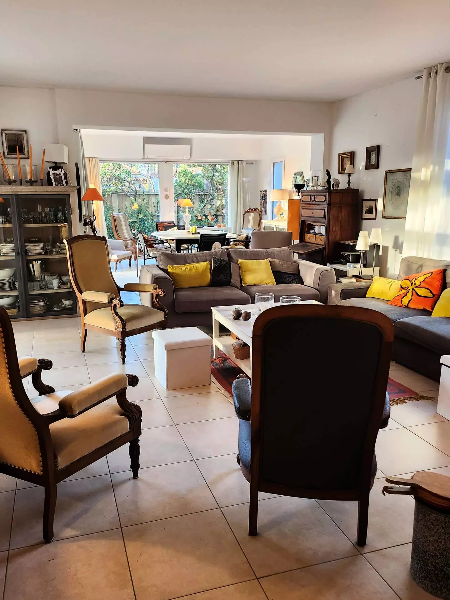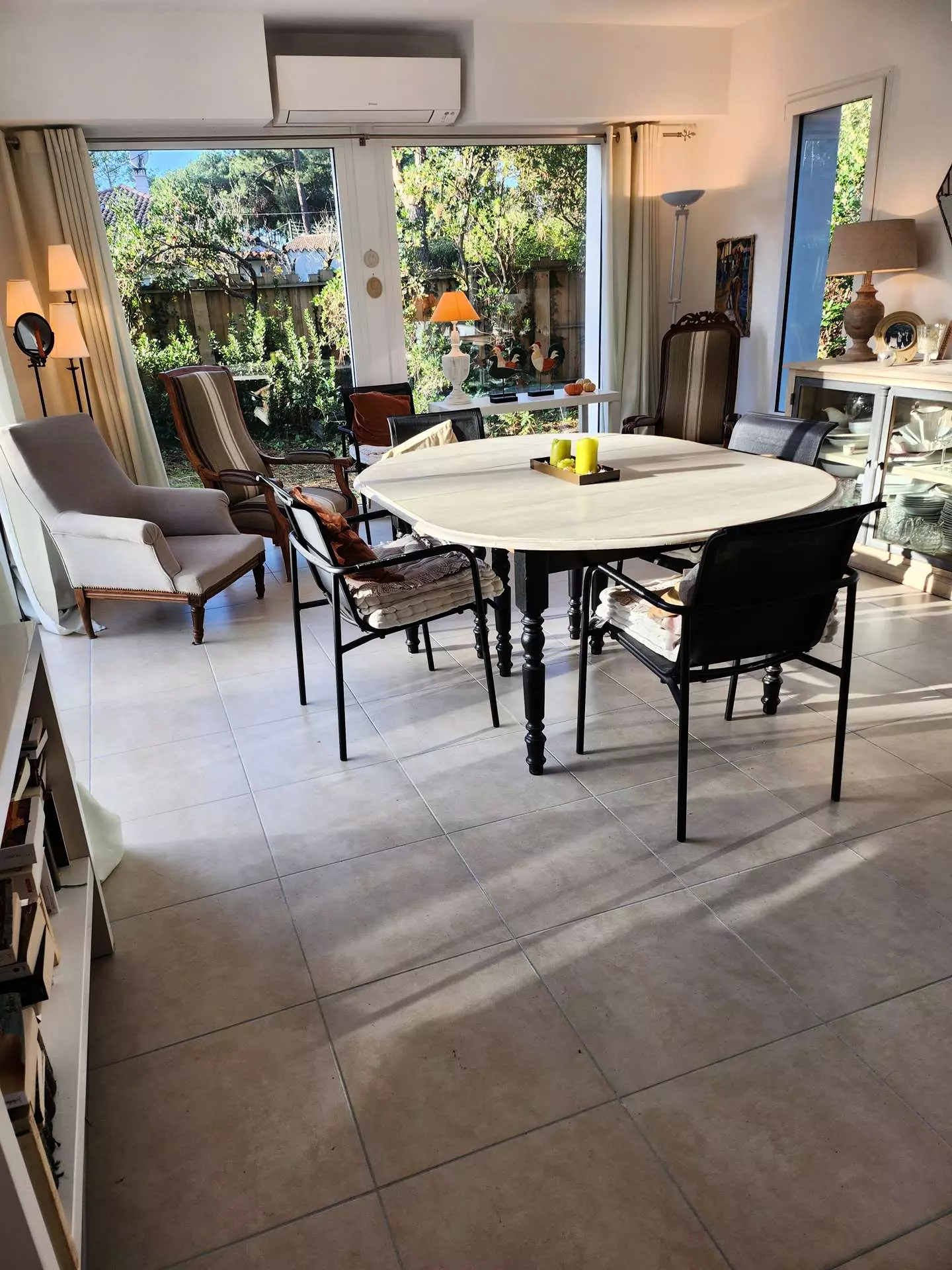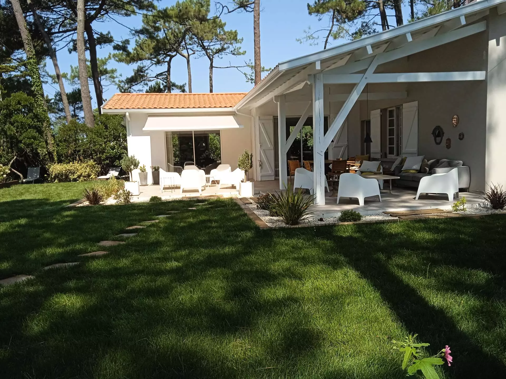 500m from the beach and shops, in a quiet environment, pleasant villa of 145m2 for 7 people, completely renovated with taste, on a fenced and wooded plot of 1000m2, covered terrace facing south with garden furniture and barbecue. Possibility of parking in the garden. As part of the rental, end-of-stay cleaning service is included.