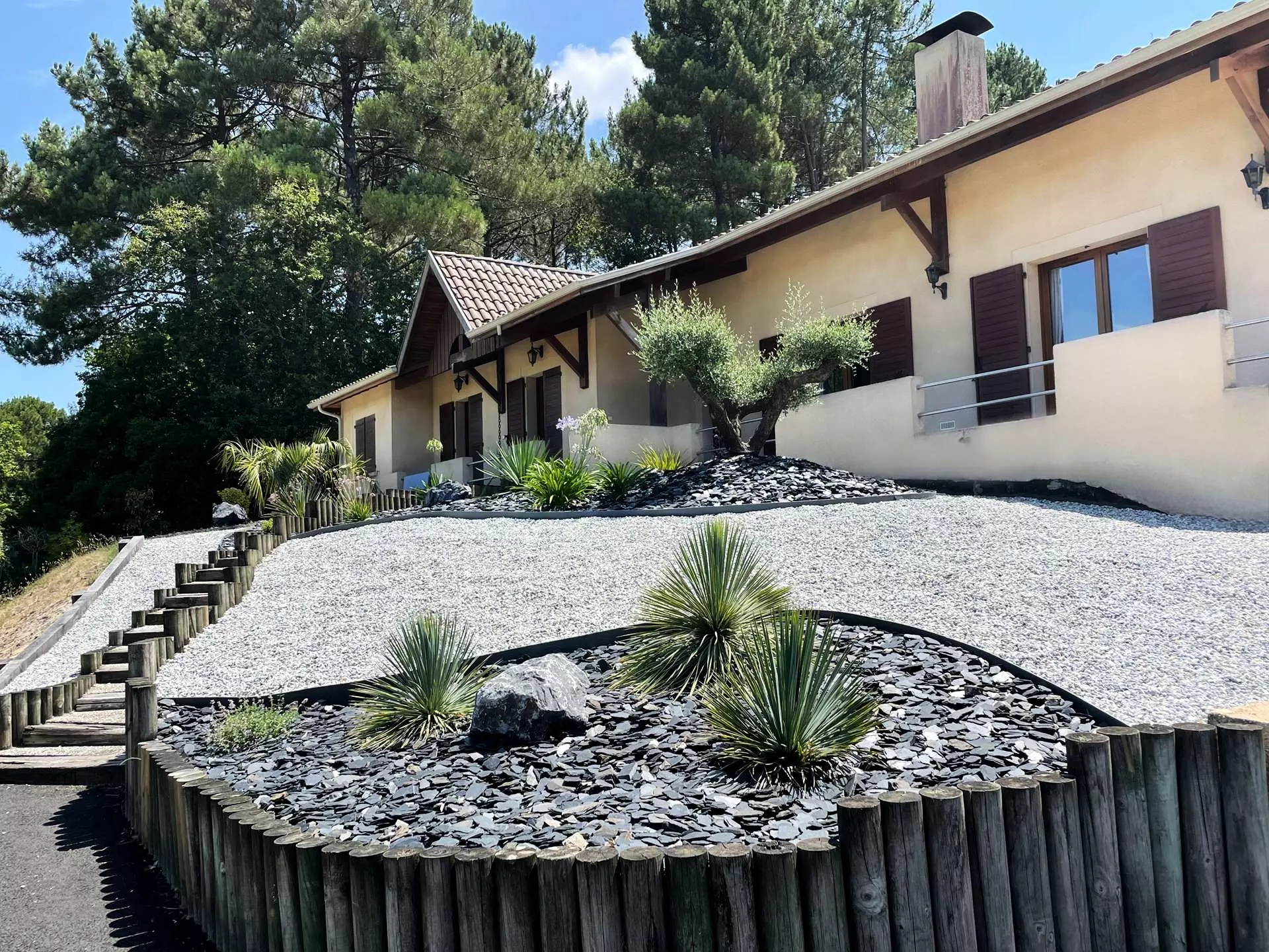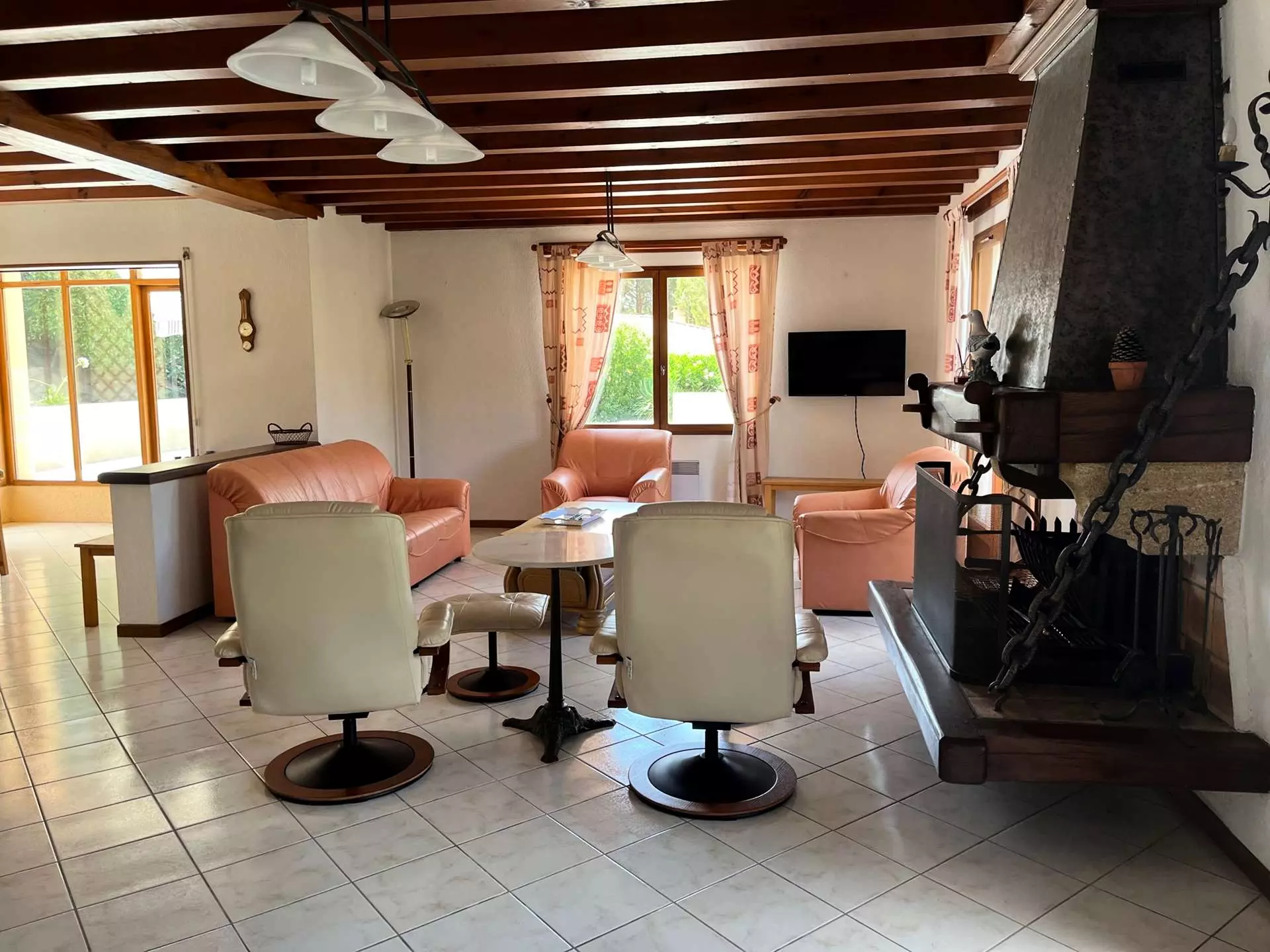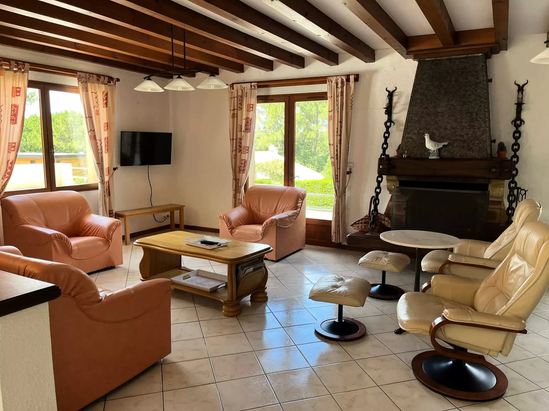 Located on the golf course, 400m from the lake and 6km from the ocean beaches, very comfortable single-story architect-designed villa of 185m2 for 8 people, fenced garden of 1100m2. Terrace with garden furniture, deckchairs, swimming pool of 5x9m, secured by an alarm. Pets not allowed.