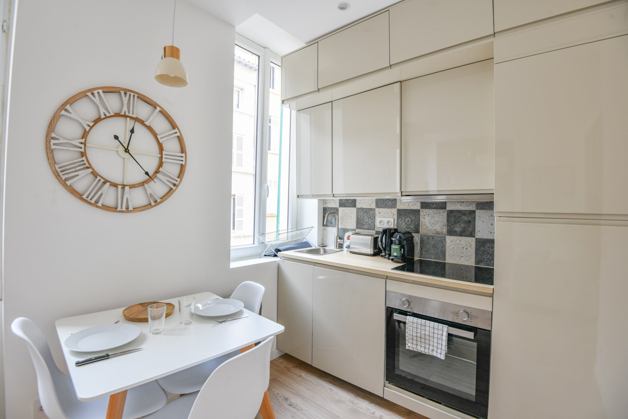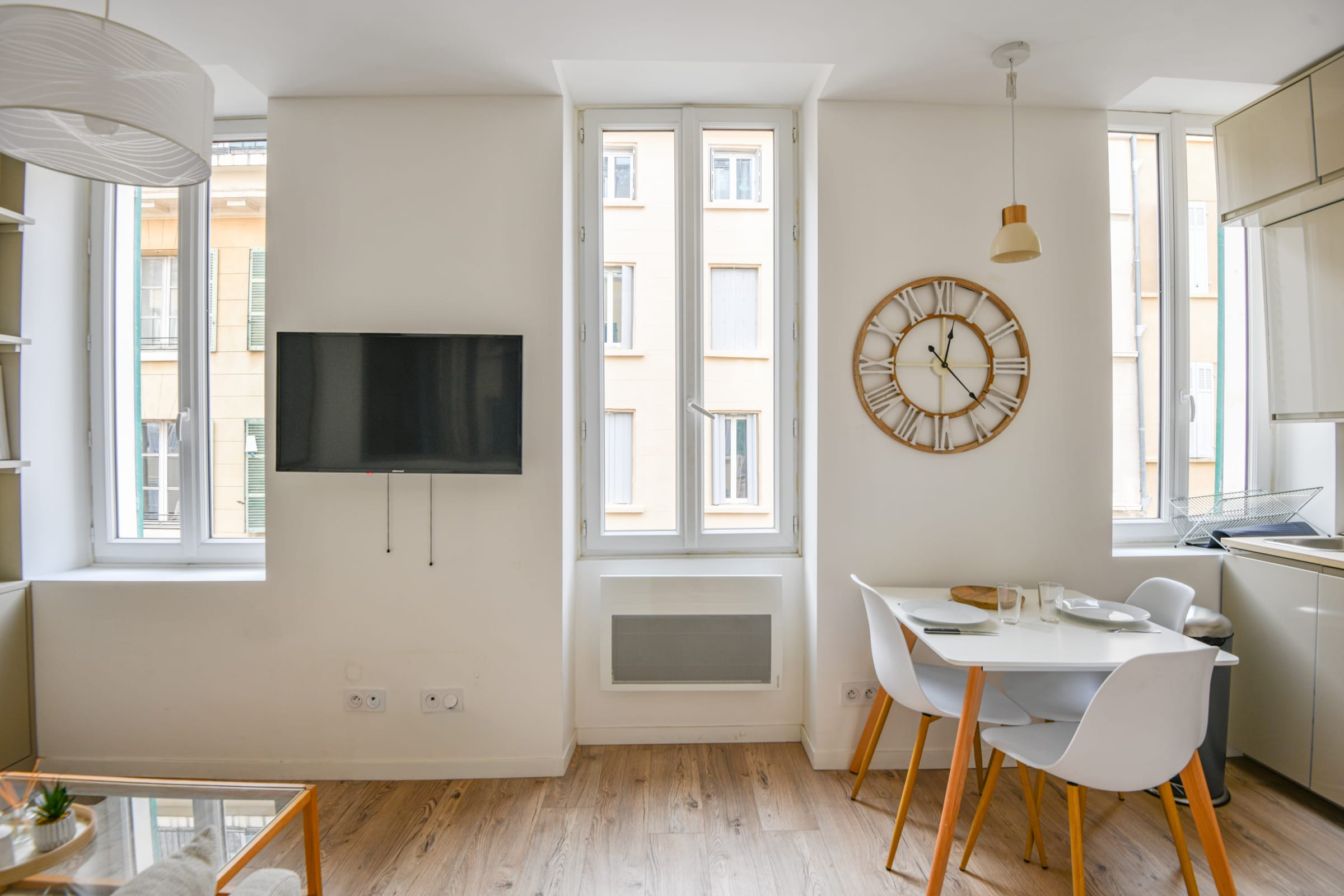 Notre studio de 26 m², situé rue Glandèves au 3e étage sans ascenseur d'un immeuble ancien, offre de belles prestations à proximité immédiate du Vieux-Port de Marseille. Entièrement rénové en 2025 par un architecte d'intérieur, le studio se compose d'une pièce principale avec une cuisine équipée, un espace repas avec une table et un espace nuit avec un lit double confortable. La salle de bain comprend une douche, un meuble vasque et un WC. Parking payant à 2 min à pied. Restaurants et commerces en bas de l'immeuble. Disponible en bail mobilité pour une durée de 1 à 10 mois (étudiant, salarié en formation, salarié en mobilité professionnelle).