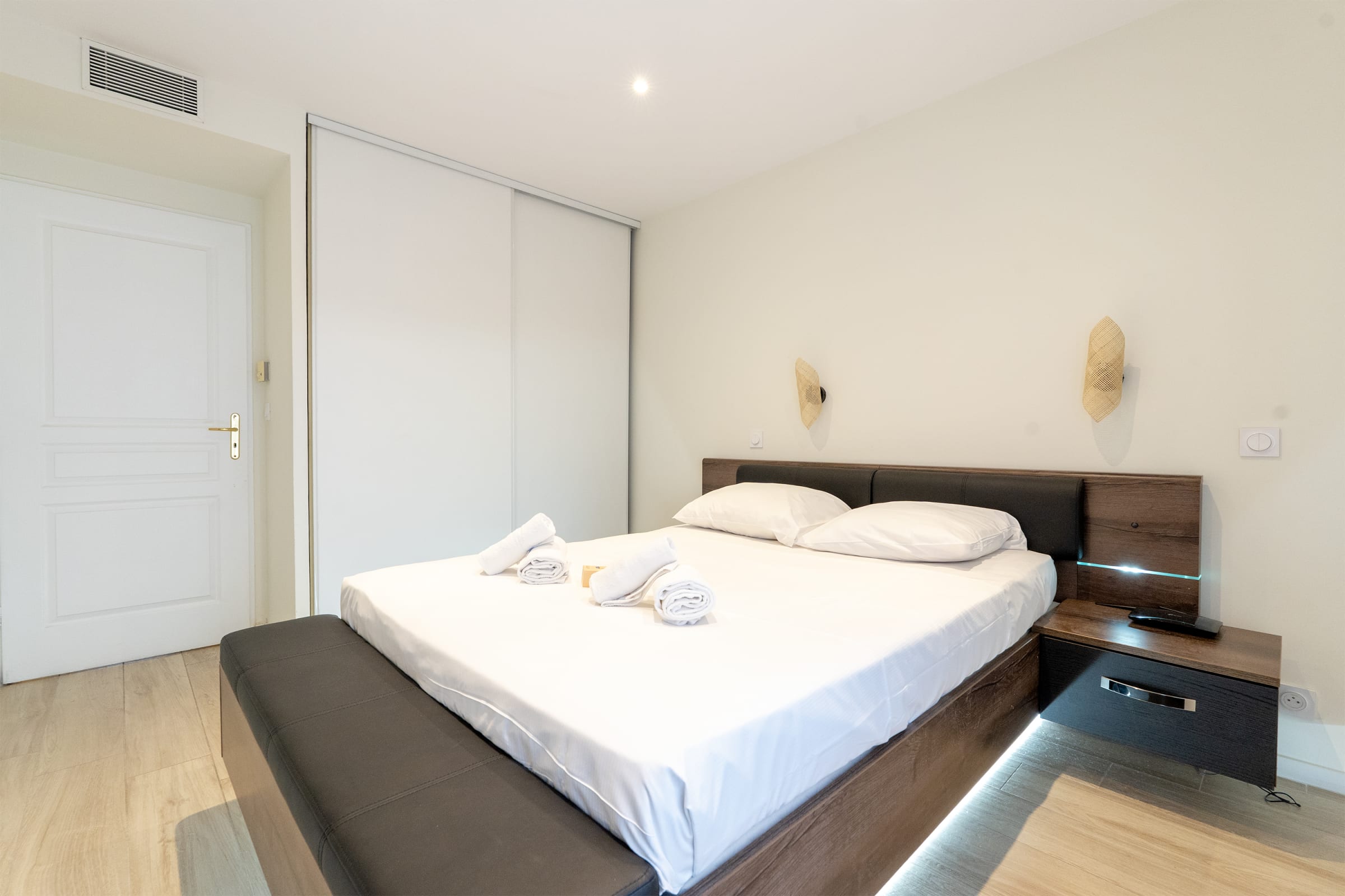 Cannes, the emblematic city of the Côte d'Azur, is renowned for its film festival, its sandy beaches and its lively port. The Lycée Carnot district, where the flat is located, is quiet and residential, yet close to all amenities. You can reach the famous Rue d'Antibes, known for its luxury boutiques, in just a few minutes on foot. Explore the charming lanes of Le Suquet or spend a sunny day on the Croisette. Enjoy fine restaurants such as La Môme or Mediterranean dishes at Bobo Bistro, just a short walk away.