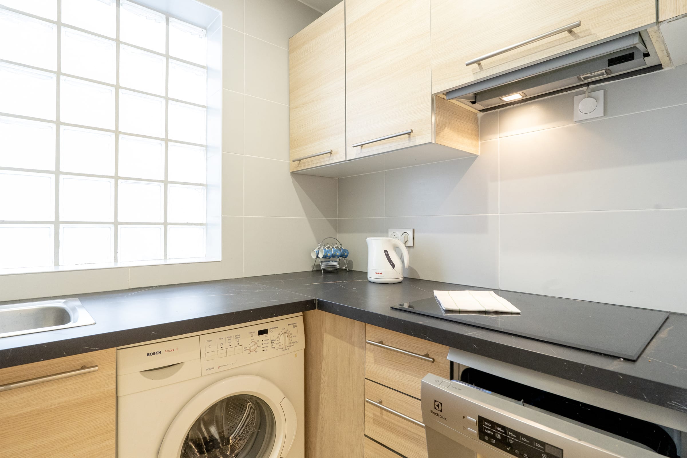- A fully-equipped kitchen (coffee machine, toaster, kettle, oven, microwave, hob, dishwasher, fridge, freezer),