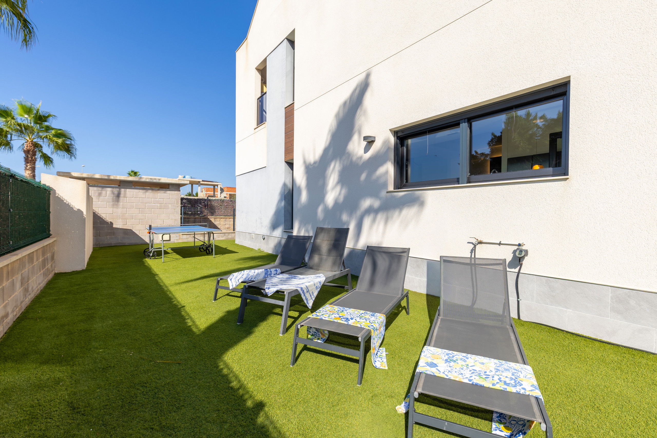 This modern, spacious accommodation in El Raso, Guardamar del Segura, is the perfect place for unforgettable holidays on the Costa Blanca. With capacity for 8 guests, this lodging has 3 bathrooms for greater comfort. Upon entering, you will be greeted by a open & bright atmosphere, where every detail has been carefully selected to ensure a pleasant stay.
