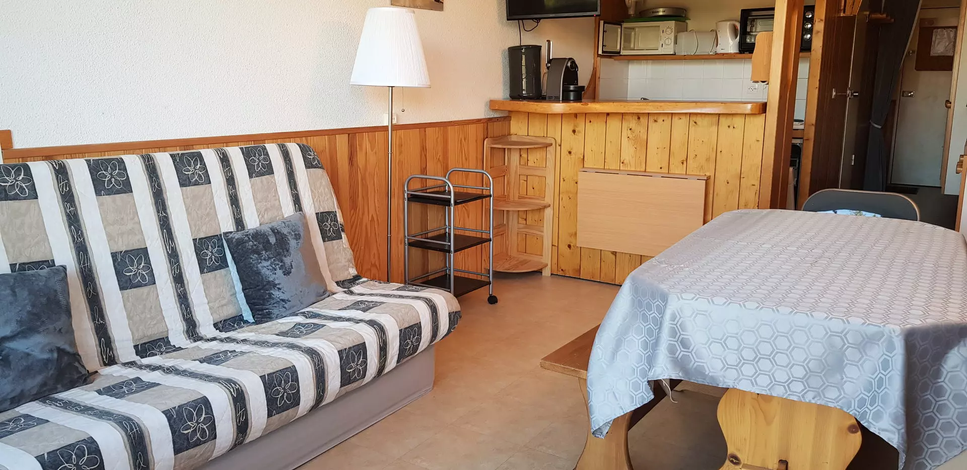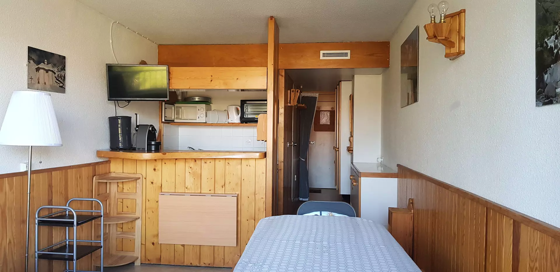This 29m² studio, which can accommodate up to 5 people, is located on the 14th floor with elevator of the Lauzières residence, 5th floor seen from the outside.