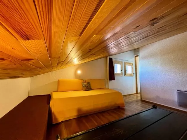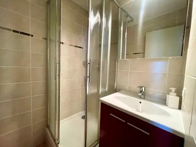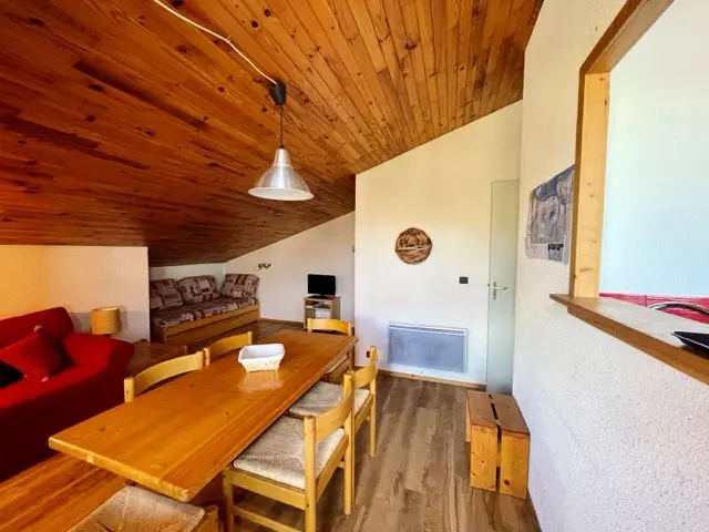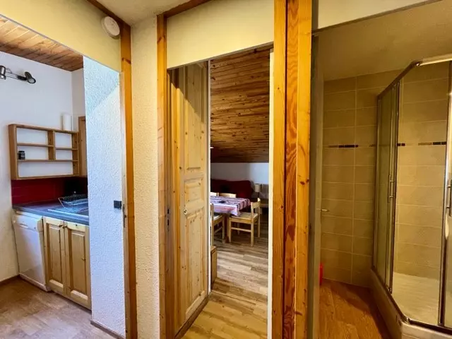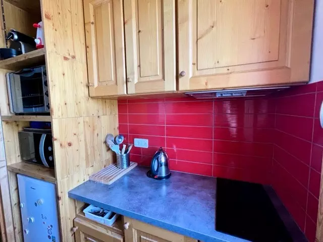 This apartment with a magnificent view of the valley and Mont Blanc consists of an equipped kitchenette (dishwasher, oven, microwave, coffee maker, toaster), a shower room and separate WC.