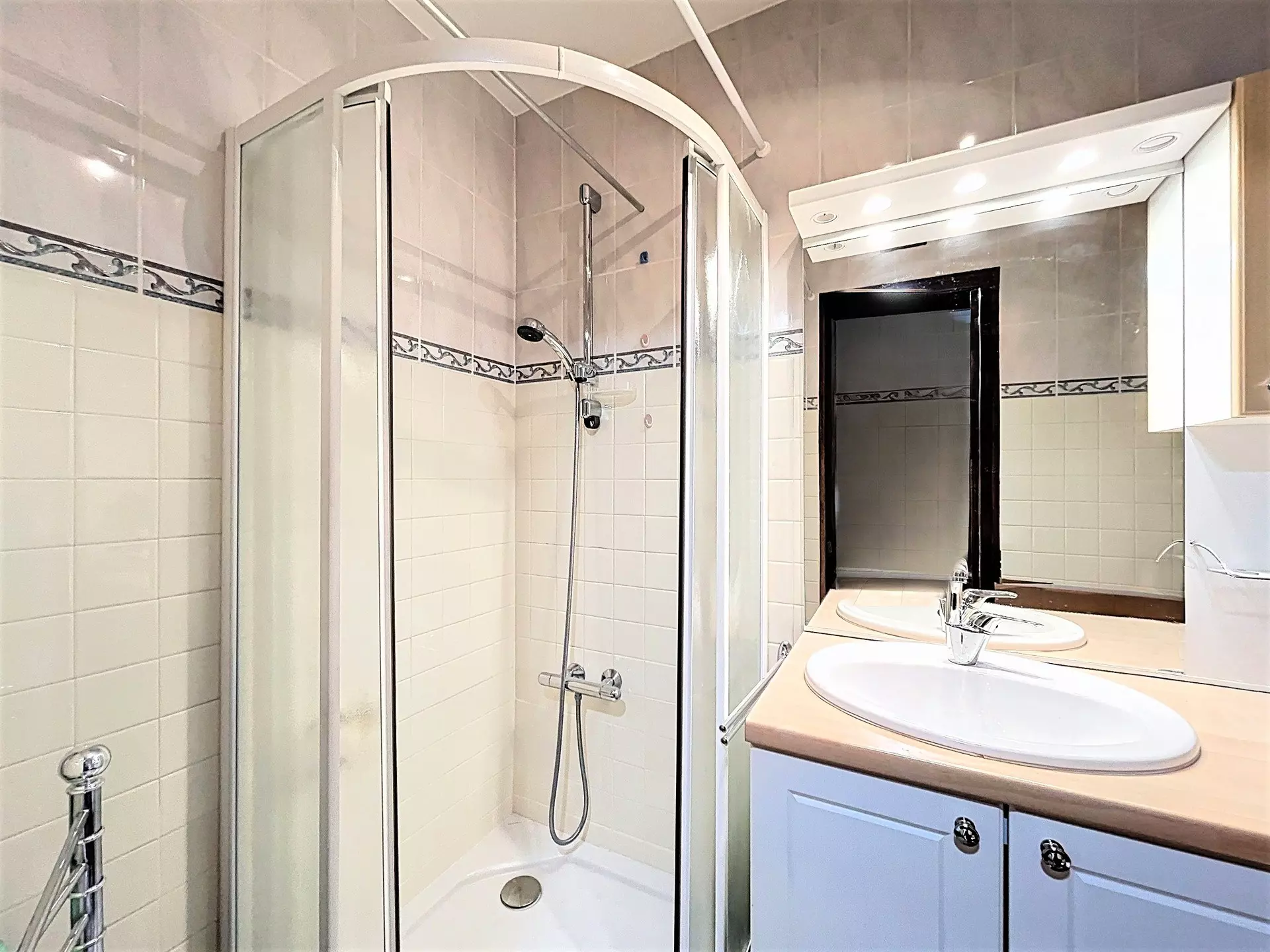 • A bathroom with shower and WC.