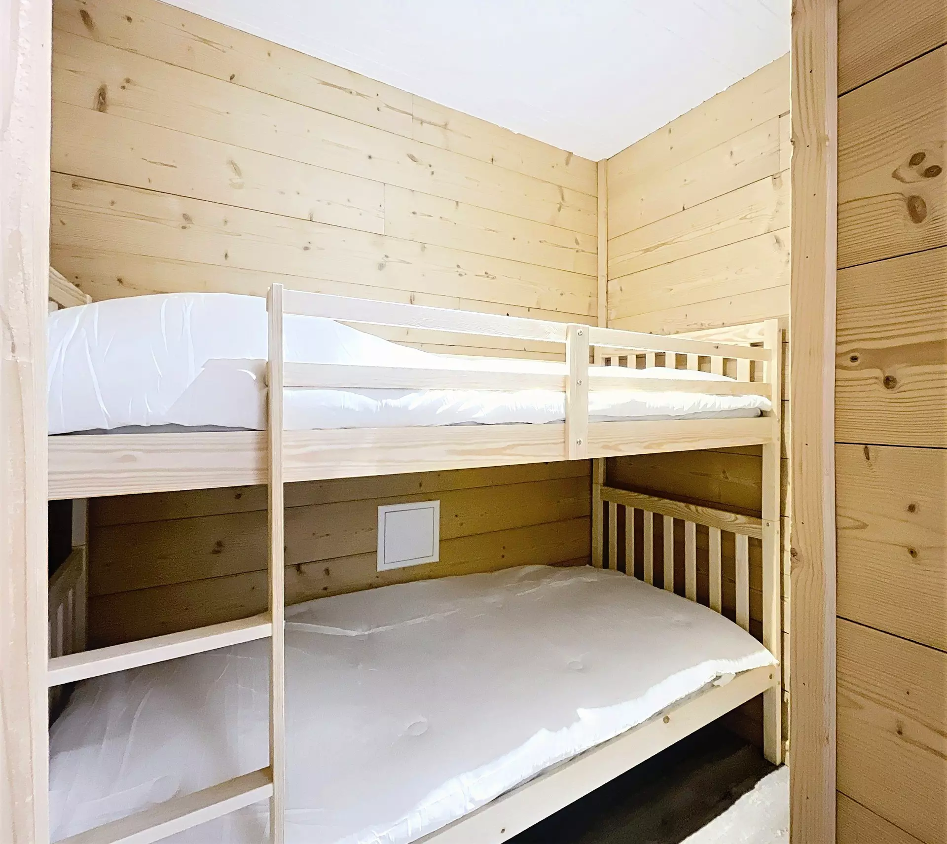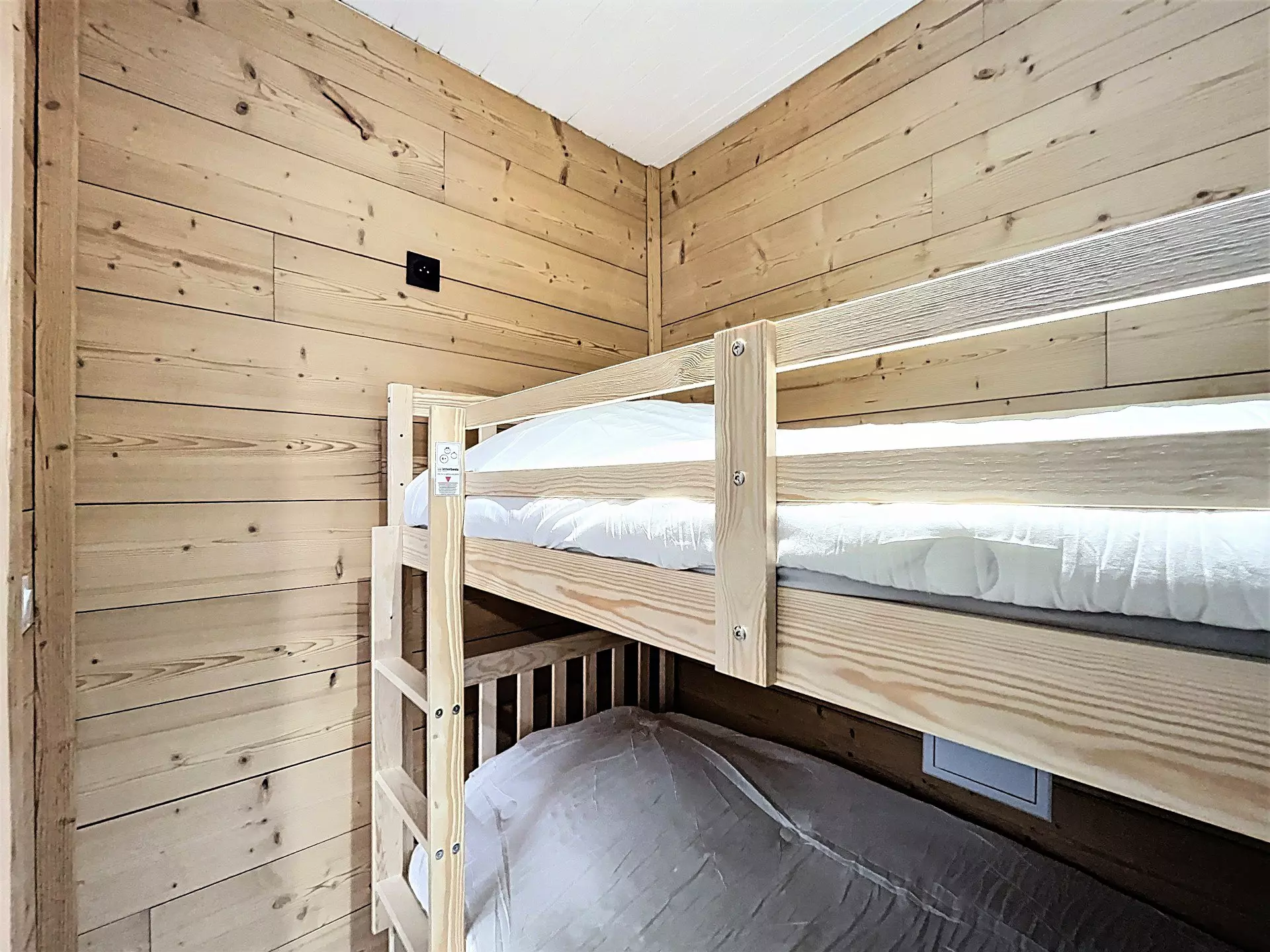 • An alcove with 2 bunk beds, separated from the living room by a curtain.