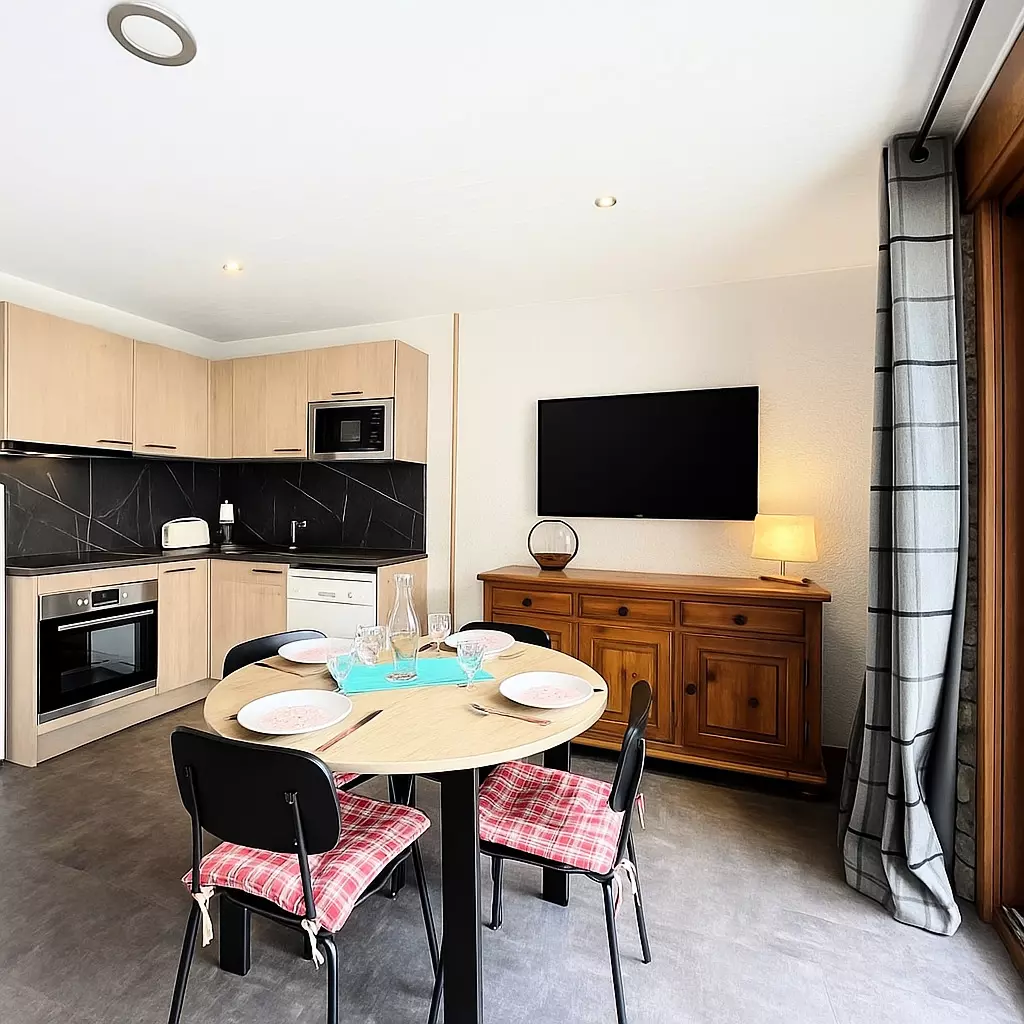 Ideally located in the heart of the La Toussuire resort, approximately 150m from the snow front, this renovated 32 m² alcove studio welcomes you on the 1st floor of the Toussuire Residence (entrance C). It benefits from a south-facing balcony, offering beautiful light.