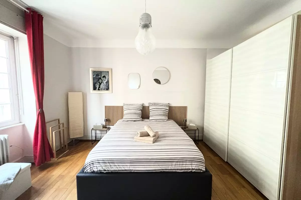 This apartment combines practicality and elegance with its high ceilings, soothing ambiance, and quiet, a rare find in the city. Its location is a real asset: just a stone's throw from the city center, you'll enjoy quick access to Strasbourg's shops, restaurants, and entertainment.