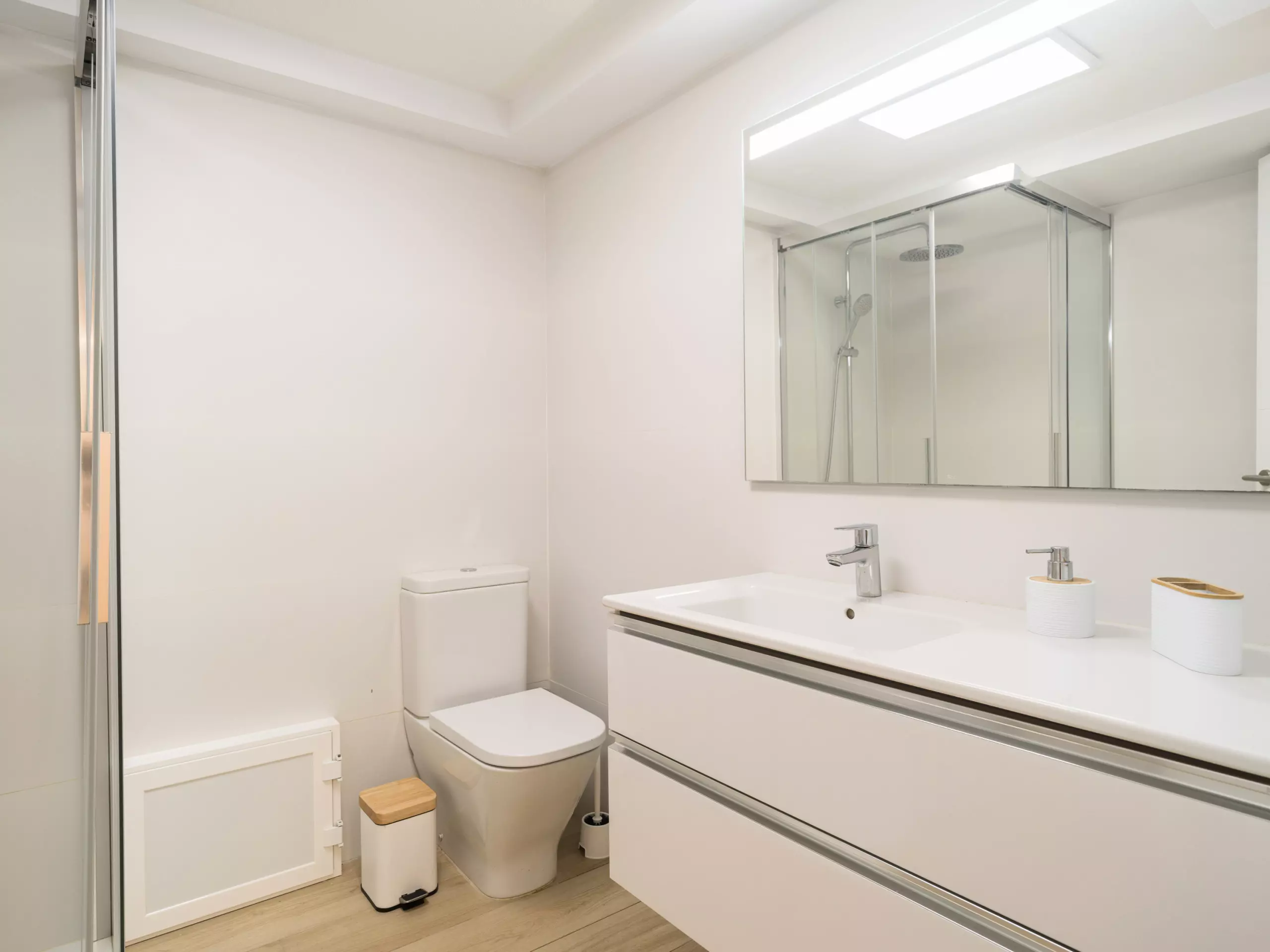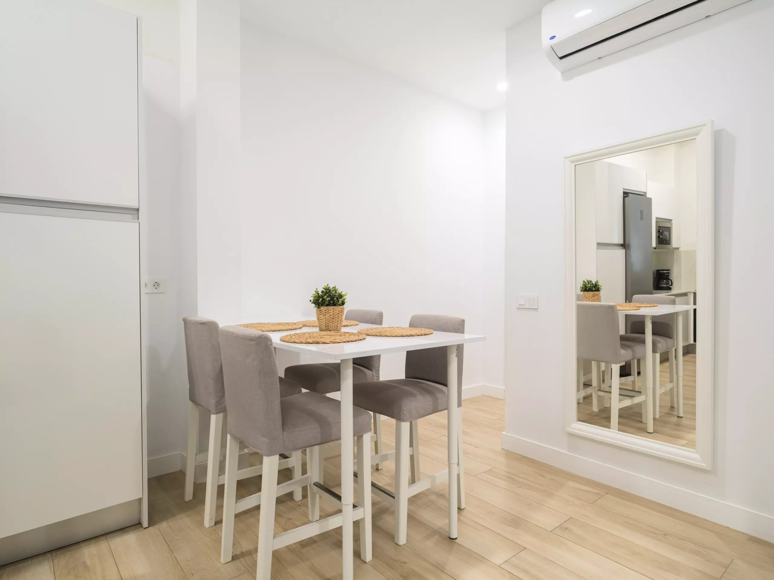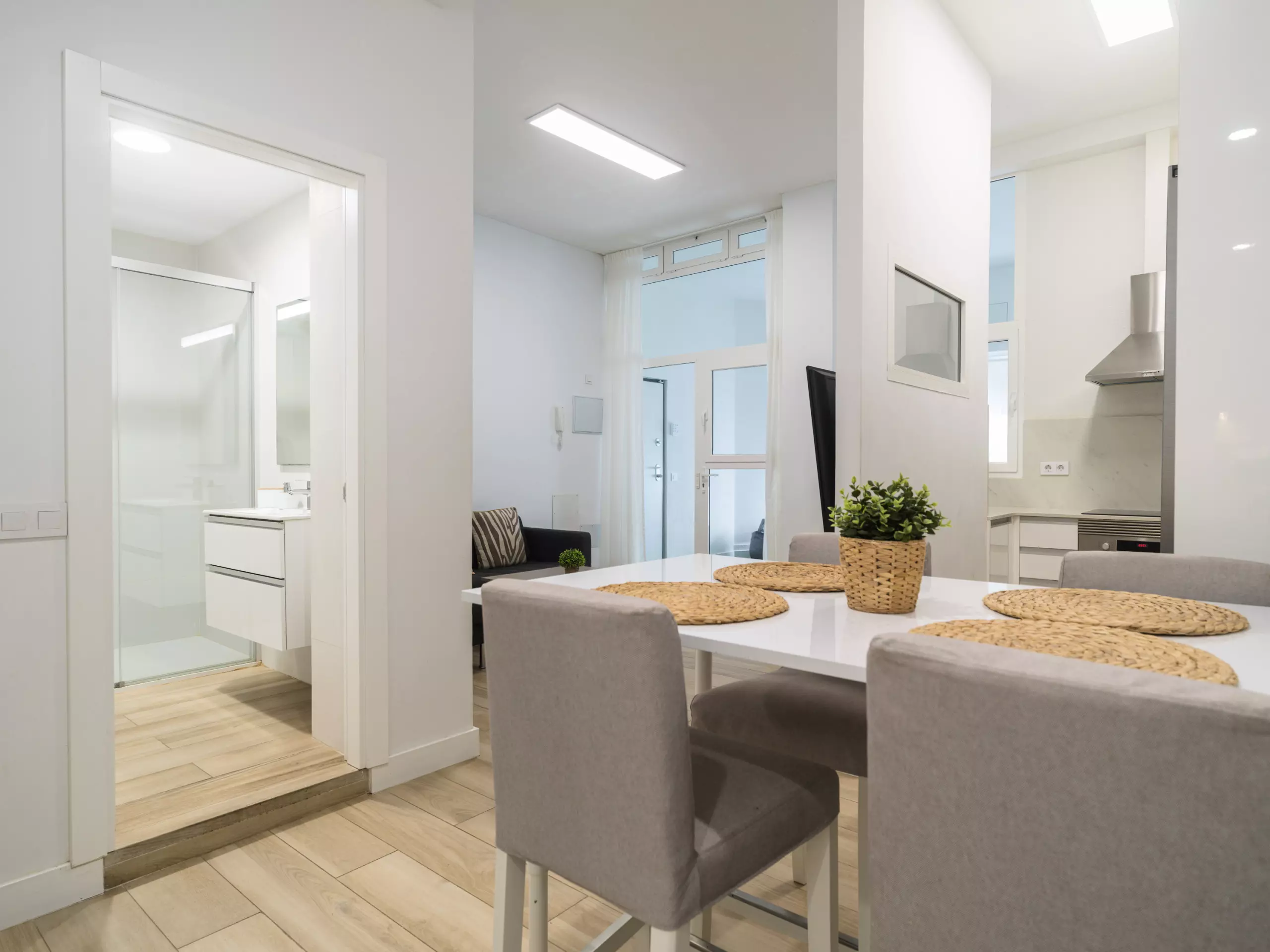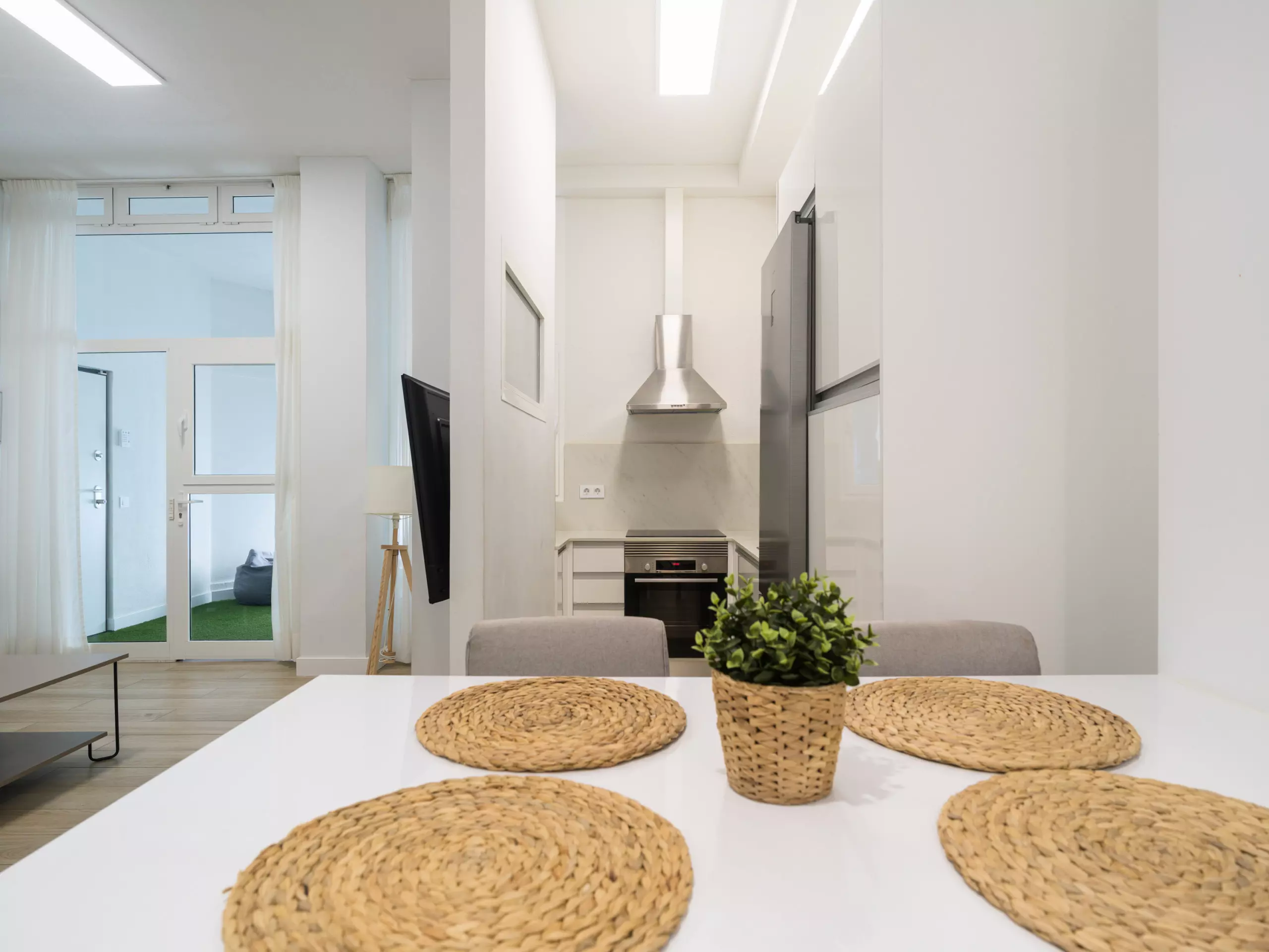 The independent kitchen is fully equipped with the latest generation of appliances, including an induction hob, refrigerator, freezer, washing machine, oven, microwave, coffee maker, toaster, kettle, juicer, and a complete set of dishes and kitchen utensils. This allows guests to prepare meals and enjoy gastronomic moments in the apartment.