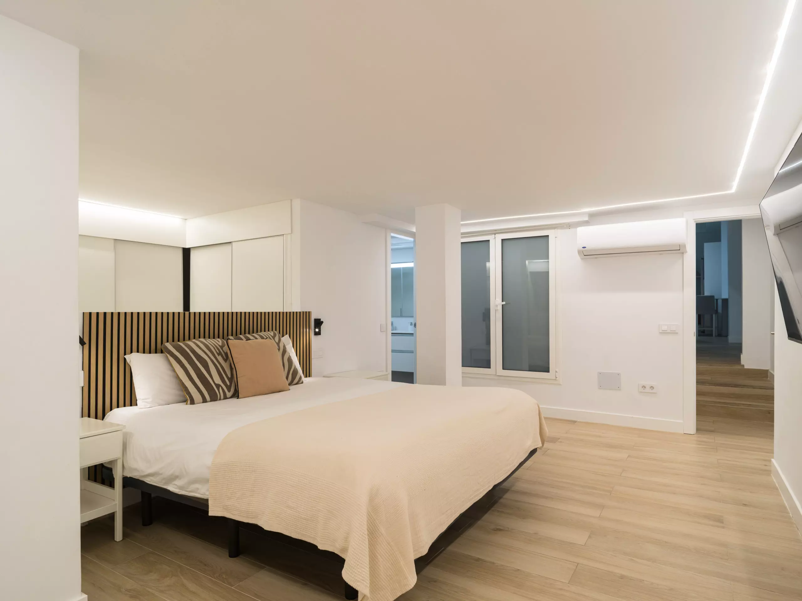 The interior space is climate-controlled with an air conditioner and a heat pump, ensuring a pleasant temperature at any time of the year. In addition, it has Wi-Fi, two televisions, an iron, a radio, and other details that make your stay comfortable.