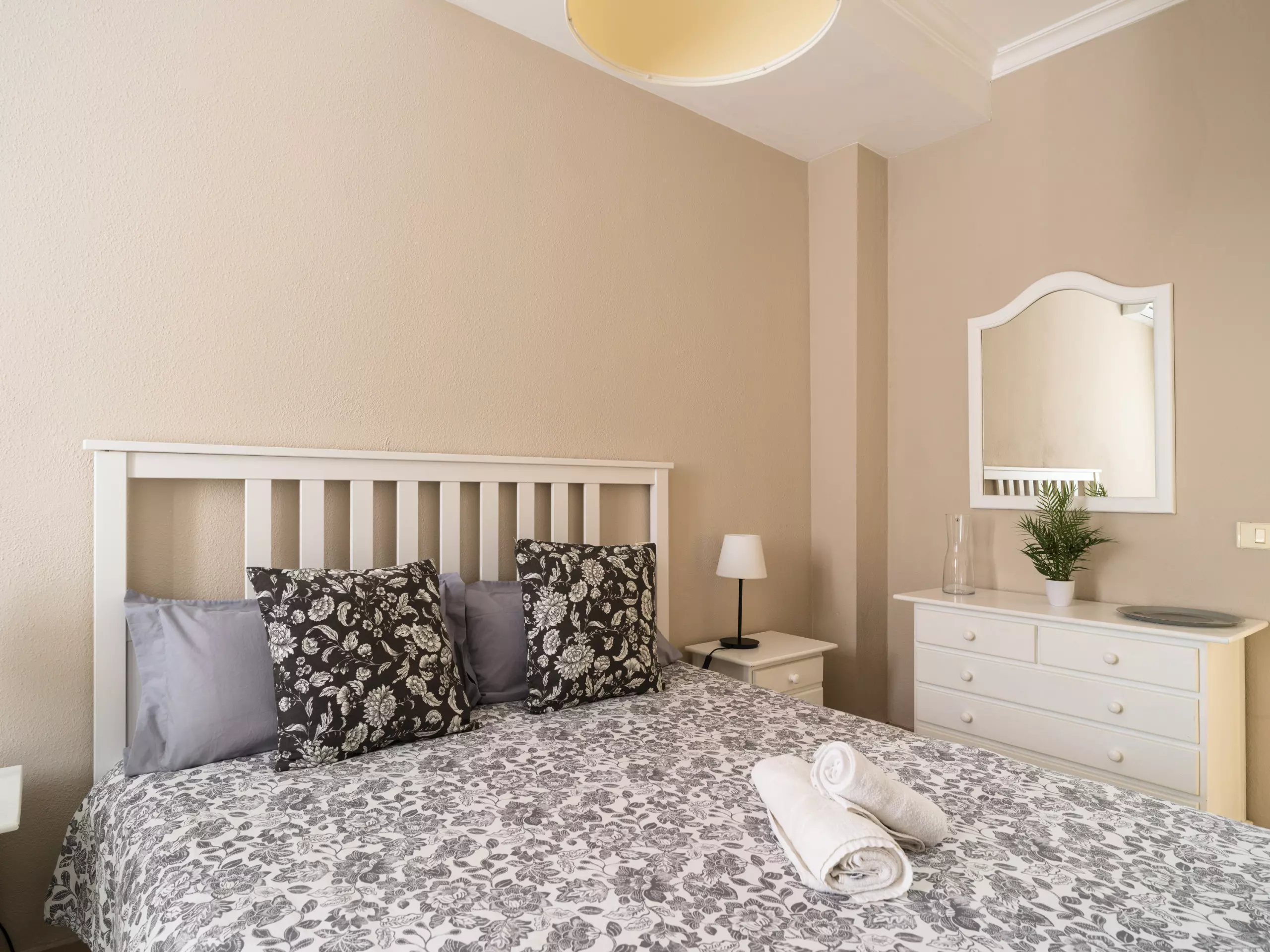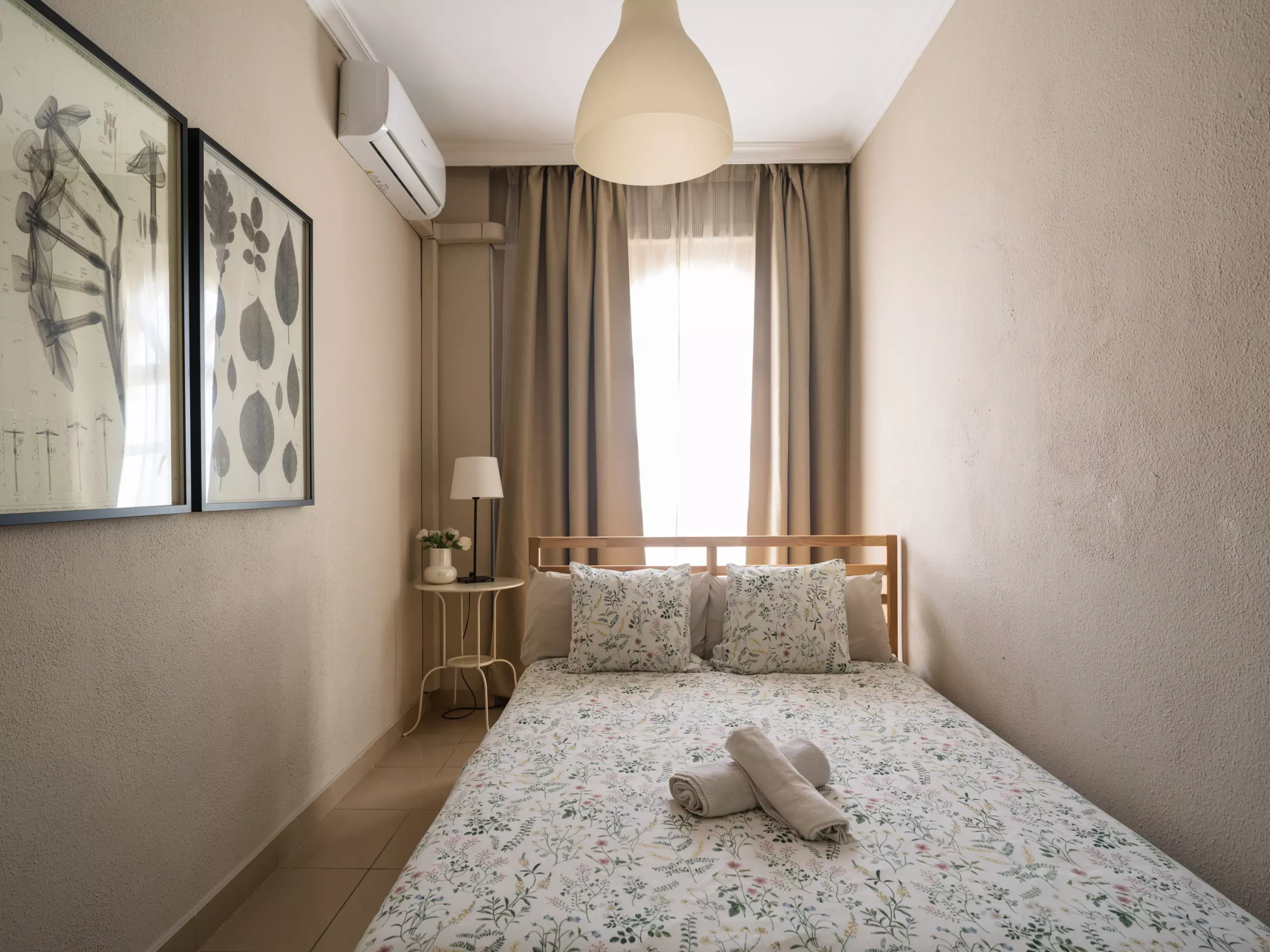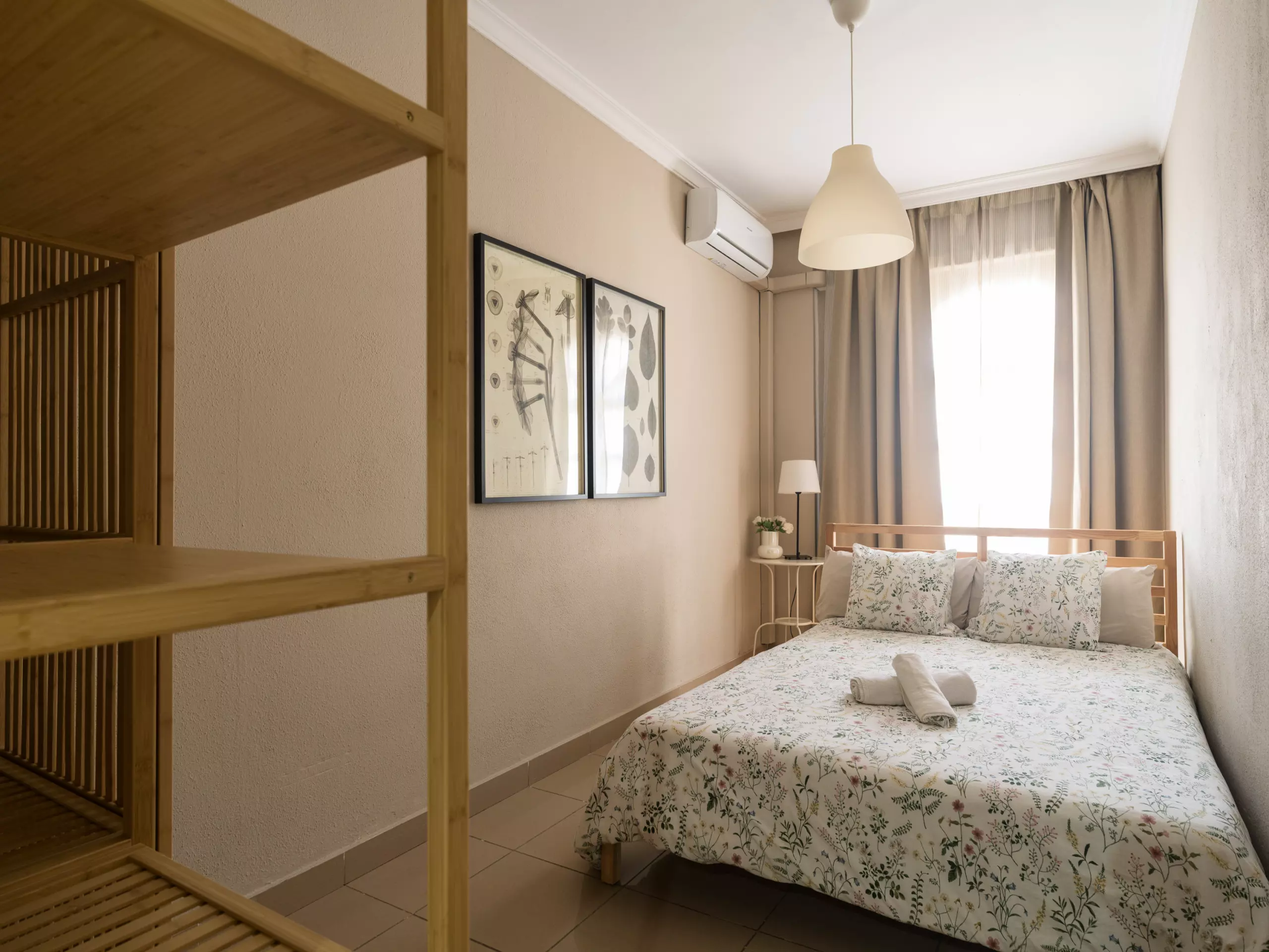 This bright two-bedroom apartment offers a comfortable and versatile space. It includes two double beds, allowing it to comfortably accommodate up to four people. The layout allows for a relaxed and private stay for all guests.