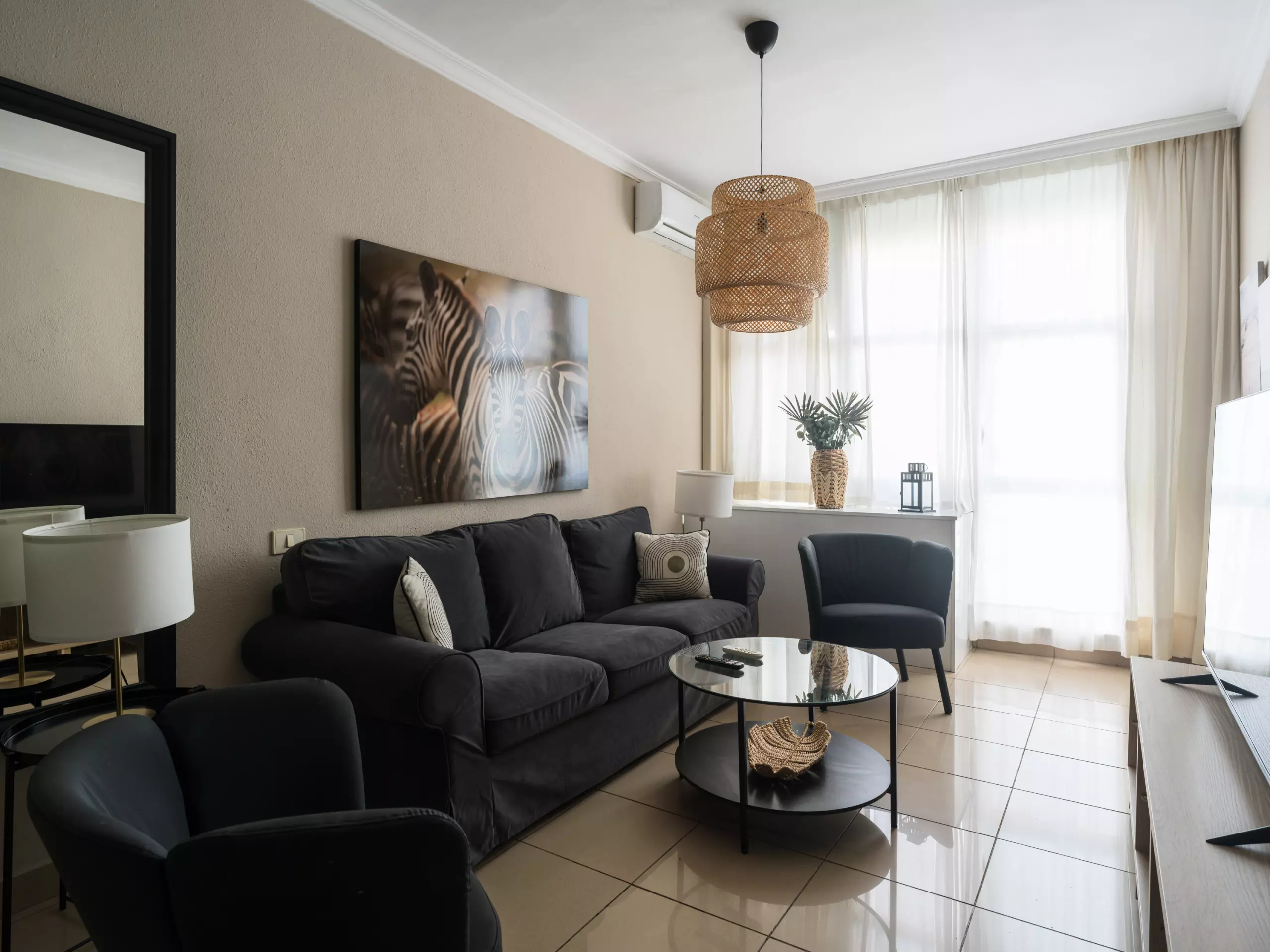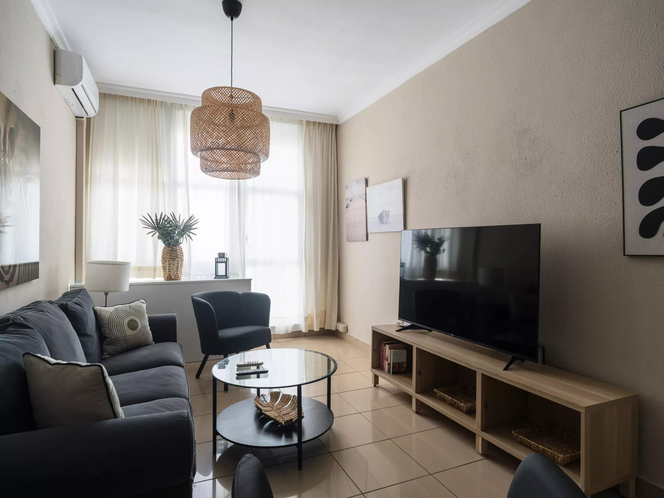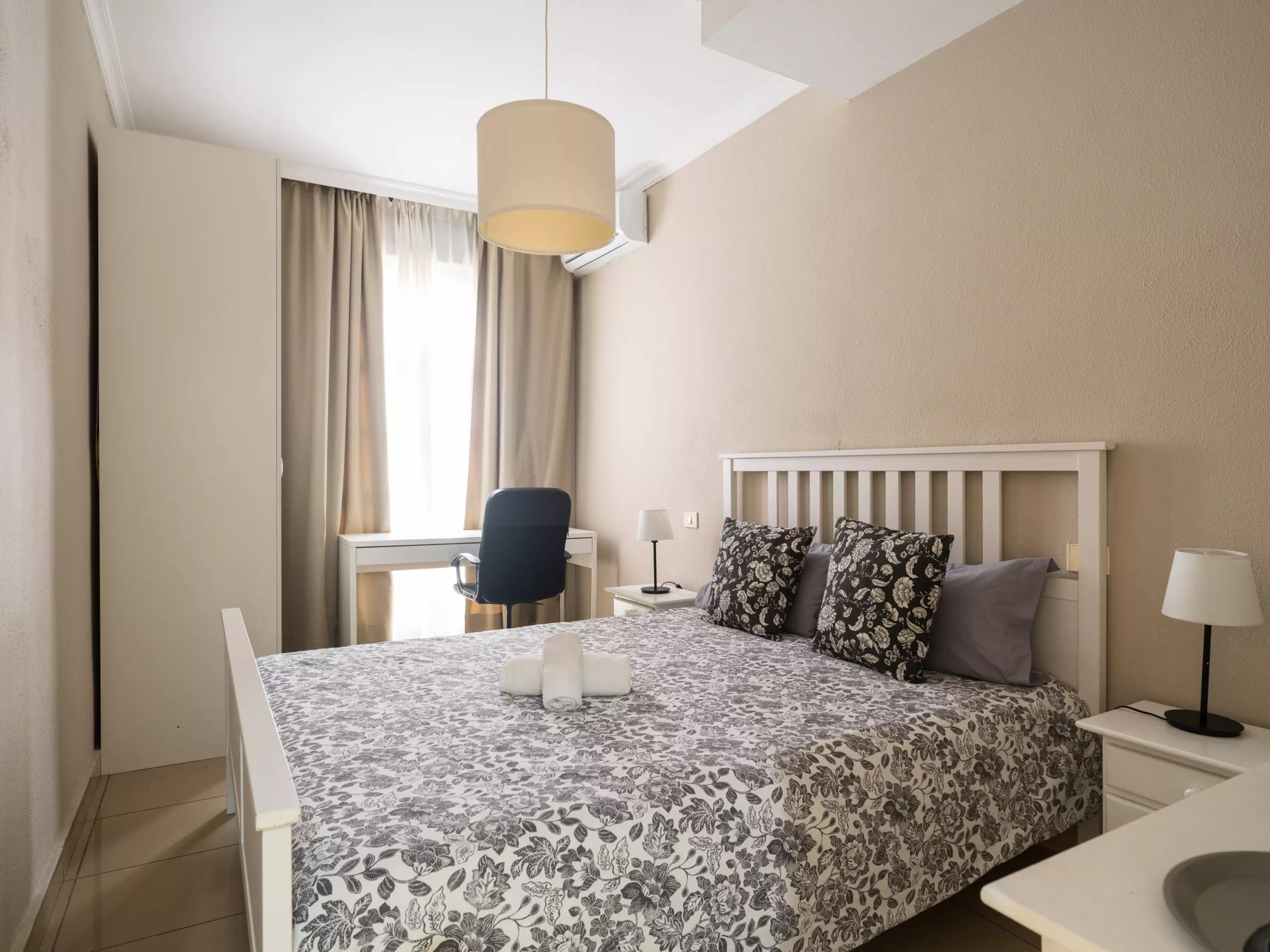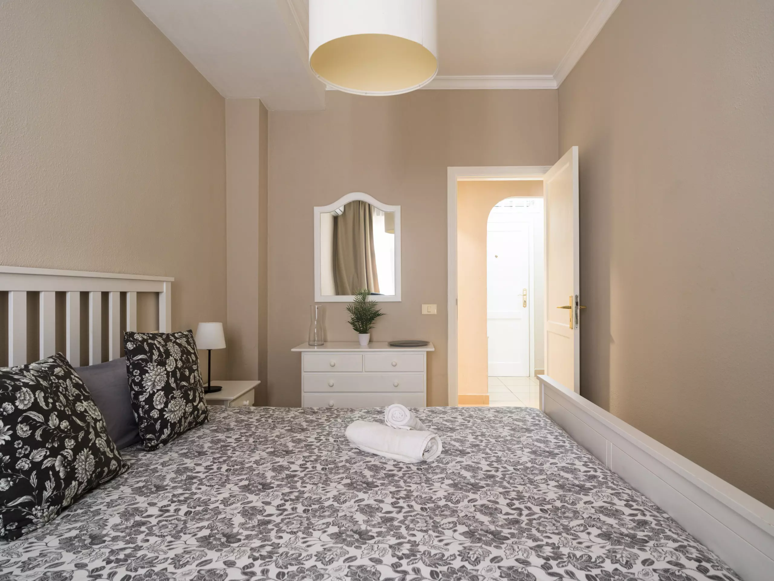 This bright two-bedroom apartment offers a comfortable and versatile space. It includes two double beds, allowing it to comfortably accommodate up to four people. The layout allows for a relaxed and private stay for all guests.