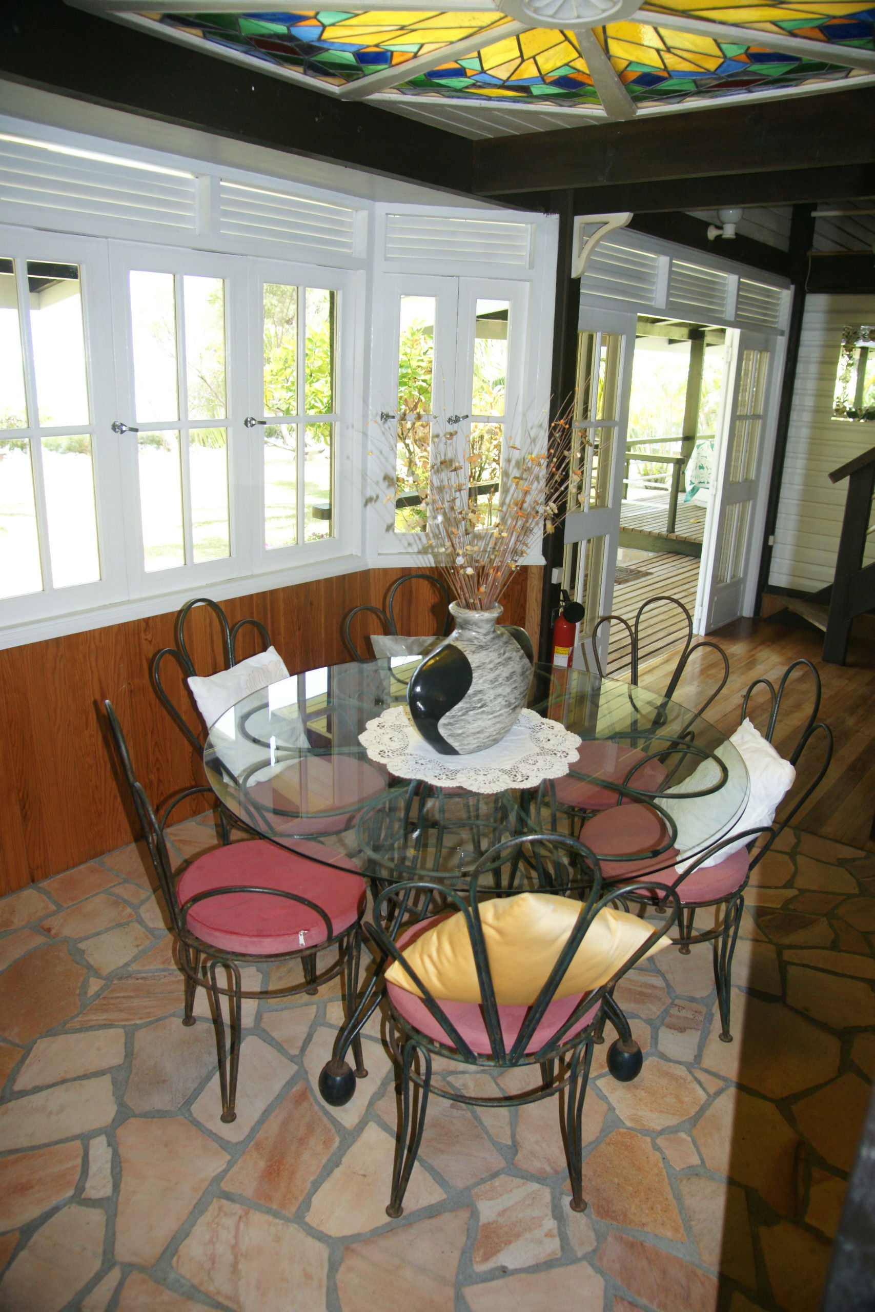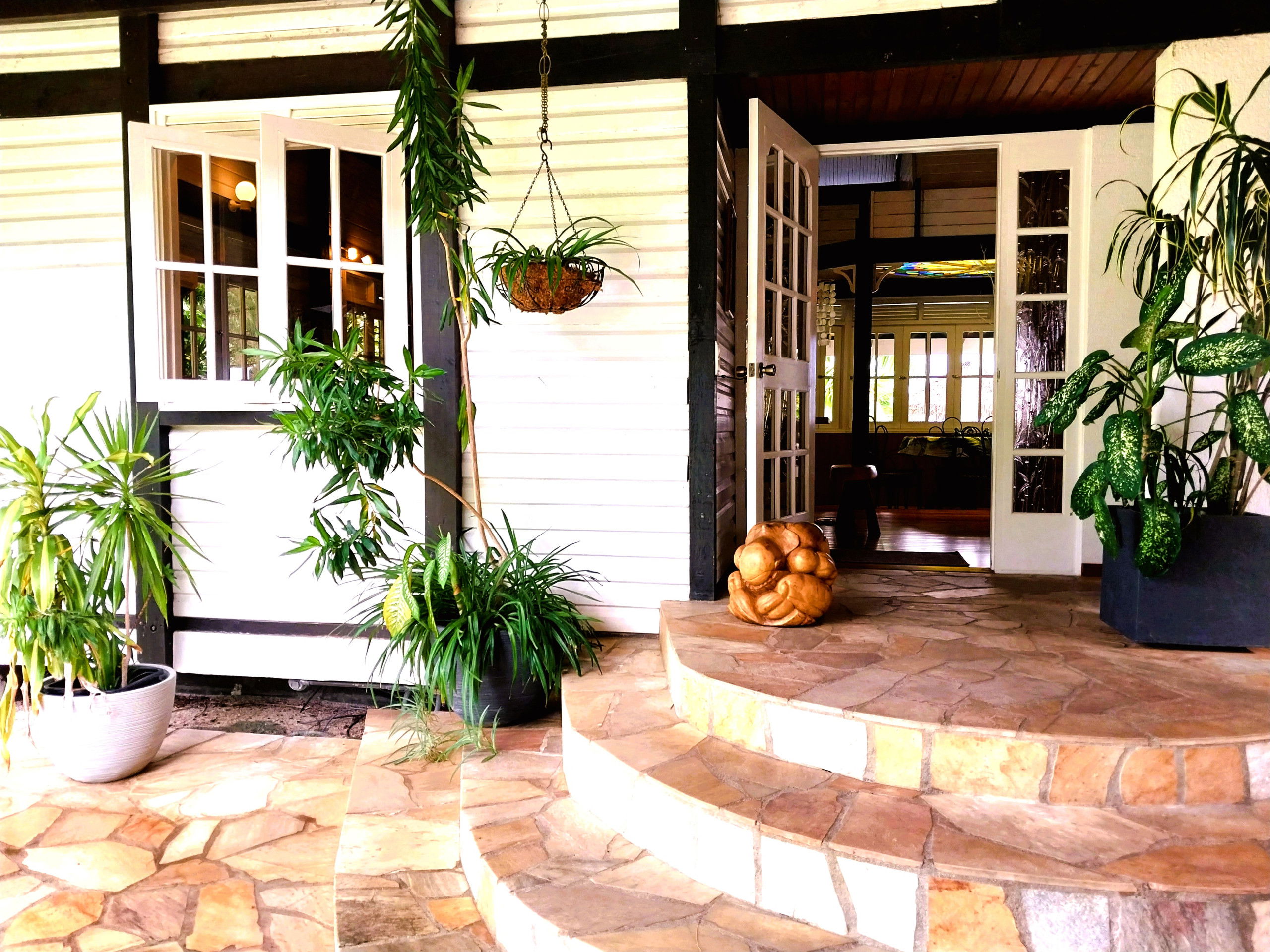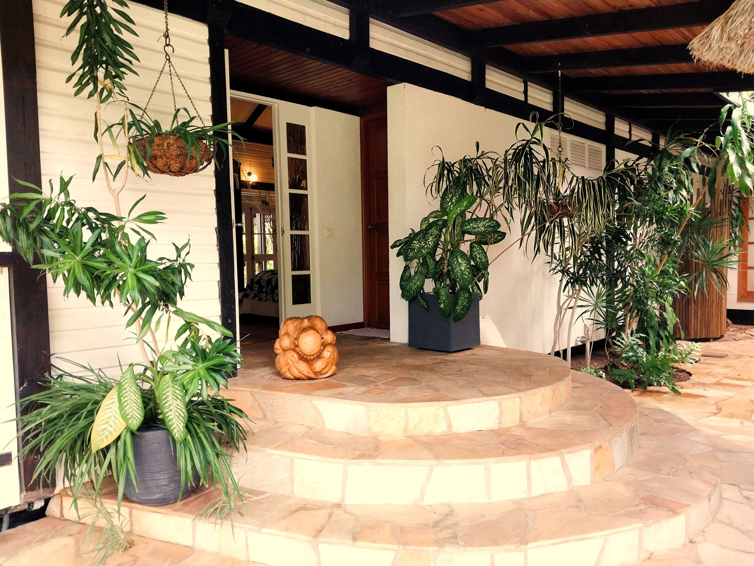 - A spacious terrace overlooking the garden with a view of the lagoon