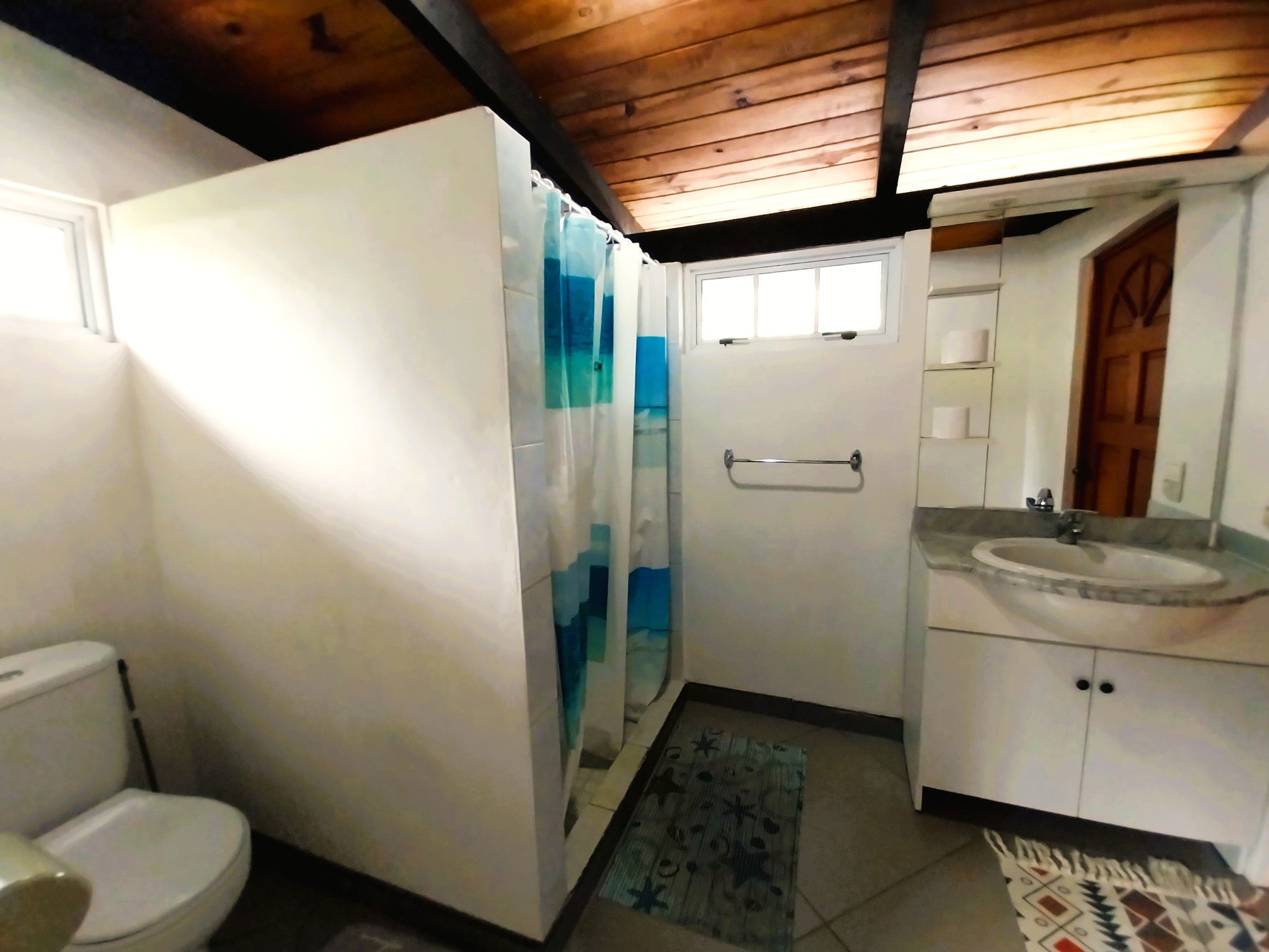 The master bedroom inside the villa, with its own bathroom and private toilet, for optimal comfort. You will find 2 other bedrooms on the patio side, both are also air-conditioned and with Queen size beds. There are 2 independent shower rooms and toilets accessible to all villa occupants without any invasion of privacy.