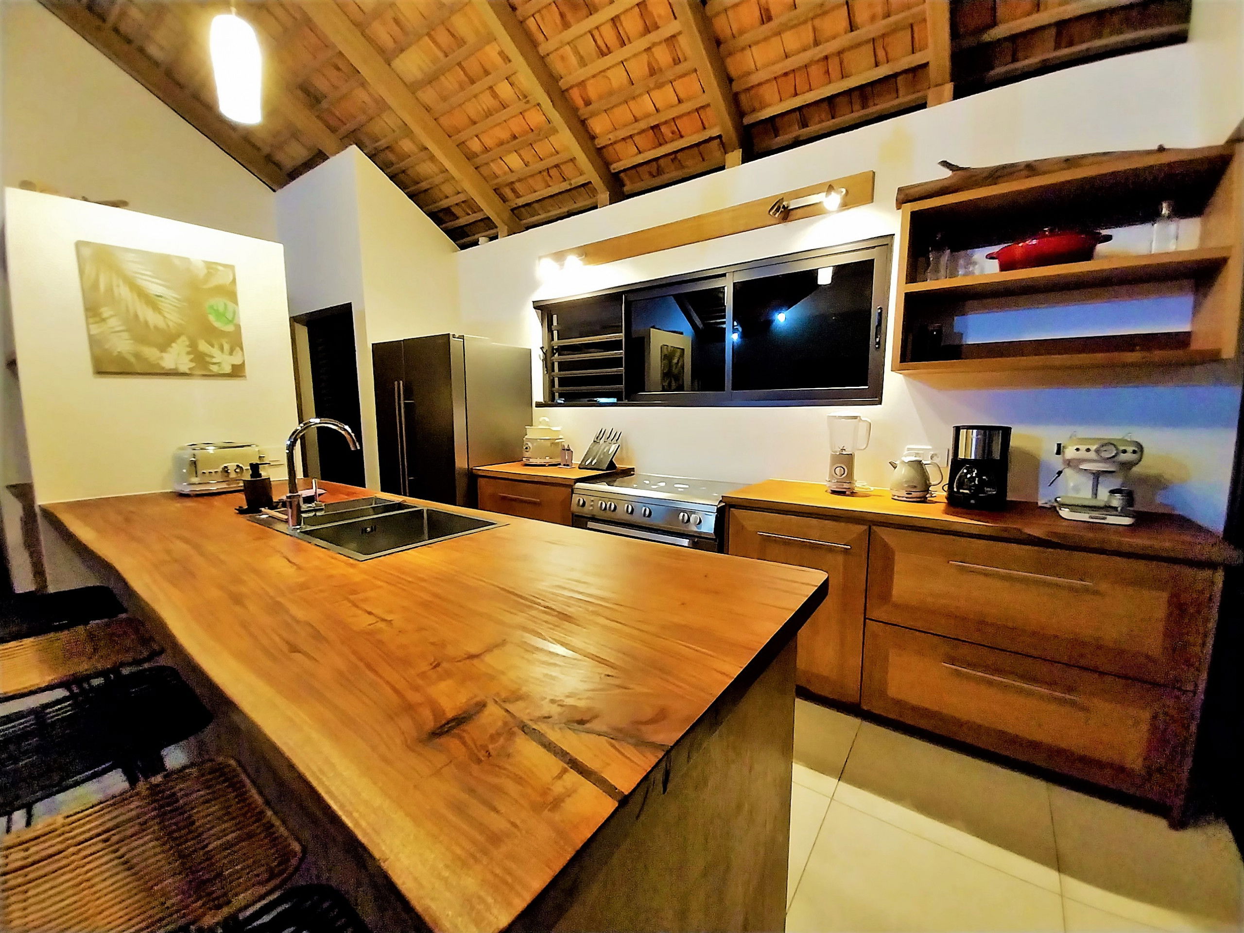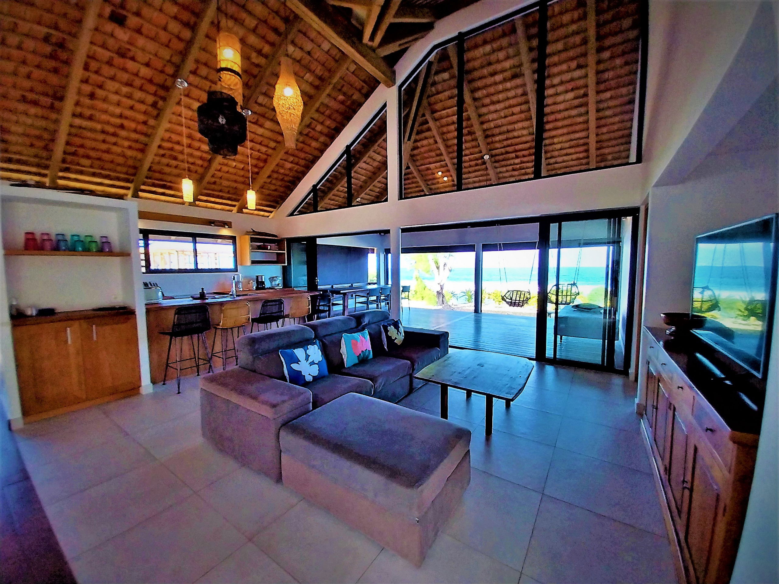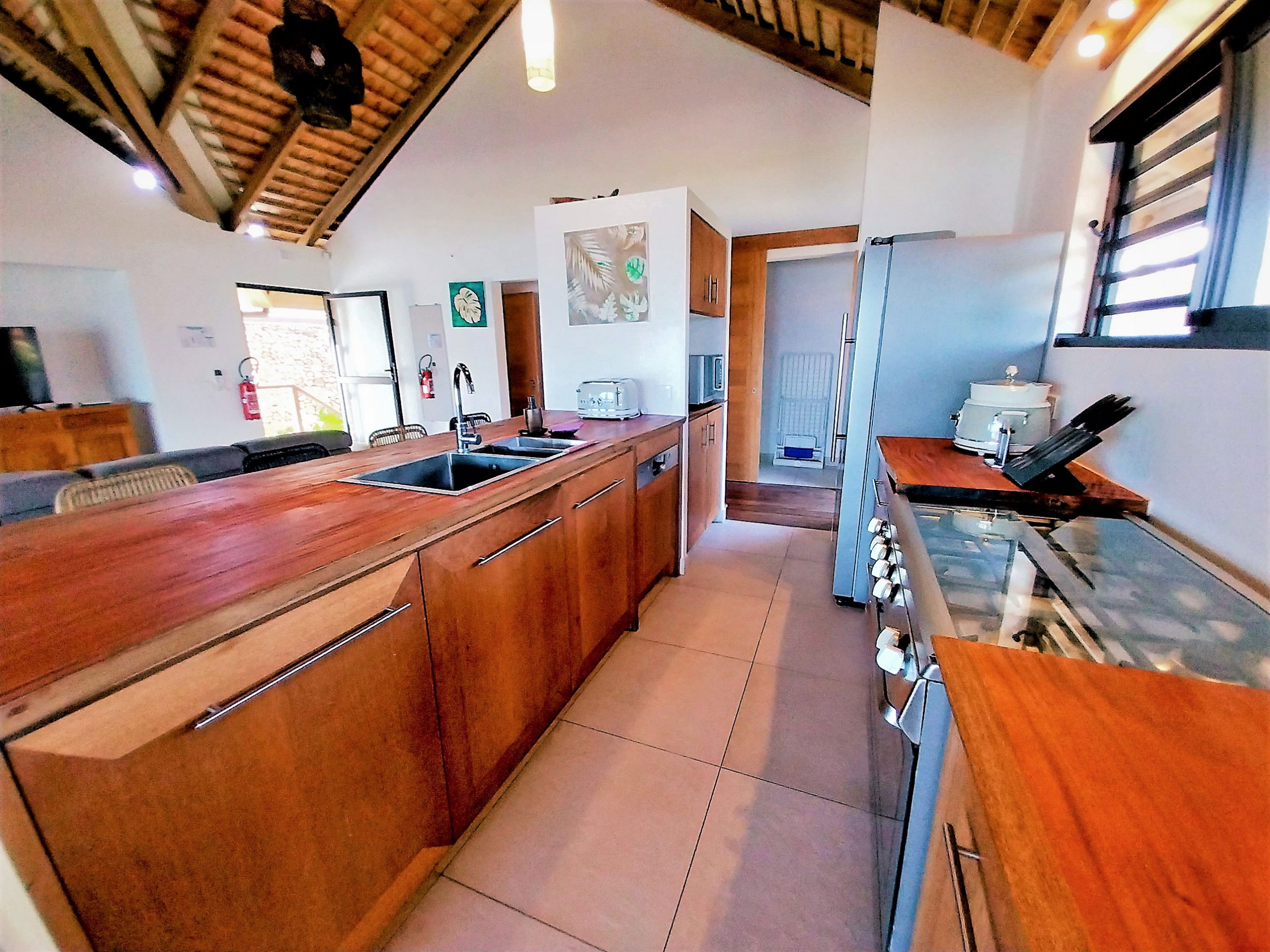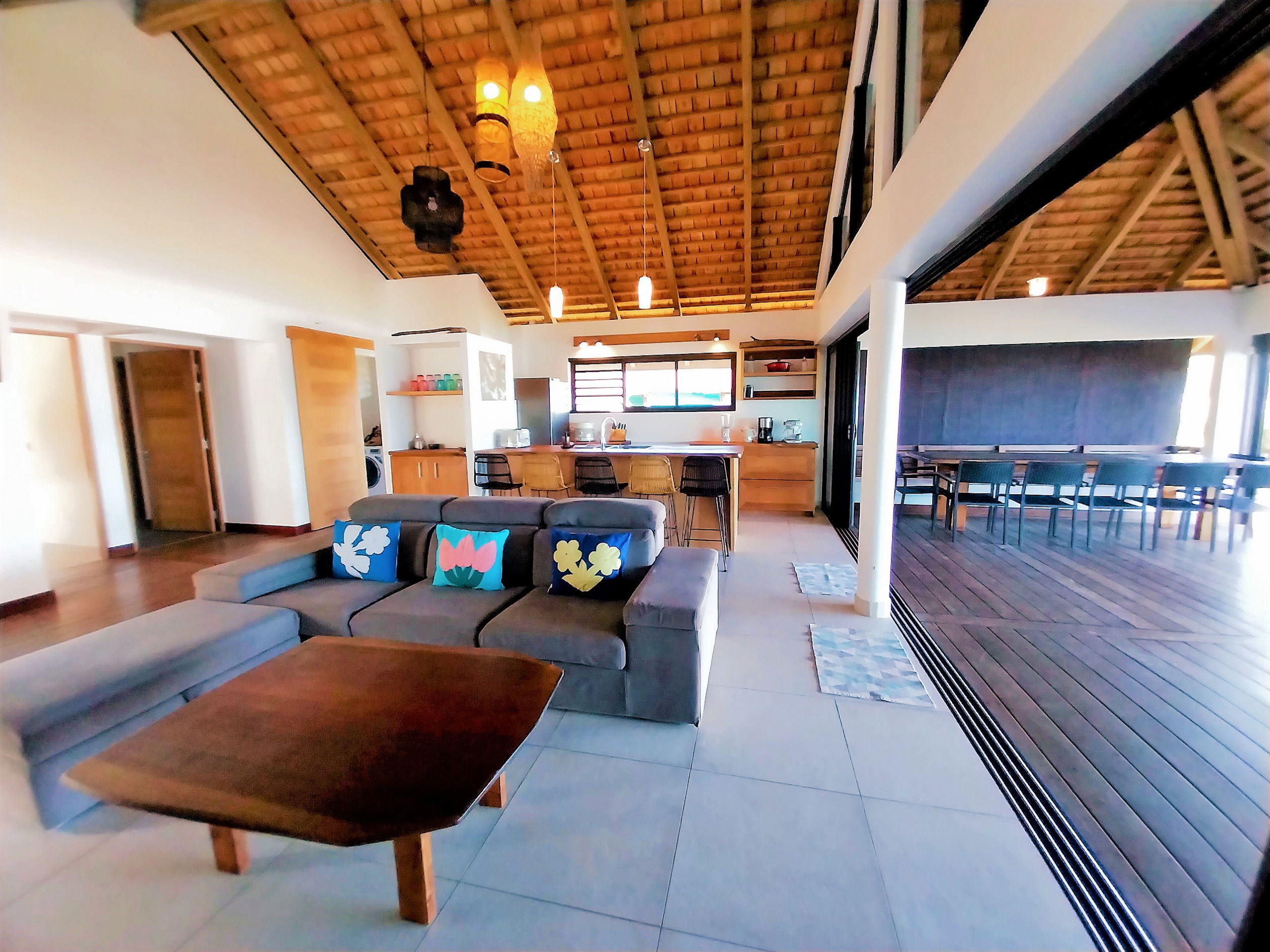 The elegant and refined interior welcomes you with a spacious living room equipped with a television and a corner sofa. The fully equipped kitchen invites you to exercise your Chef talents for the pleasure of your guests, with its modern facilities and chic design. The large table and chairs on the terrace offer you an ideal space to get together for your meals, your aperitifs... facing the Pacific Ocean.