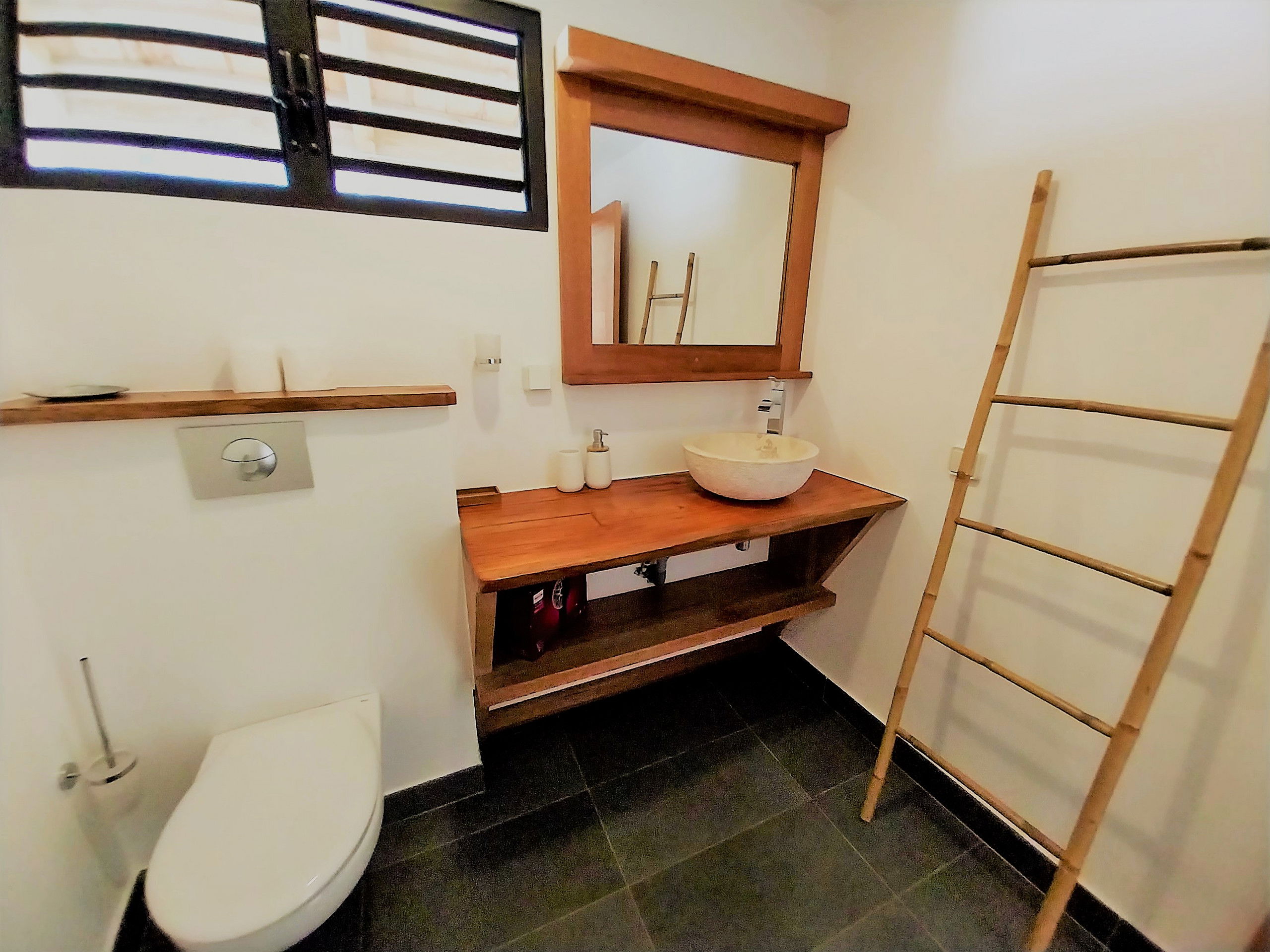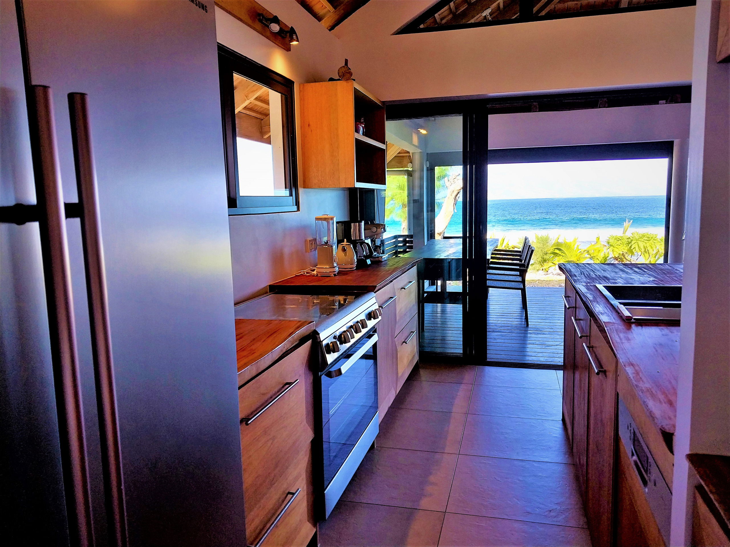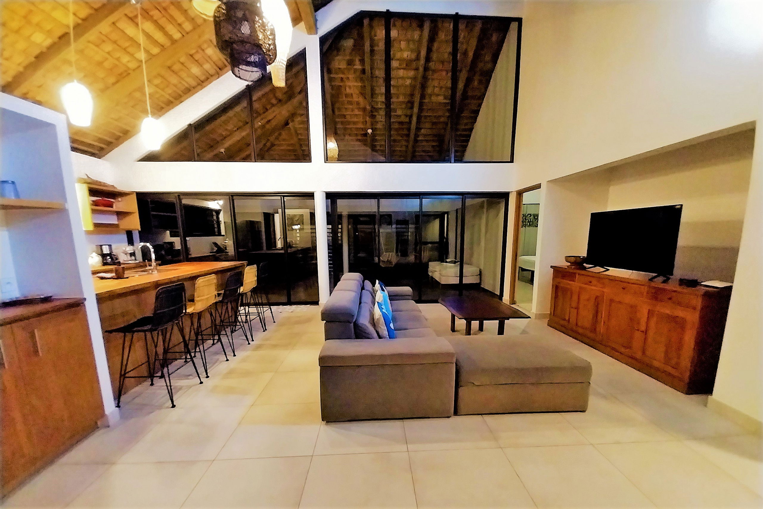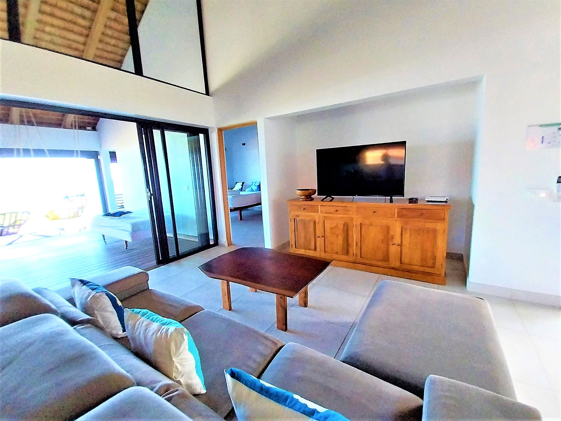 The elegant and refined interior welcomes you with a spacious living room equipped with a television and a corner sofa. The fully equipped kitchen invites you to exercise your Chef talents for the pleasure of your guests, with its modern facilities and chic design. The large table and chairs on the terrace offer you an ideal space to get together for your meals, your aperitifs... facing the Pacific Ocean.