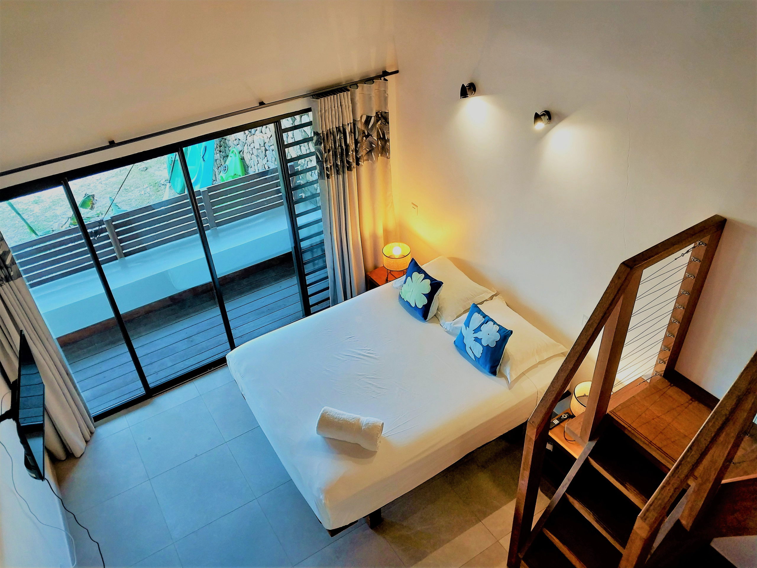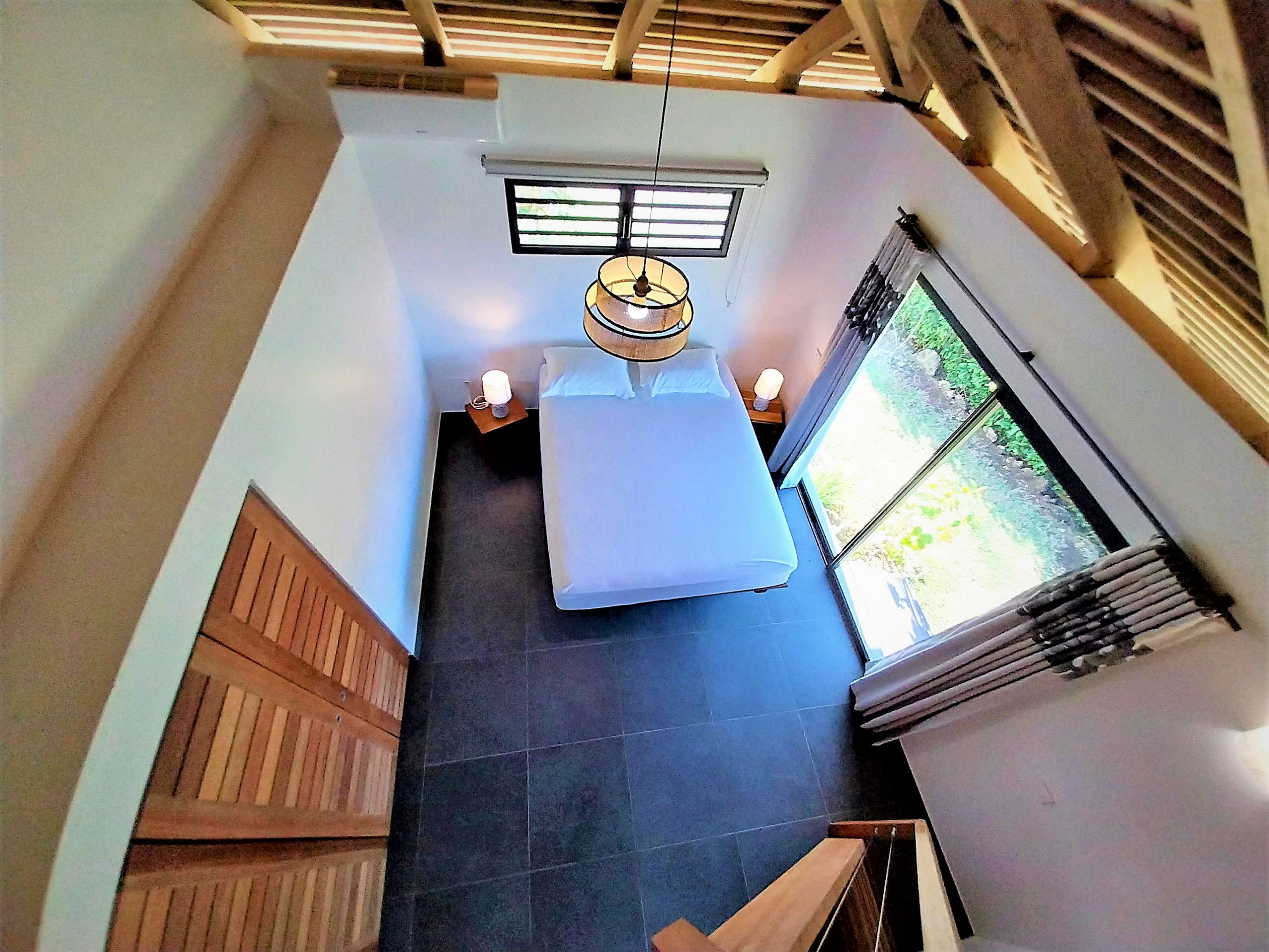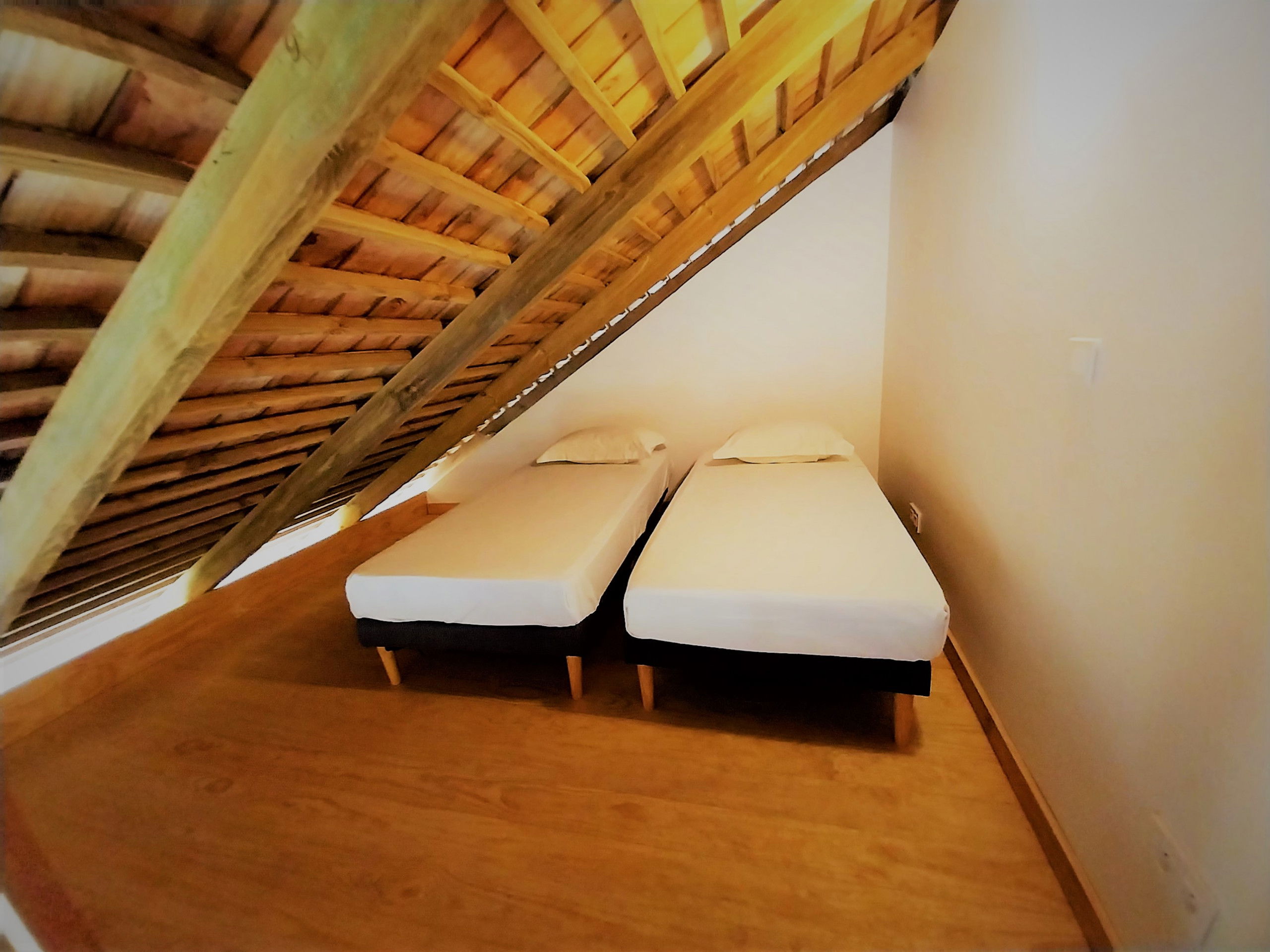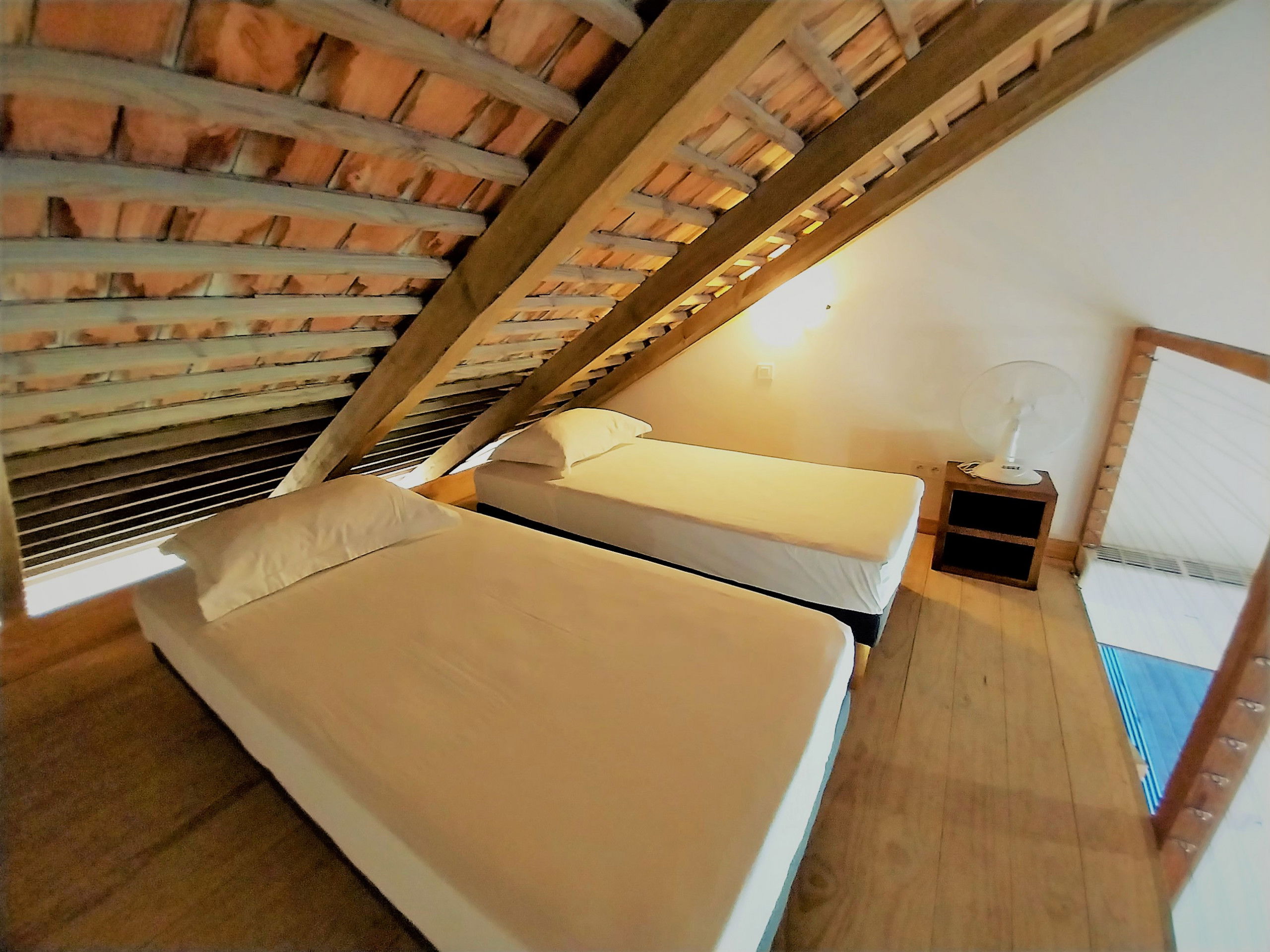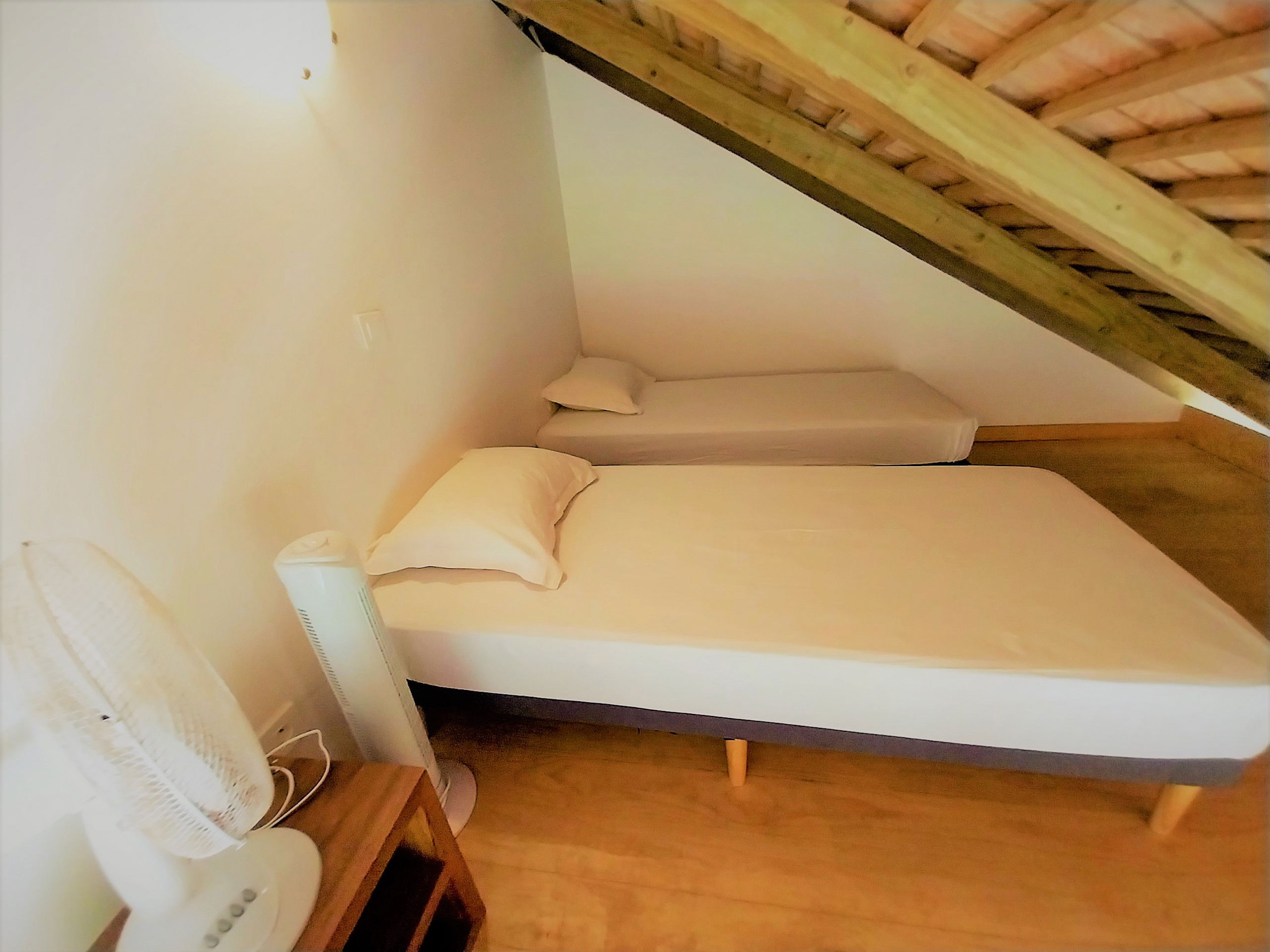The two sumptuous rooms are each equipped with a Queen size bed for peaceful and restful nights. Each room has its own private shower room and direct access to the outside, allowing you to feel intimate and in harmony. The mezzanines with two single beds add a playful touch to the layout. These spaces are ideal for families with children.