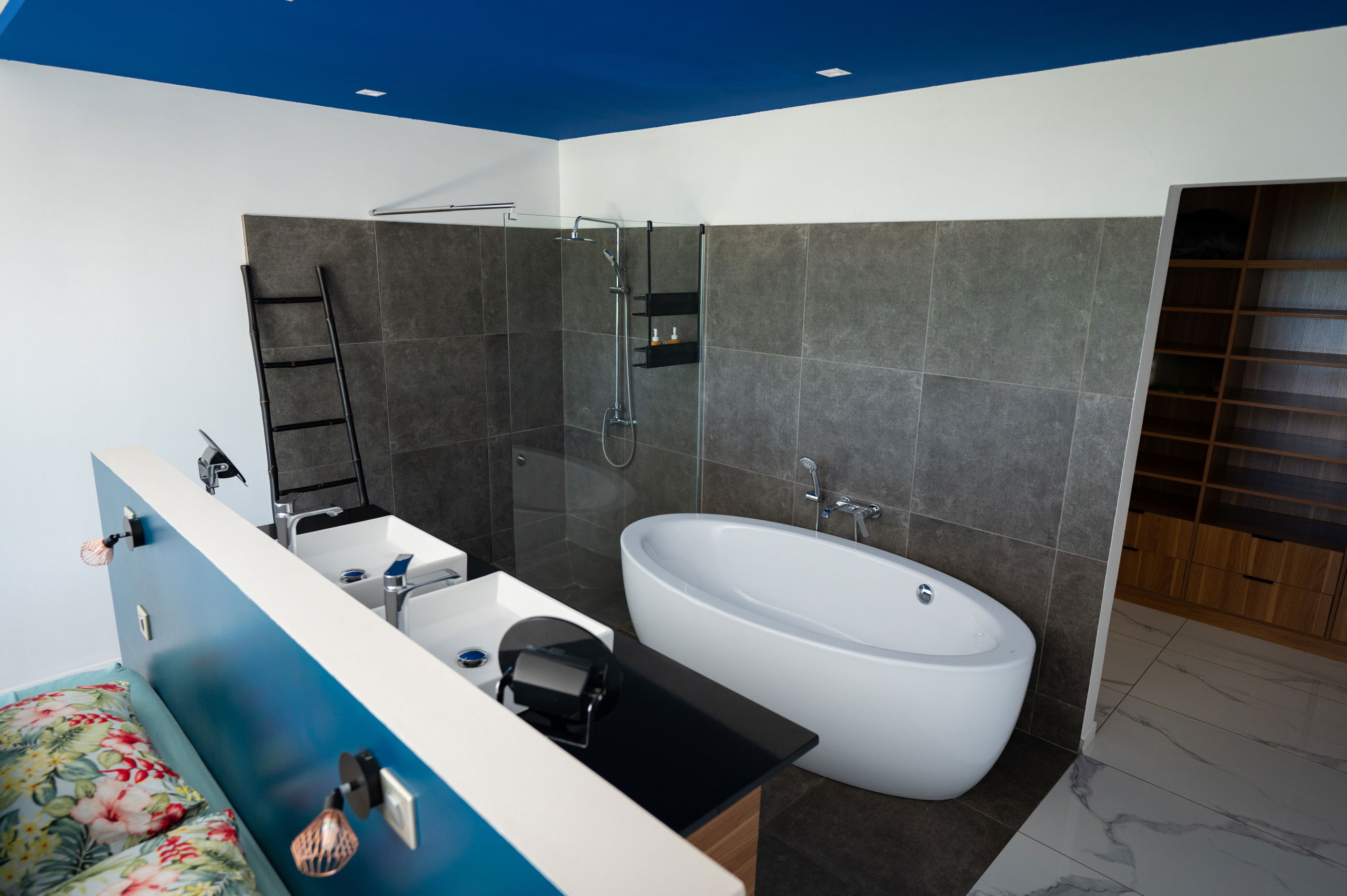 The master suite, a true sanctuary of relaxation, is equipped with a king-size bed and an ensuite bathroom with a shower and separate bath. The unique design of this suite ensures absolute rest after a day of exploring.