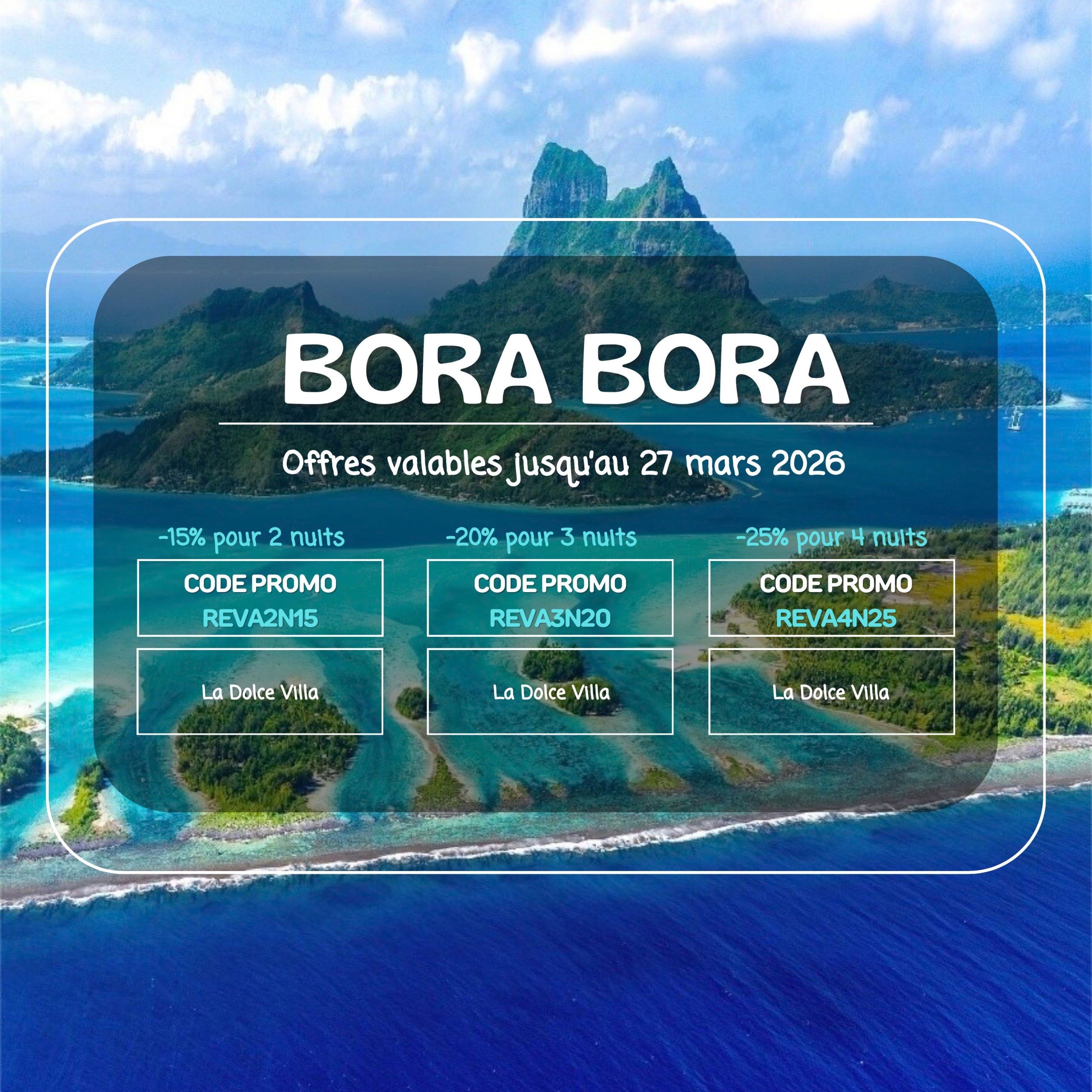 Perched on the lower slopes of Vaitape, the Dolce Villa offers breathtaking views of the sparkling lagoon, the heavenly motus and the magnificent bay of Povai. This exceptional villa combines luxury, comfort and modernity, making your stay an unforgettable experience.