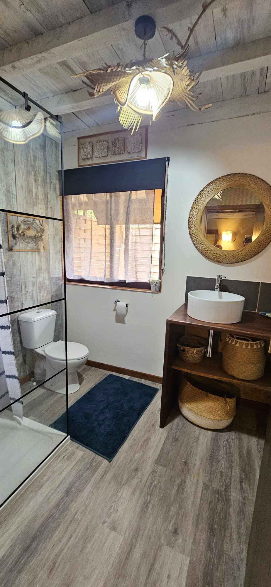 The shower room, with its washbasin, shower, toilet and solar hot water, ensures optimal comfort. Also enjoy the spacious covered terrace, where a table and chairs invite you to relax, to meet around a meal under the soft tropical breeze.