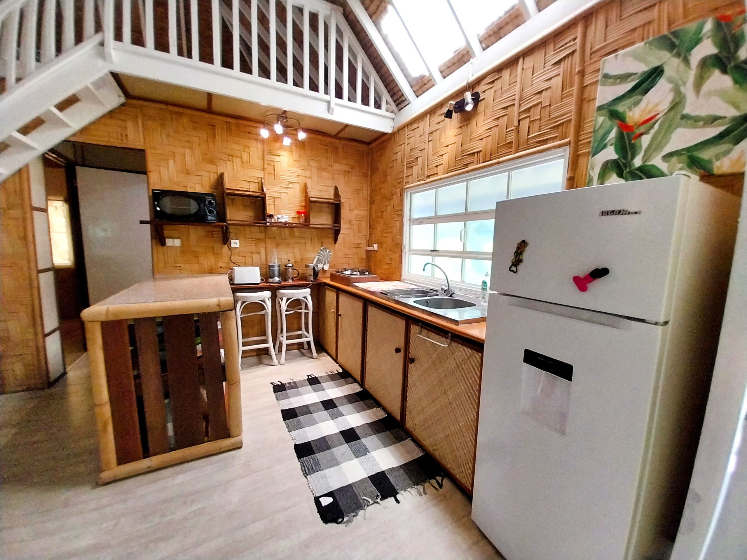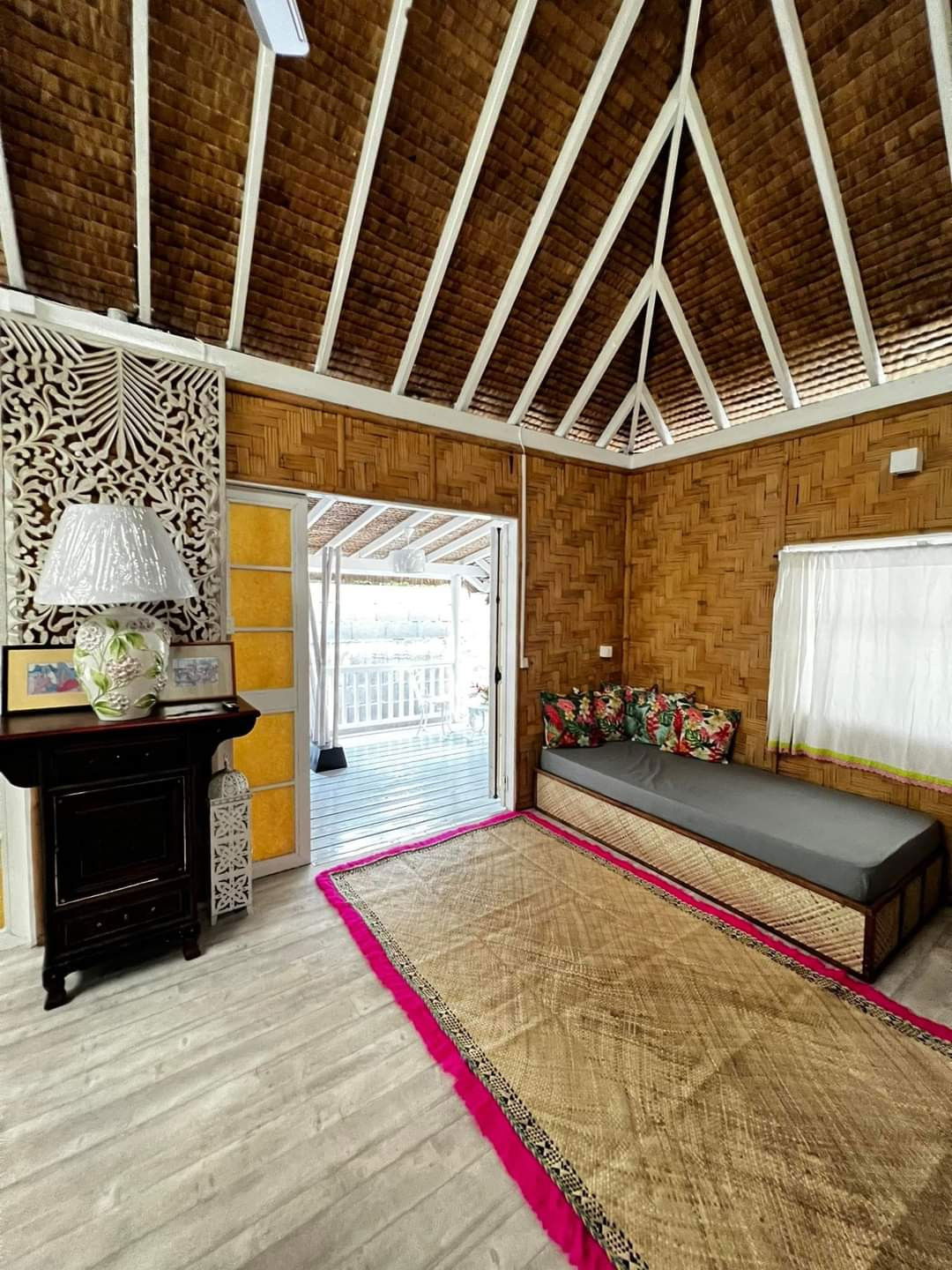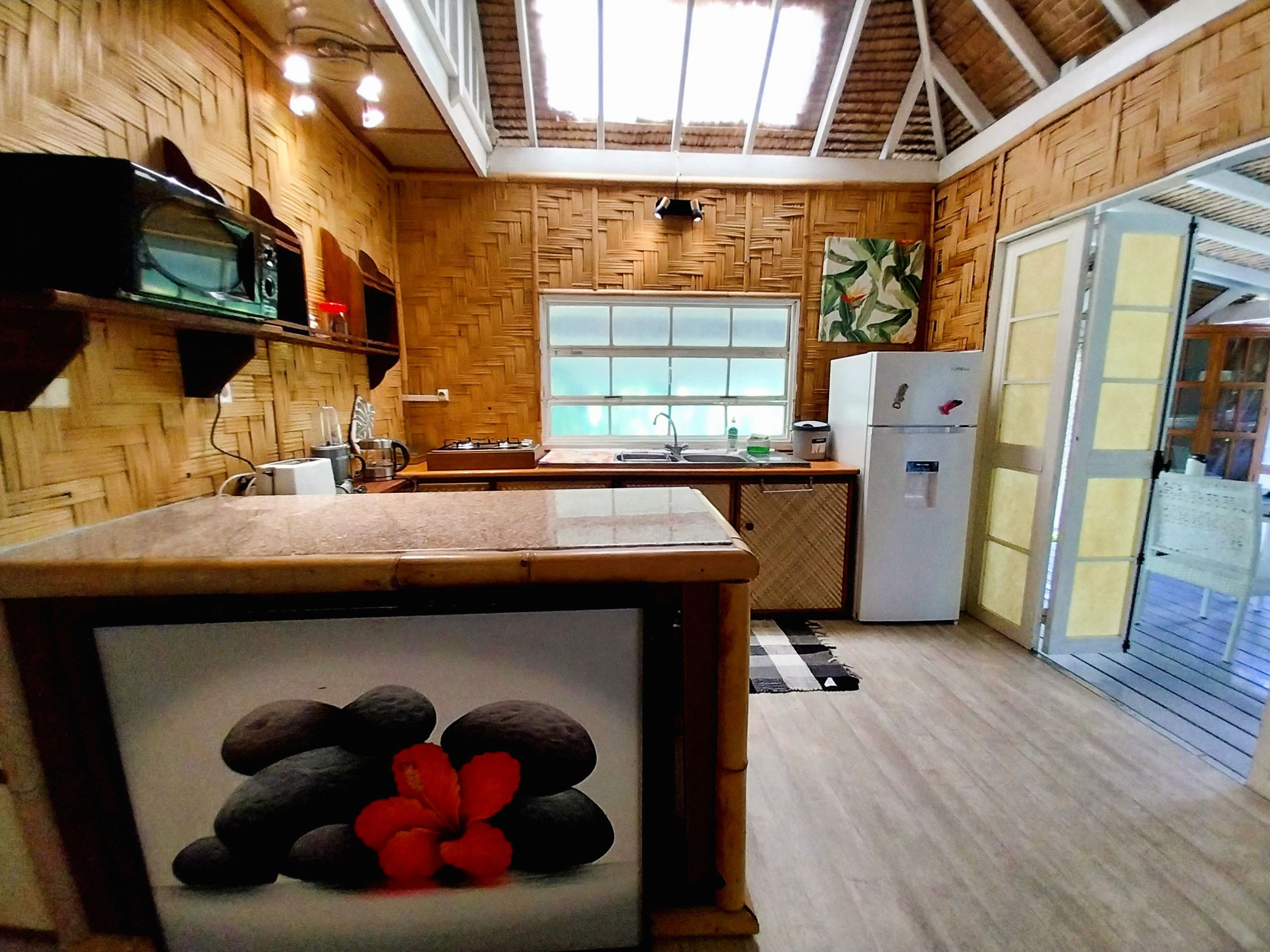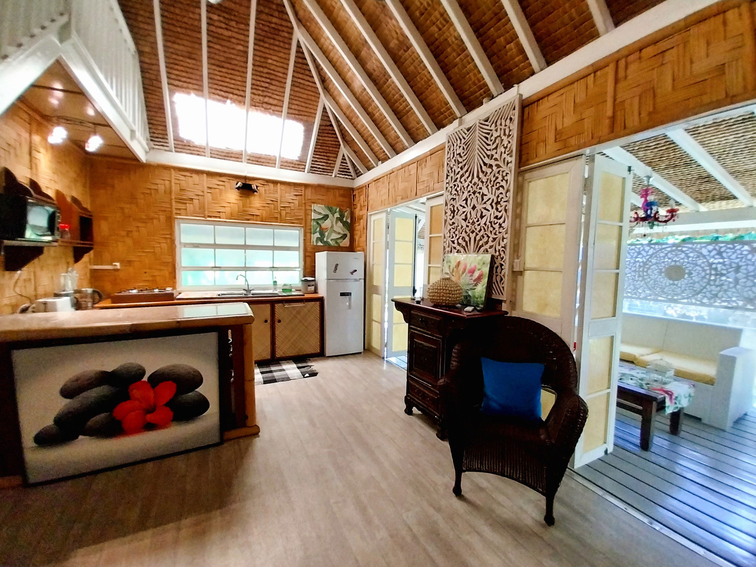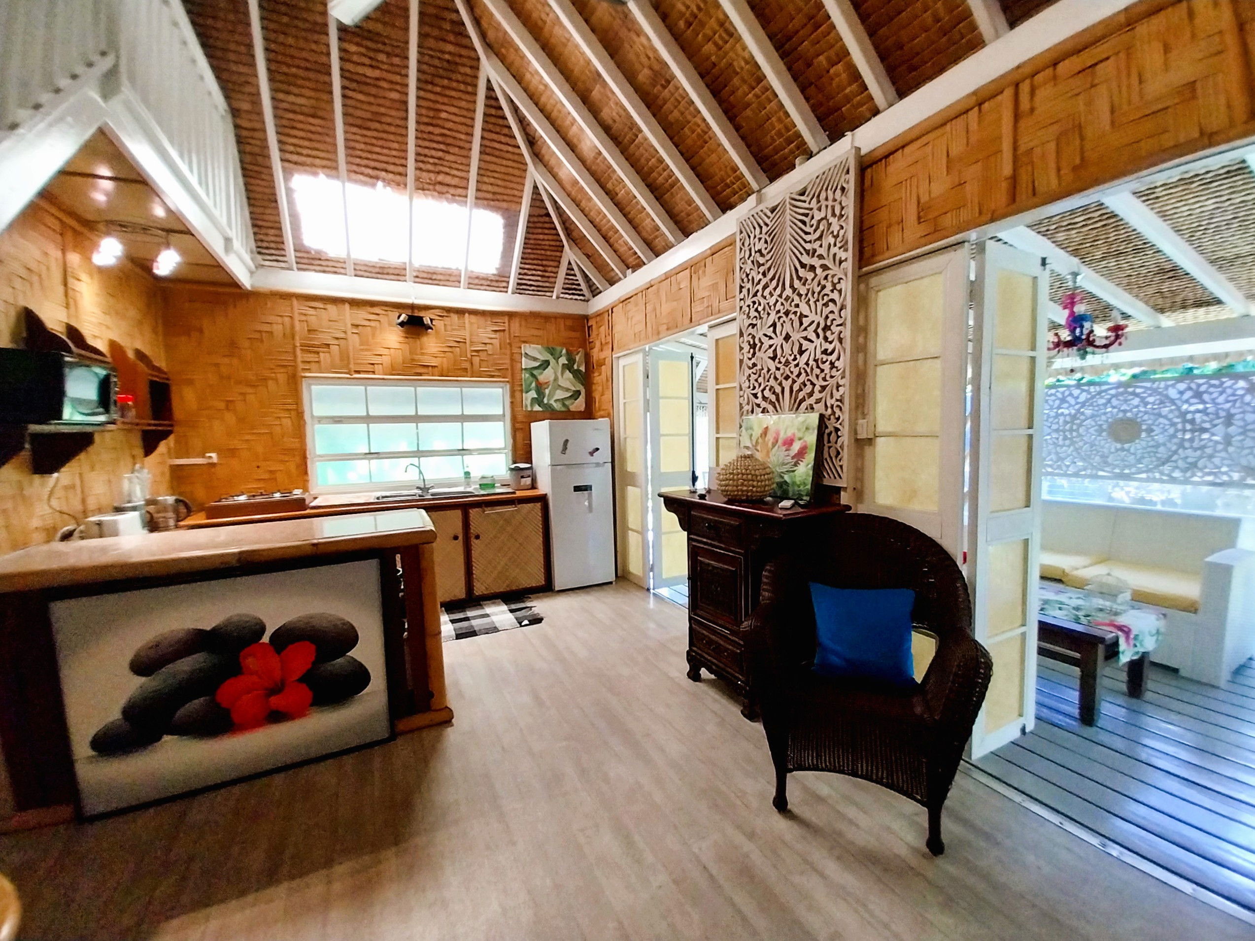 Modern comfort: The Fare as they say here, has been completely renovated. The master bedroom with a double bed is equipped with air conditioning and has storage space. If you wish to use the air conditioning, there is a supplement of 1,185 XPF / day, which you can add to the booking. The kitchen is equipped to prepare your meals on site. The bathroom is independent and accessible to all, the shower has hot water to make your stay pleasant and relaxing. The mezzanine will accommodate the 3rd and 4th travellers, a double bed will be prepared for them and a fan will be made available. The terrace will be your haven of peace, several relaxation areas and spaces to gather have been created.