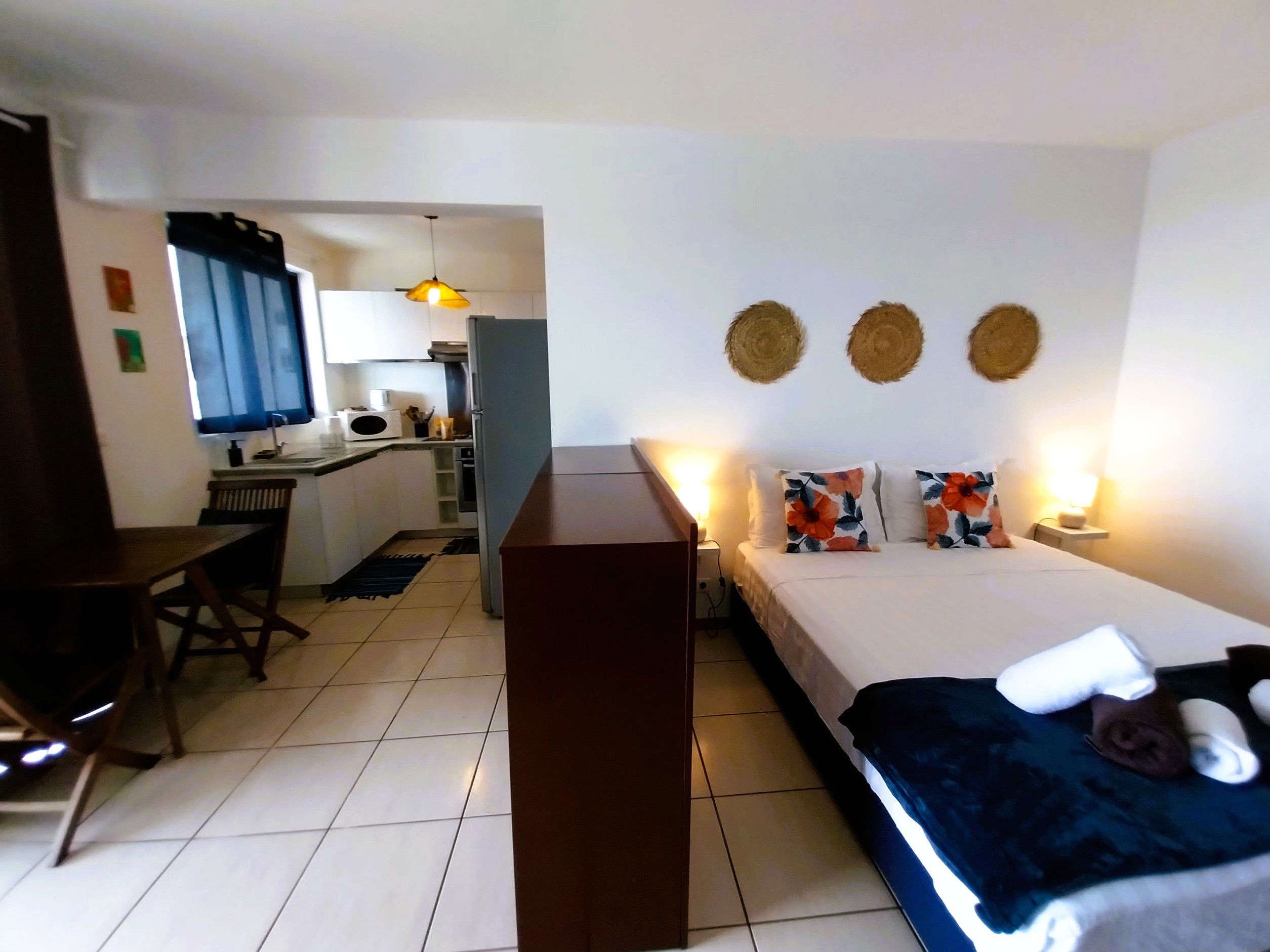 A private parking space is available right in front of the studio entrance, facilitating your movements. The secure residence ensures your peace of mind throughout your stay. The swimming pool is shared by the residence and will be perfect for relaxing and refreshing yourself after an excursion or a hectic day exploring Tahiti. You can admire exceptional sunsets from the pool with a view of Moorea. Internet connection is free, the router is in the living area of the accommodation.