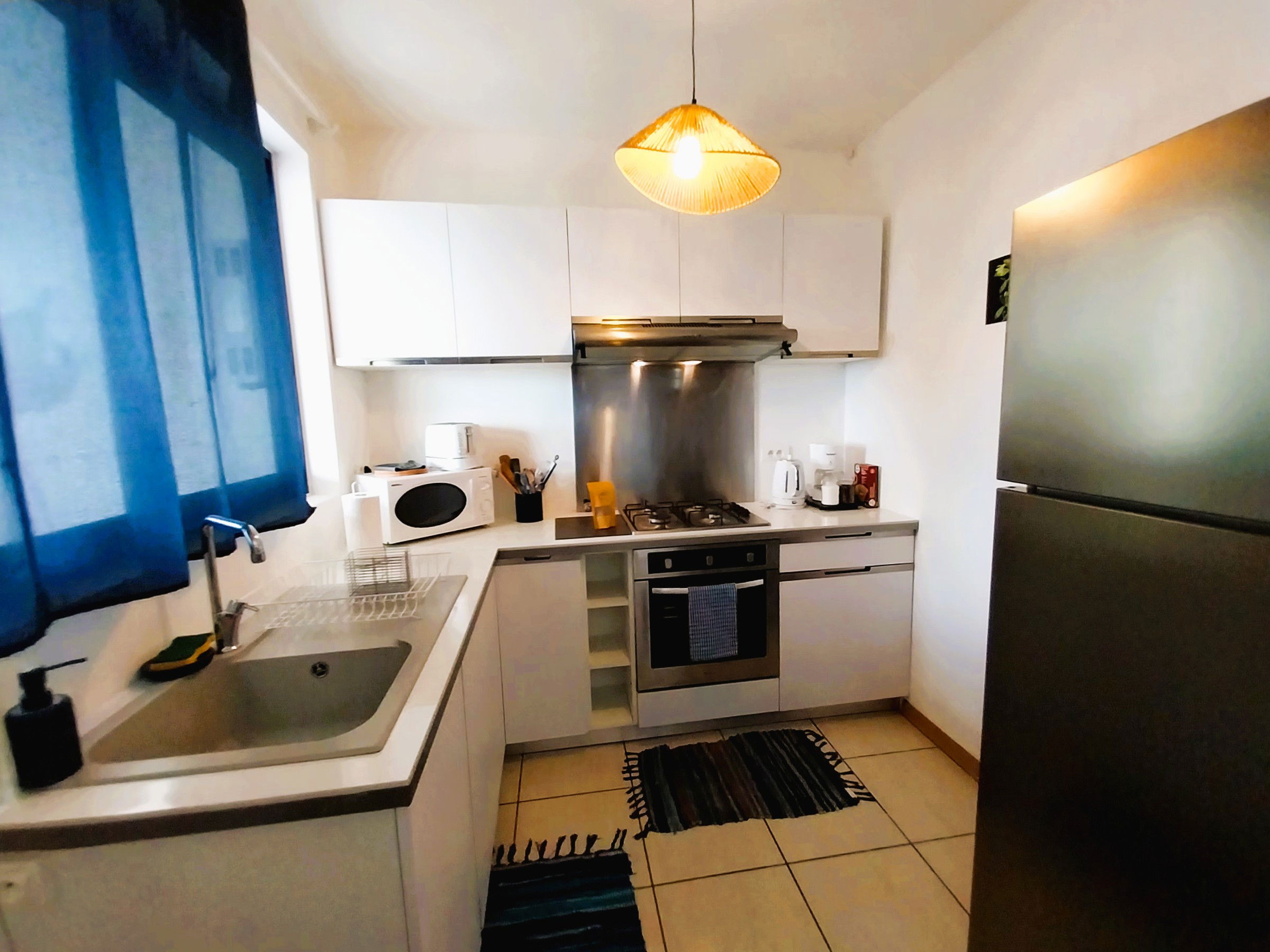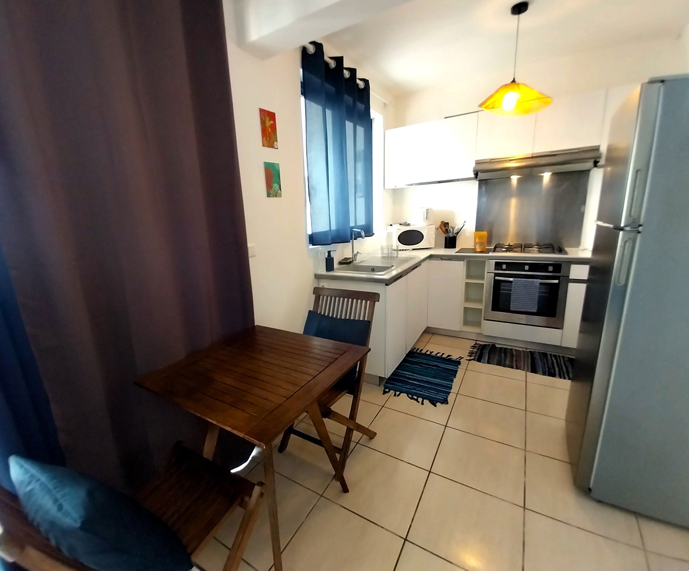 This spacious 32 m² studio, complemented by a 25 m² terrace with wooden deck, is designed for your comfort and independence. It features a fully equipped kitchen for preparing your meals on-site, a bathroom with shower, washbasin and WC, as well as a washing machine for optimal comfort. Household linen is provided, including sheets, pillowcases, towels and kitchen linen.