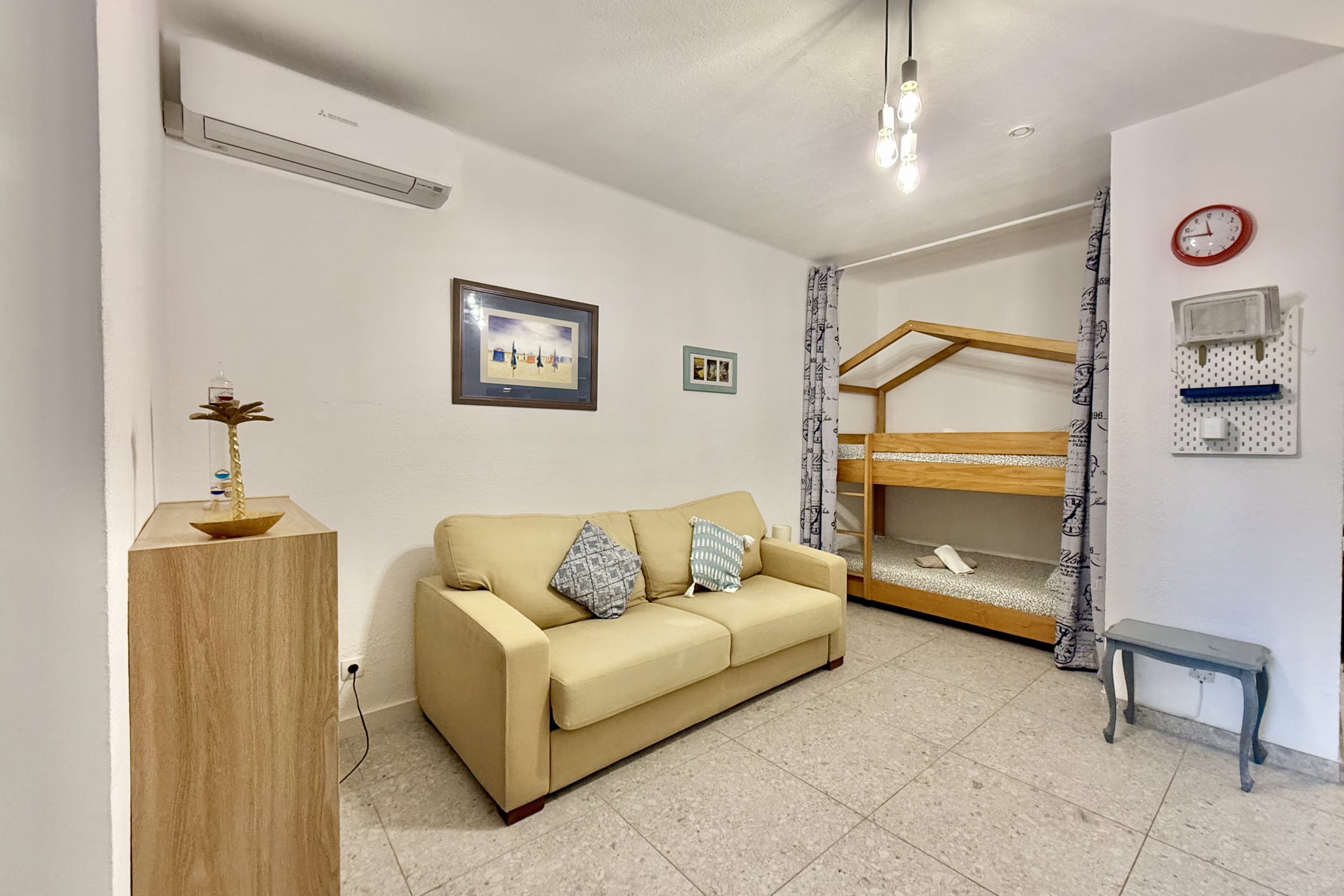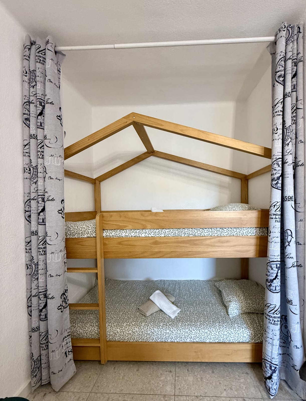A bunk bed completes the space, ideal for accommodating two children or visiting friends.