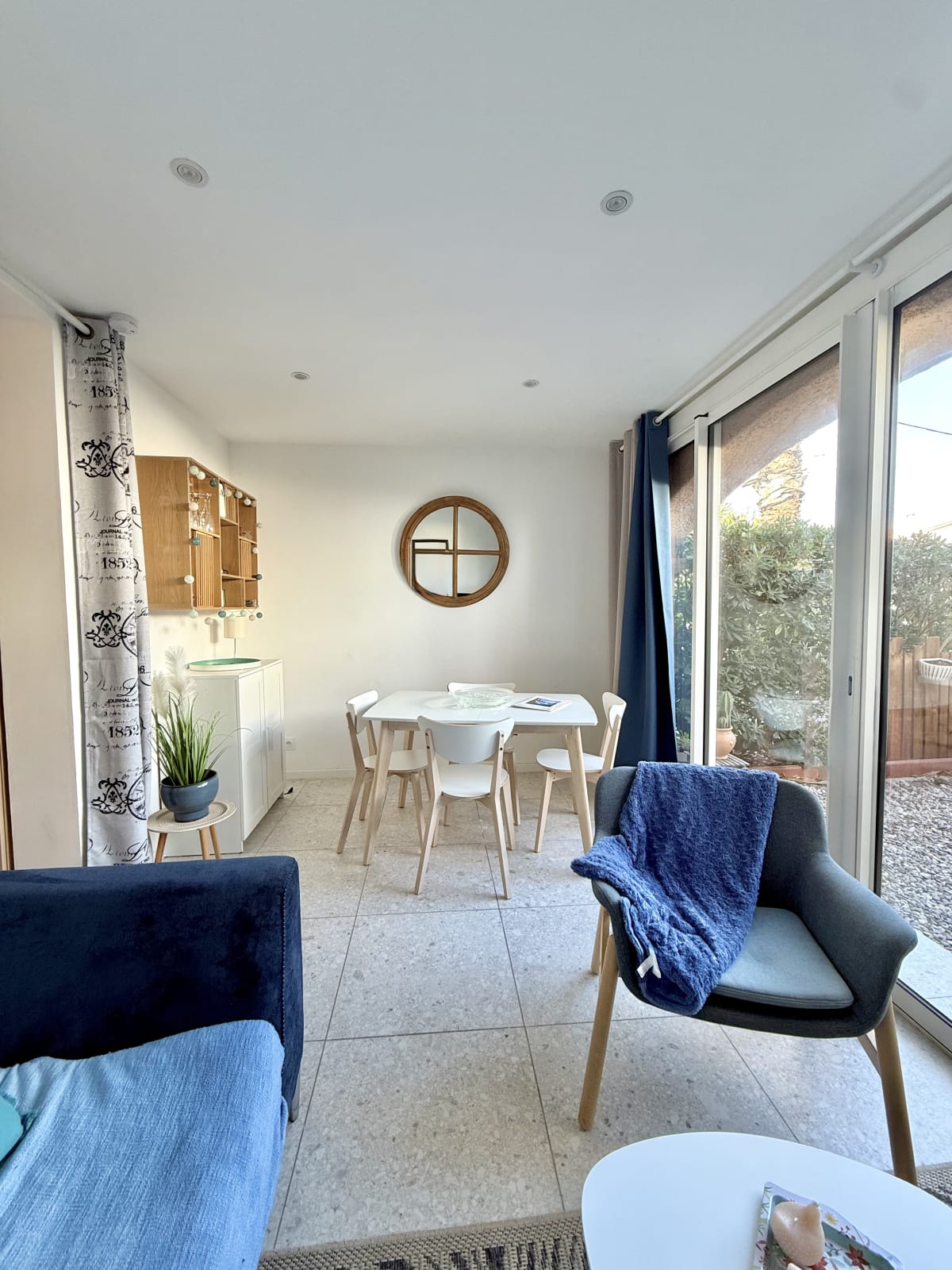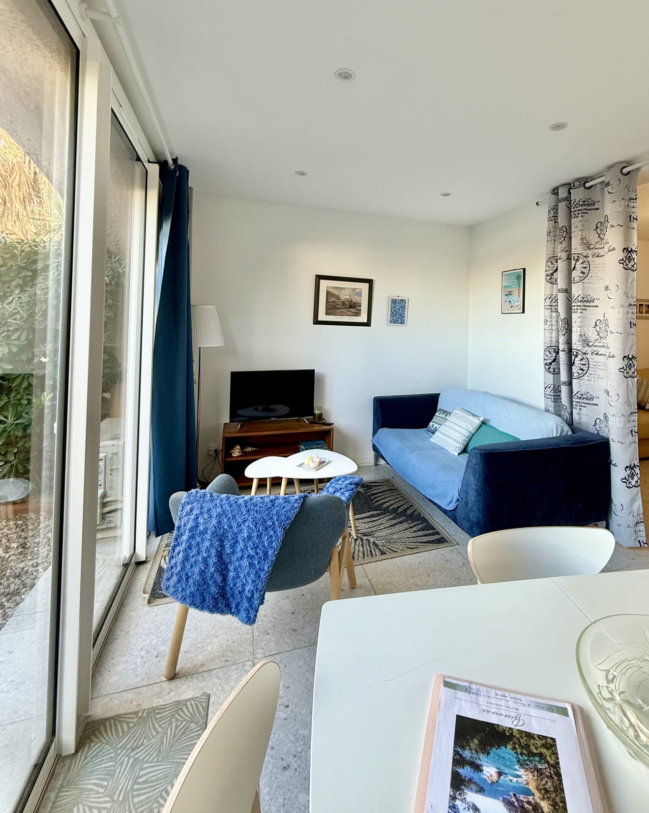 🩵 Welcome to Bleu Majorelle, a bright 35 m² flat with a lovely little garden, ideally located in La Capte, on the Giens peninsula, just 60 metres from the beach 🌊.
