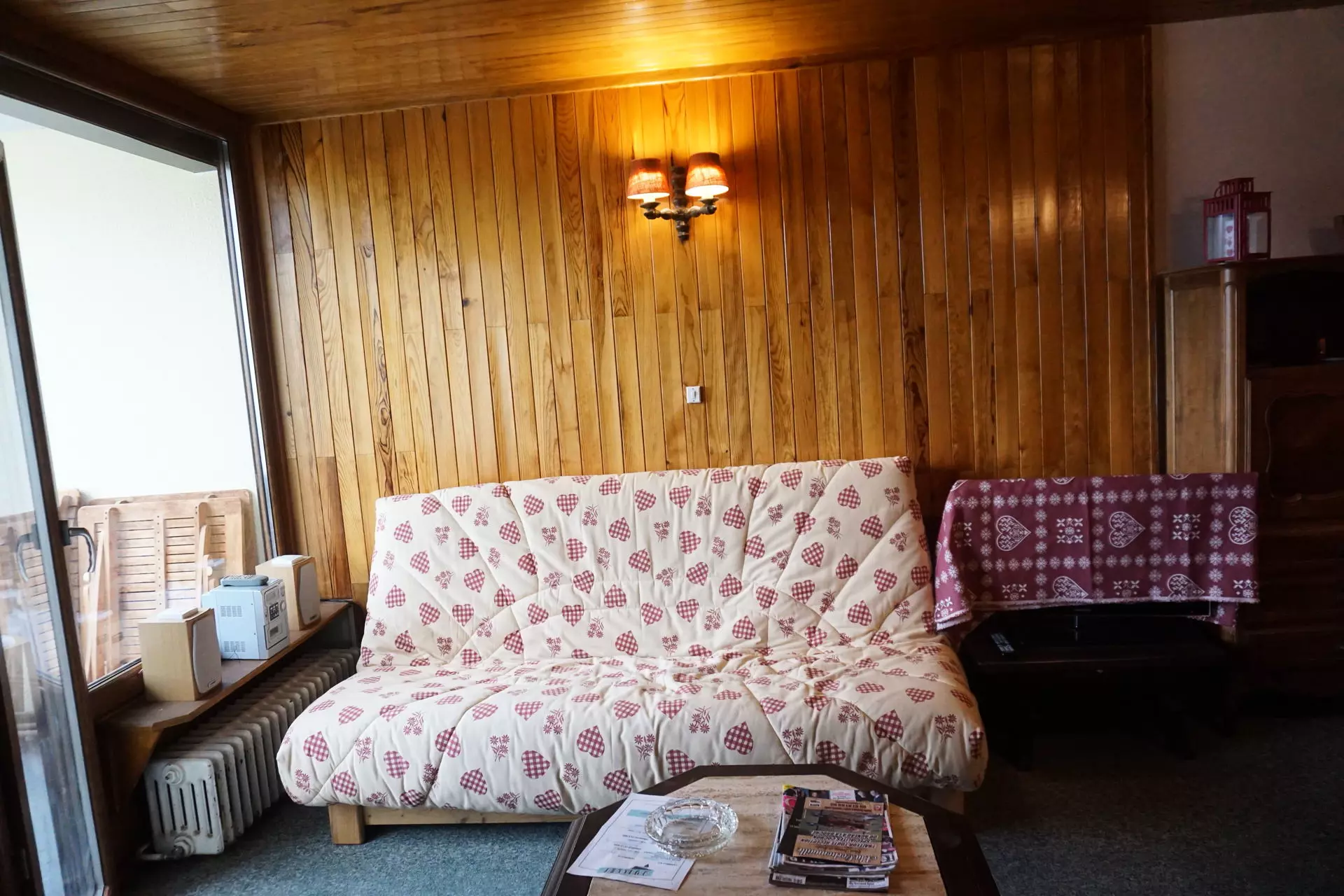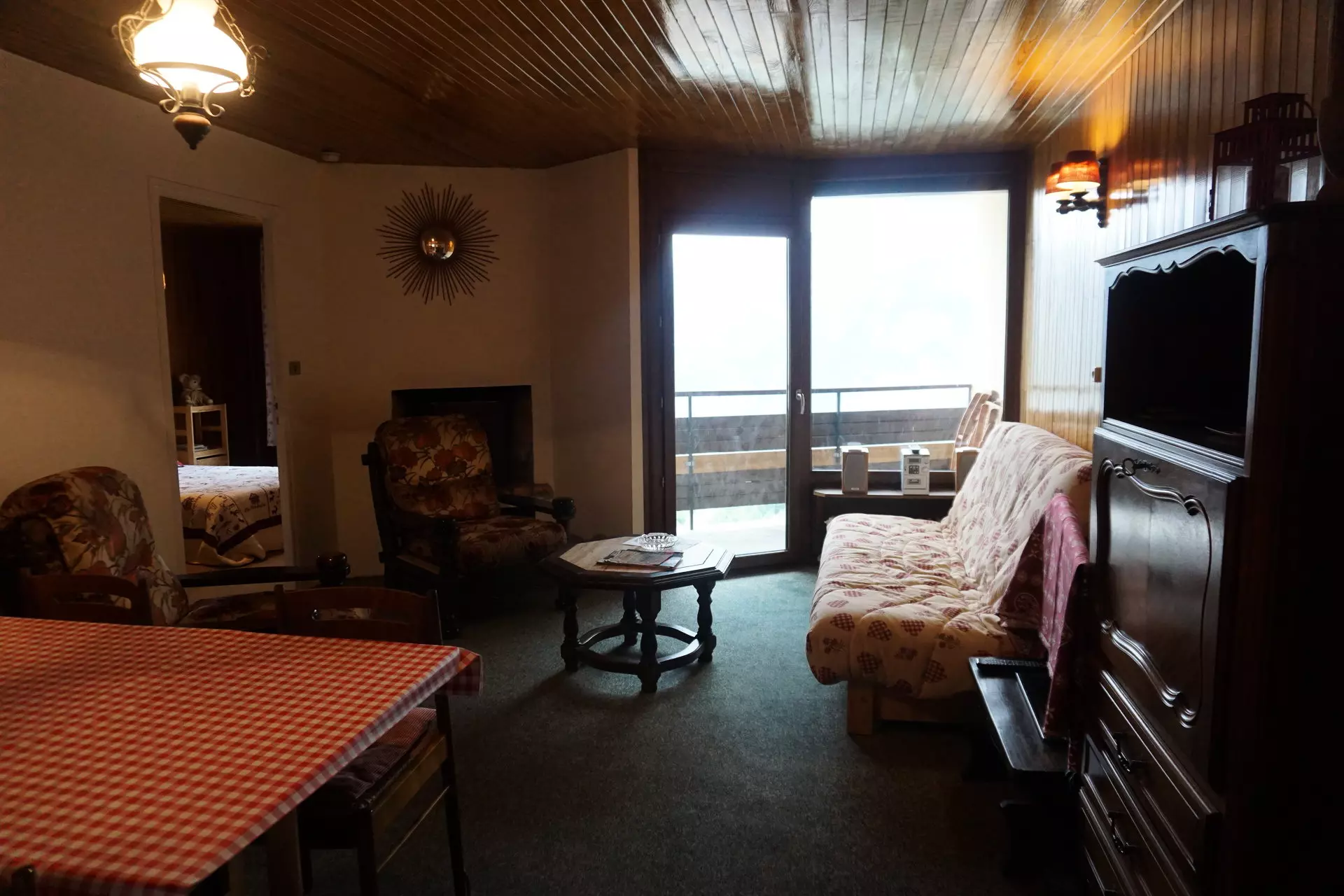 2-room apartment of approximately 45 m², located on the 5th floor with elevator; south-east facing balcony with view of the slopes and the resort.