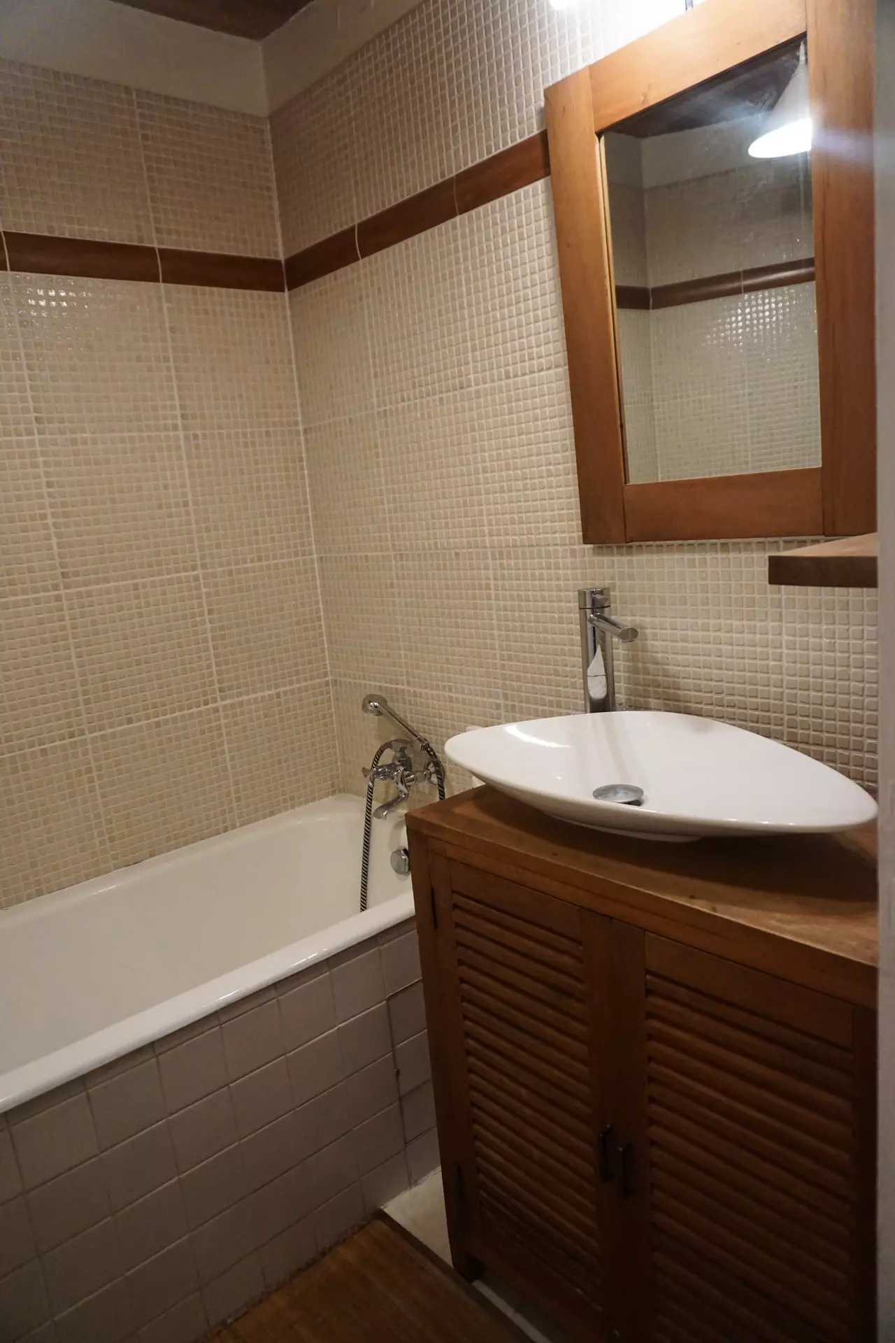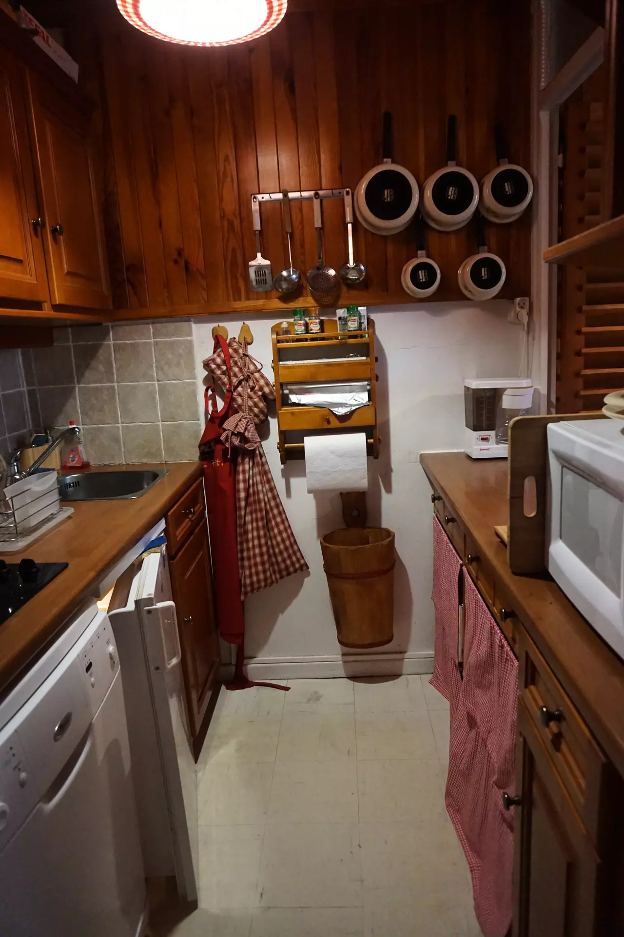 Kitchenette: ceramic hob, fridge, microwave, dishwasher.