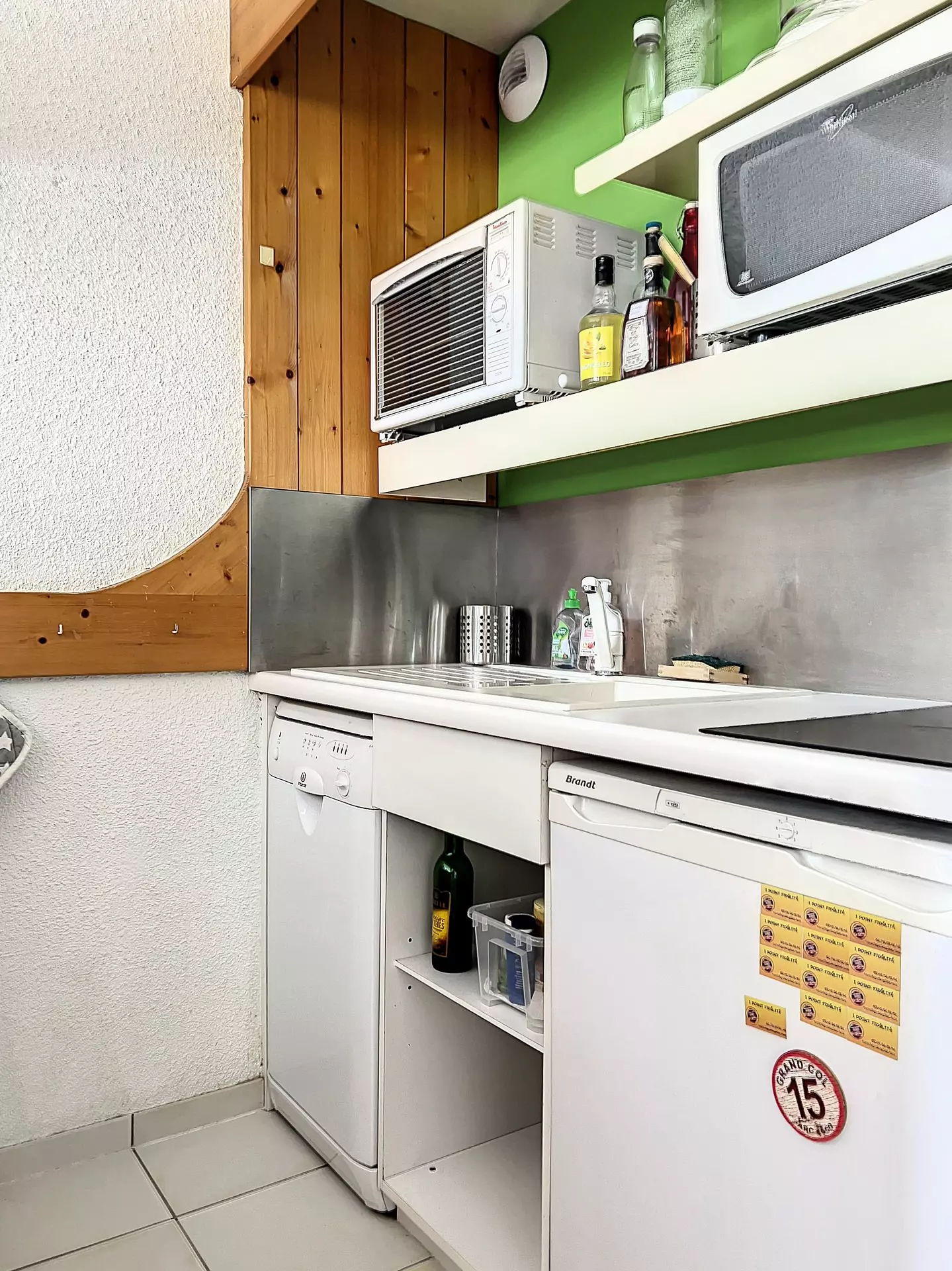 Studio cabin for 5 people on the 9th floor of the Pierra Menta residence in the village of Charvet, with an area of 28m², close to the slopes and shops, facing South-West with balcony.