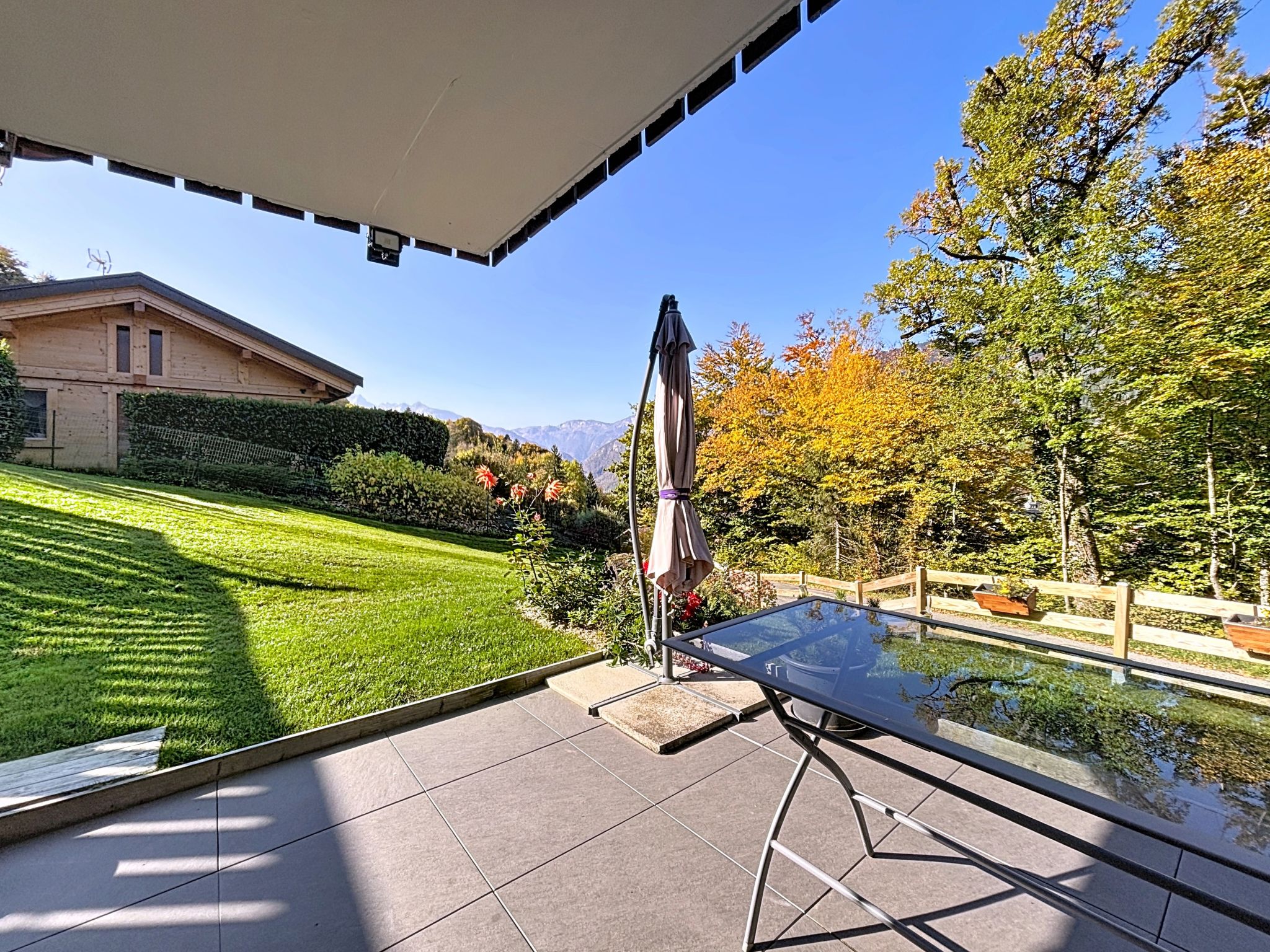 2-room apartment 42 m2, on the ground floor. Renovated in 2024, comfortable and beautiful furnishings: living/dining room with panoramic window with TV (flat screen). 1 room with 1 x 2 bunk beds (80 cm, length 190 cm), 1 french bed (140 cm, length 190 cm). Open kitchen (oven, dishwasher, 2 ceramic glass hob hotplates, toaster, kettle, microwave, electric coffee machine, raclette grill, fondue Set (cheese)) with dining table. Shower, sep. WC. Heating, boiler. South-west facing position. Terrace furniture. Beautiful panoramic view of the mountains. Facilities: washing machine. Internet (WiFi, free). Parking at the house. Please note: non-smokers only. Private entrance, smoke alarm. Offer by a private individual according to Art. 155, IV of CGI.