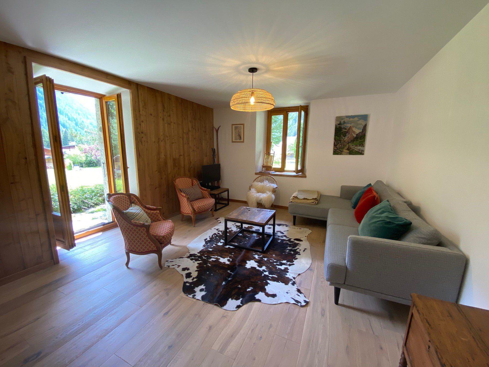 Superb spacious apartment of 115 sq ft for 8 people, with fireplace, garden, on the ground floor of a country house located in the heart of the village of Argentière.