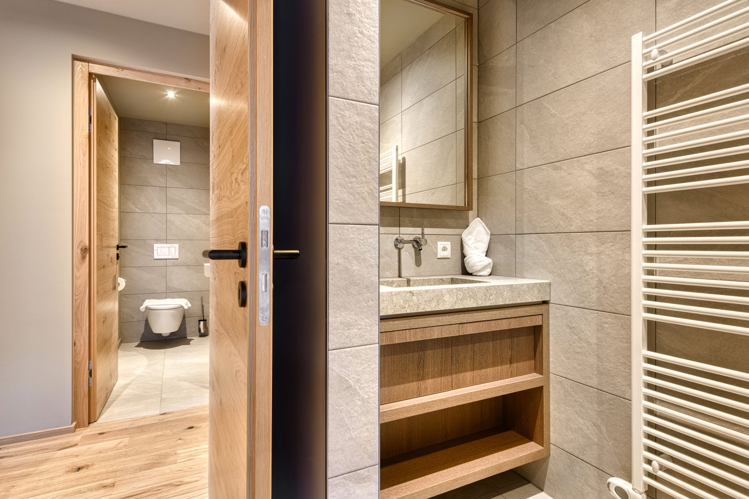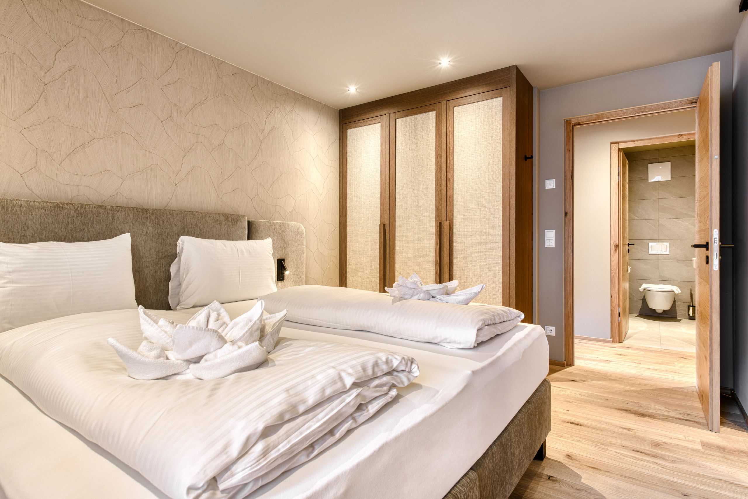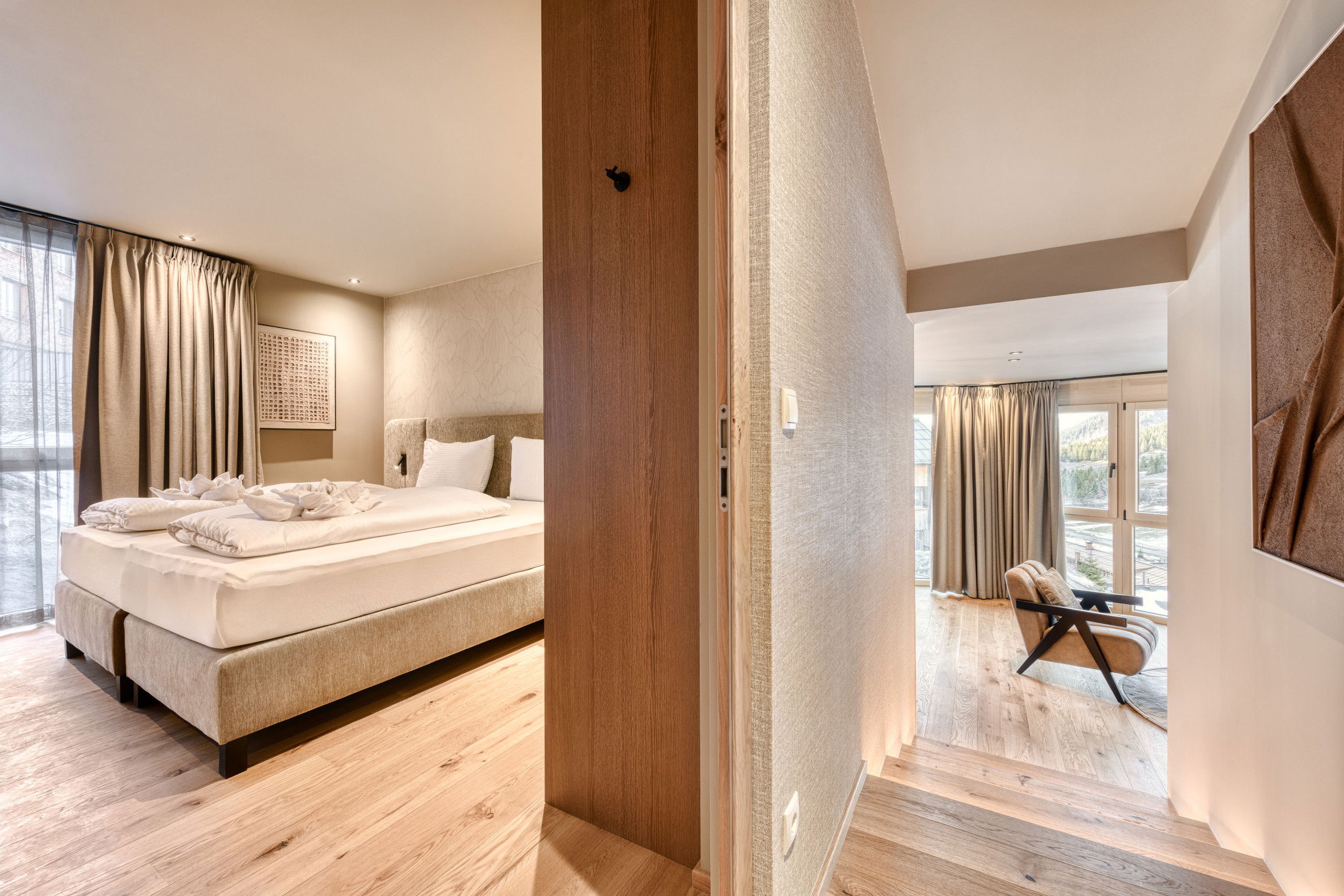 The Nexus Suite Top 4 is an apartment for families and friends who want to experience the Arlberg together. With its three bedrooms, warm materials and an open-plan living space, it combines modern elegance with alpine well-being. Large windows bring the light of the mountains into the suite and open up views of the impressive mountain landscape around Stuben am Arlberg - the cradle of alpine skiing.