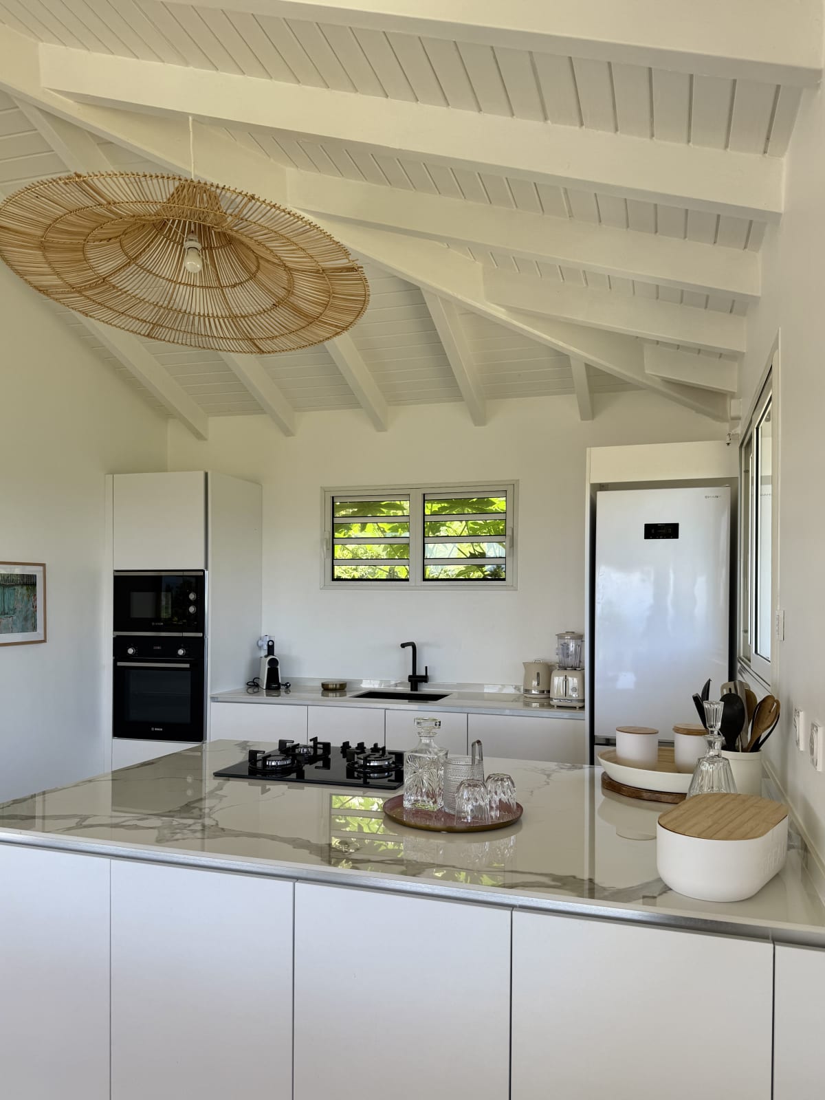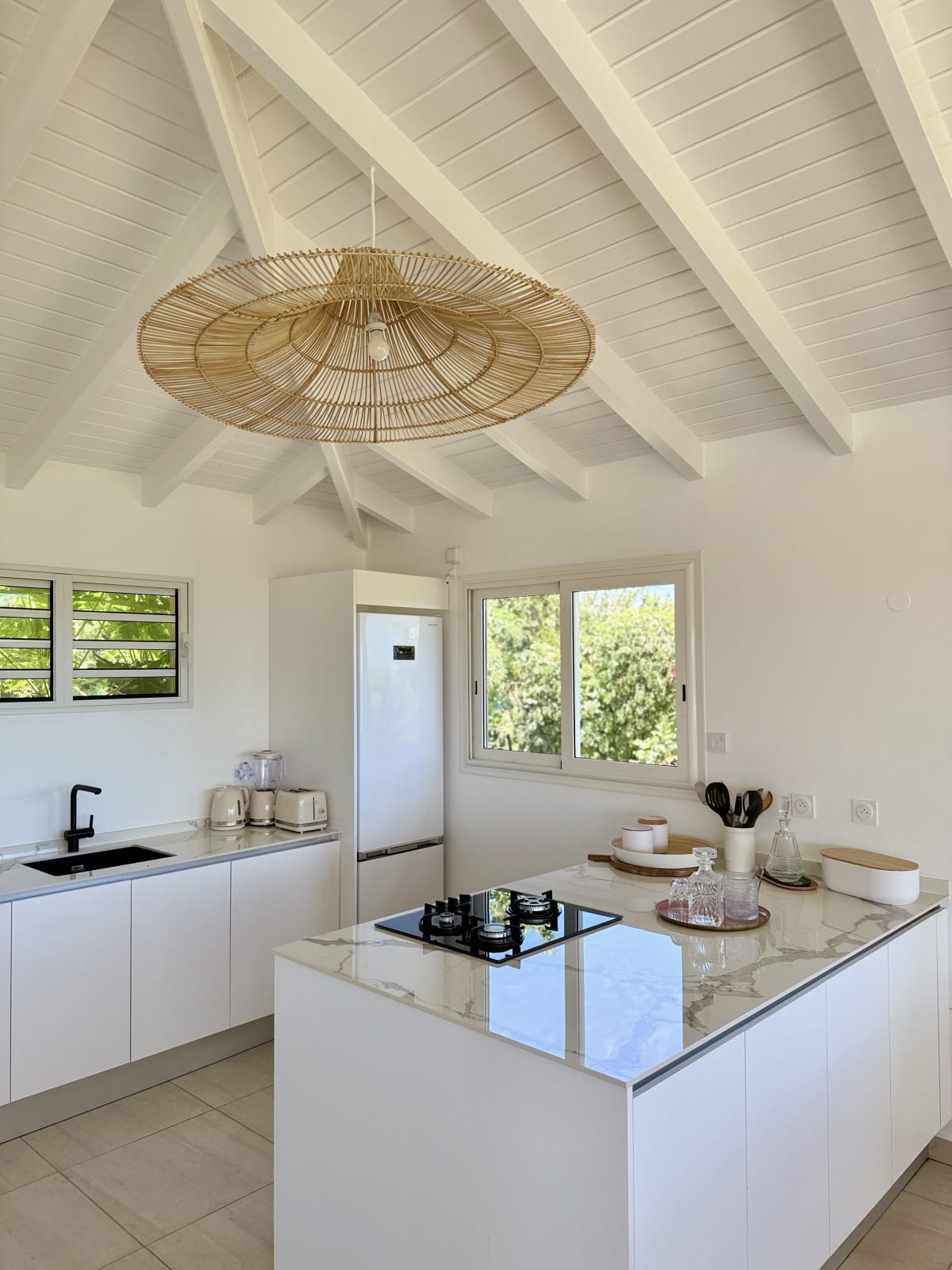 Welcome to Villa Joséphine, a true haven of comfort and elegance nestled in Grand Bourg. Spanning 400 m², this magnificent property promises an unforgettable stay. Its five beautifully decorated bedrooms — three with king-size beds (180 × 200 cm) and two with queen-size beds (160 × 200 cm) — each have their own private bathroom, ensuring total privacy for all guests.